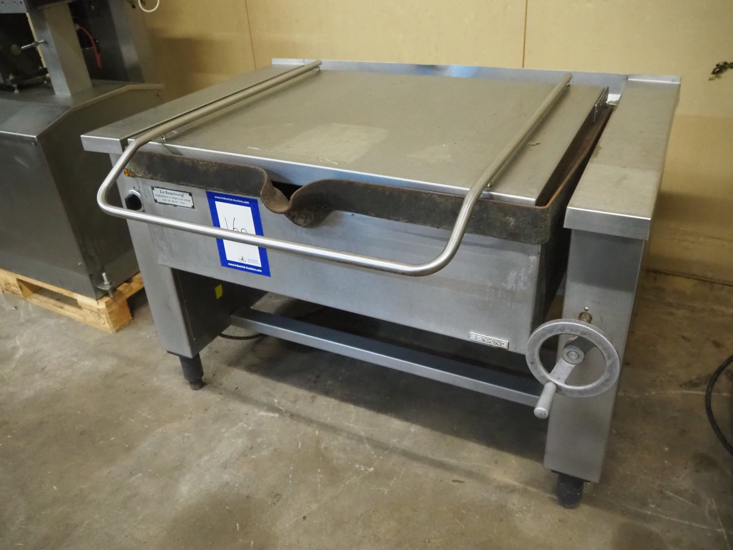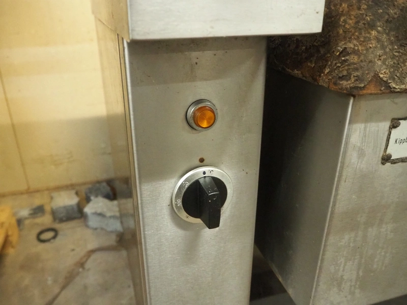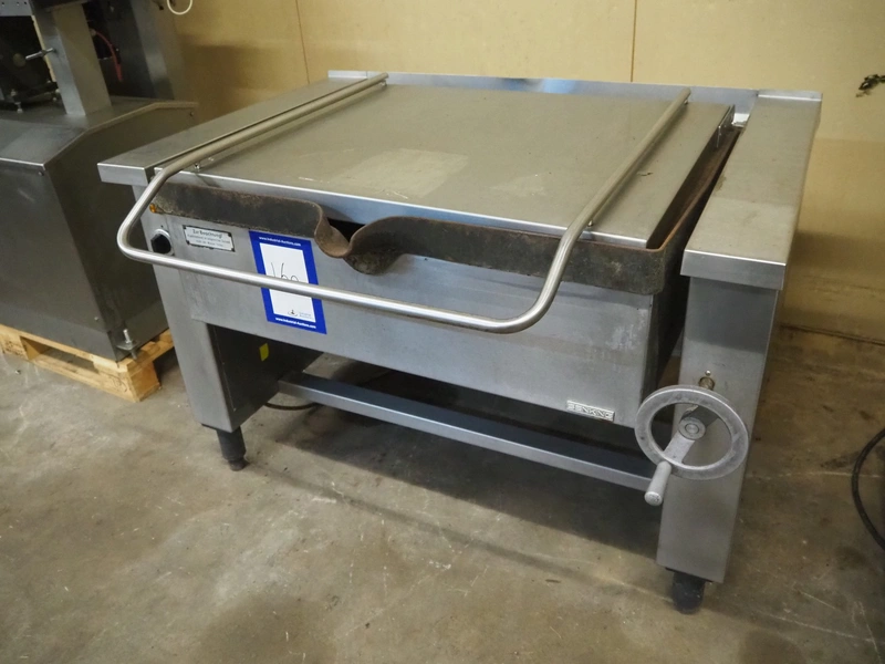 Senking braising pan, inside dimensions: 860 mm x 660 mm x 160 mm, total dimensions: 1300 mm x 1070 mm x 870 mm.