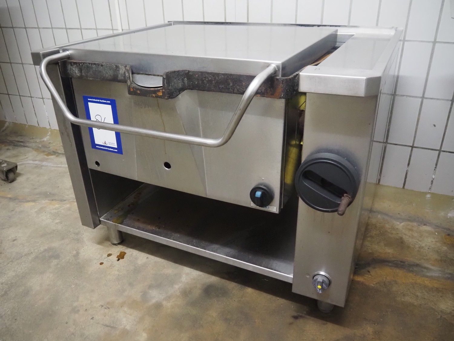Thielman braising pan, inside dimensions: 600 mm x 650 mm x 180 mm, total dimensions: 1100 mm x 850 mm x 900 mm.