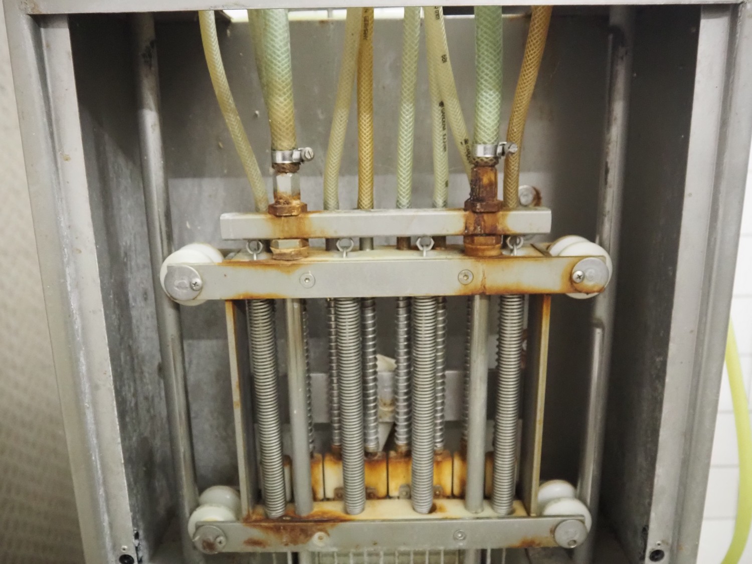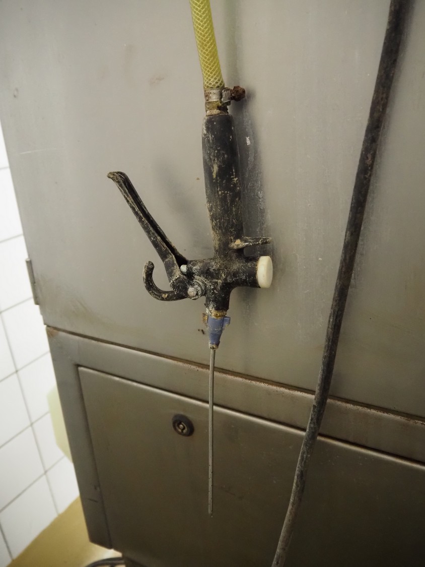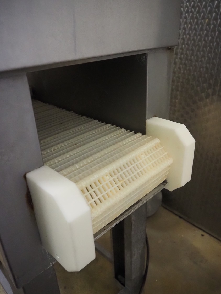 Günther injector, type: PI8/16, machine number: 22520, 380 V, 8 A, plastic mesh belt, belt width: 240 mm, 16 needles, total dimensions: 1350 mm x 450 mm x 1650 mm.