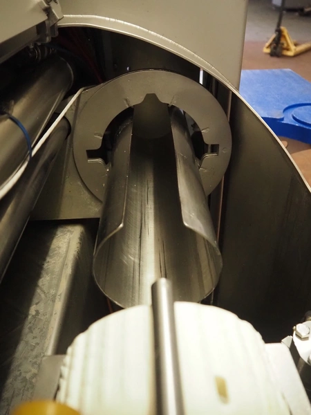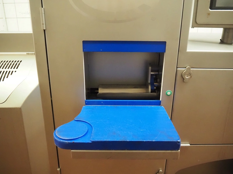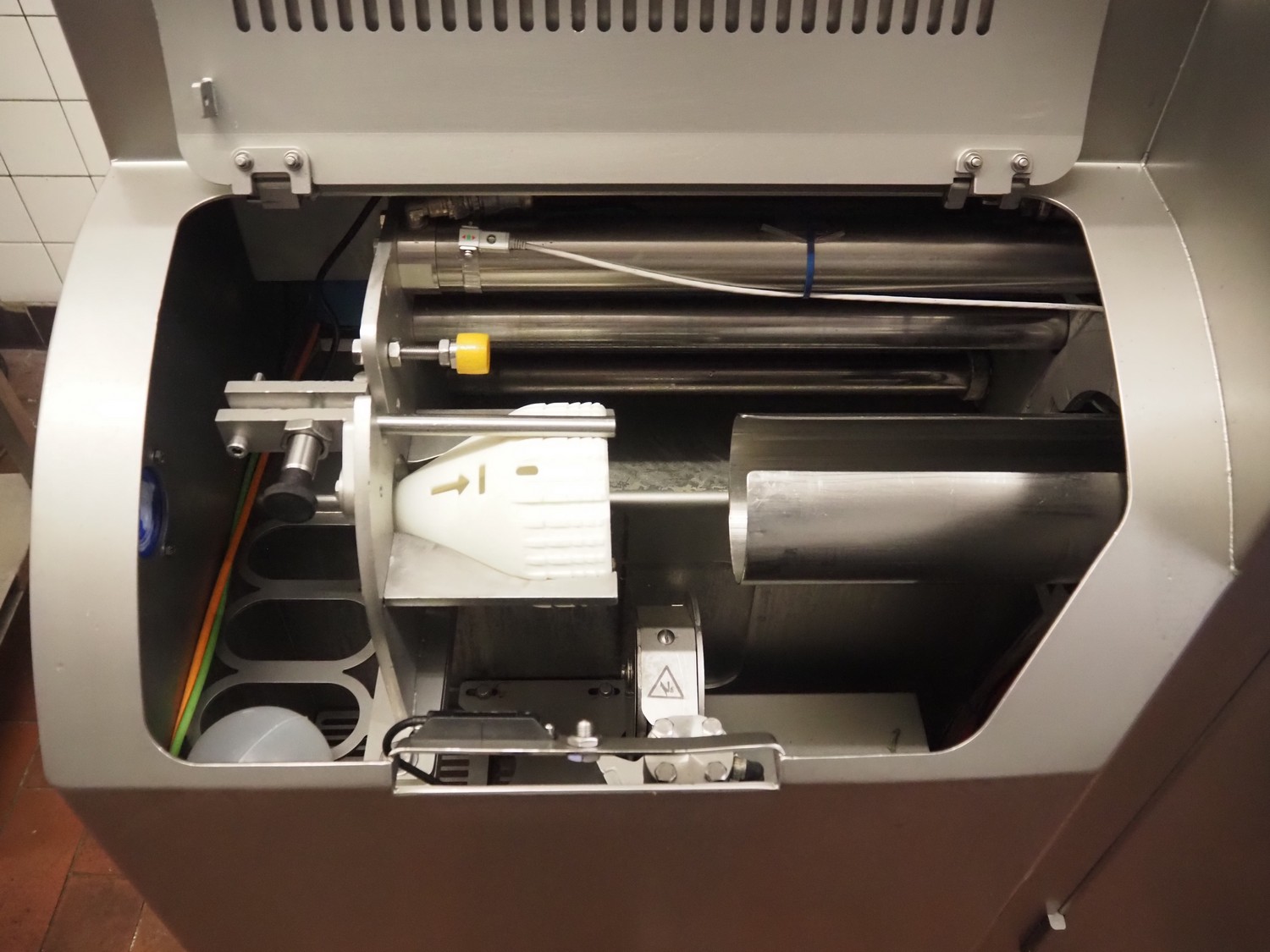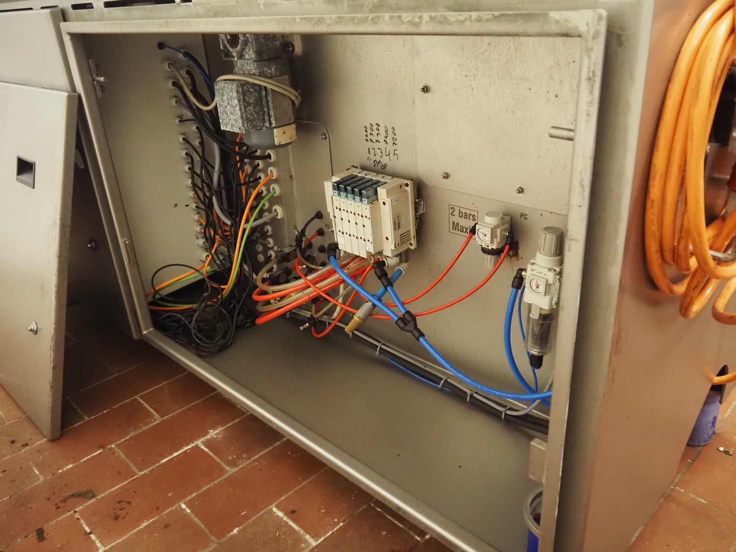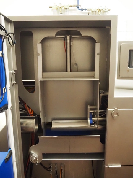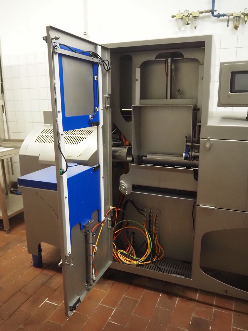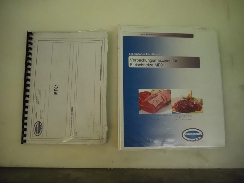 Emsens netting machine for small products, model: MF01, serial number: 09.17.002, year of construction: 2017, diameter up to: 100 mm, length: 280 mm, dimensions: 3000 mm x 1200 mm x 1800 mm.