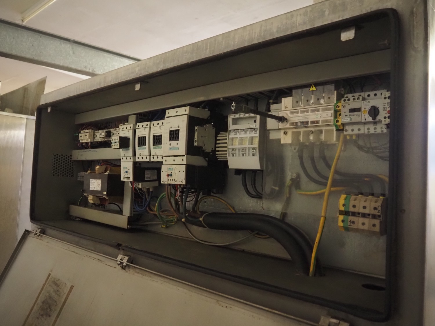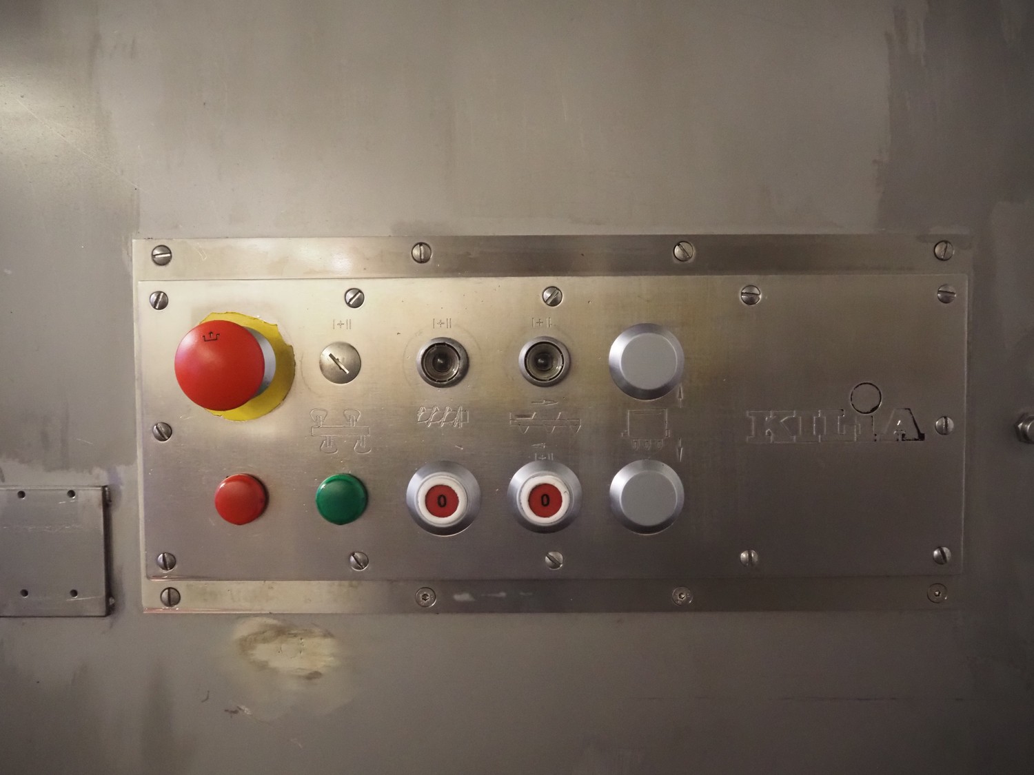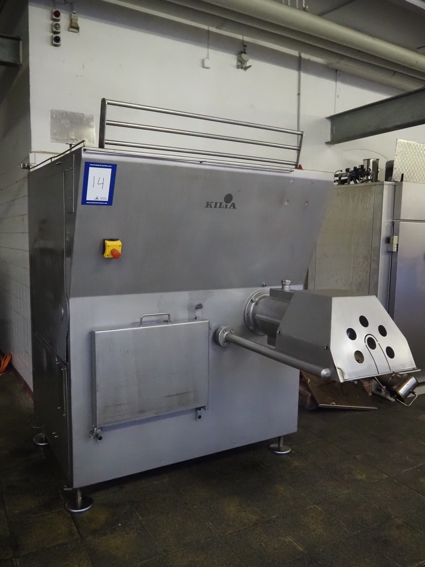Kilia grinder, diameter plate: 200 mm, total dimensions: 2100 mm x 1600 mm x 2070 mm. Missing knives and plates.