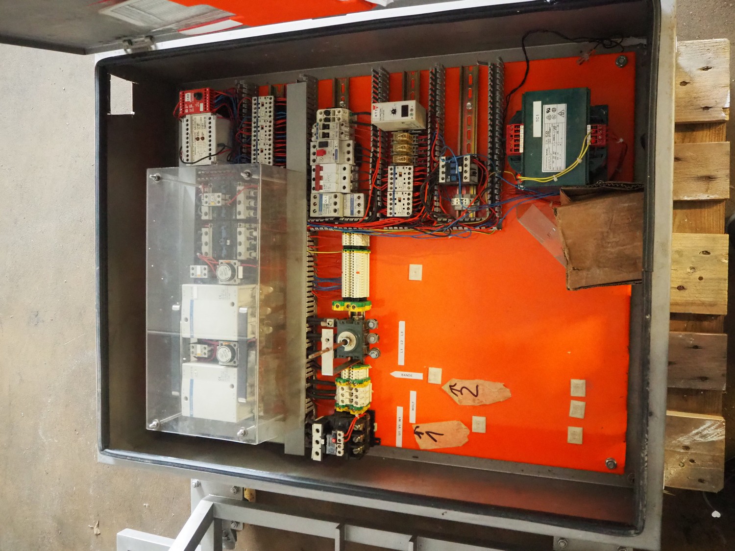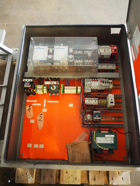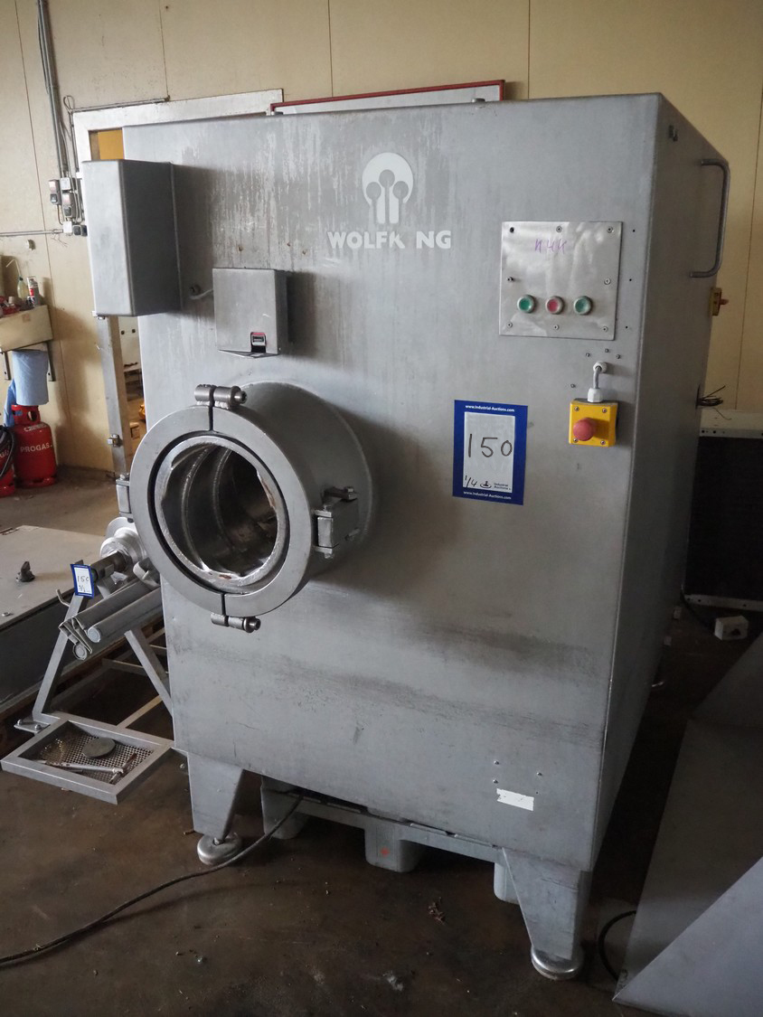 Wolfking frozen block grinder with lifter for 200 liter meat bins, diameter plate: 300 mm, dimensions: 1900 mm x 1100 mm x 1900 mm, Wolfking Scanio lifter for 200 liter meat bins, type: K7, serial number: 8969, year of construction: 1999, 3 x 400 V, 50 Hz, 2.0 A, 1.4 kVa, lifting height: 1900 mm, total dimensions lifter: 3000 mm x 800 mm x 800 mm, switch cabinet, dimensions: 1200 mm x 800 mm x 1450 mm, s/s tool trolley with screw, dimensions trolley: 1450 mm x 800 mm x 800 mm, pallet with parts. Without knifes and plates.