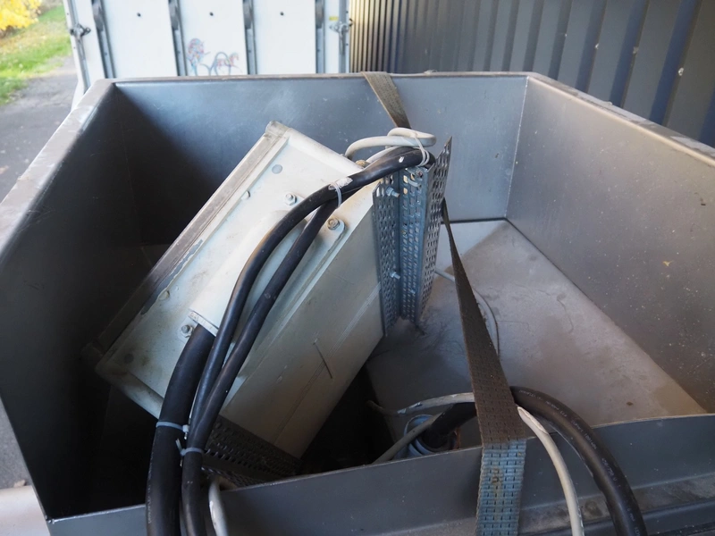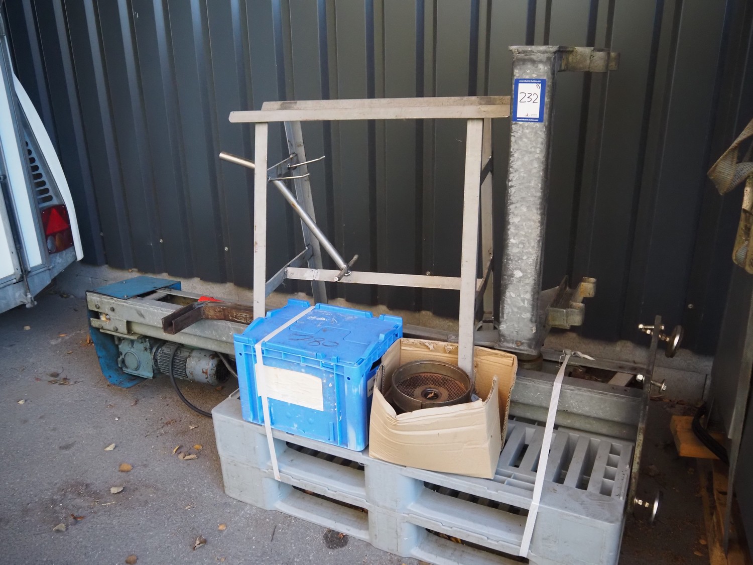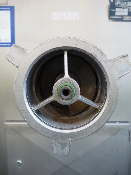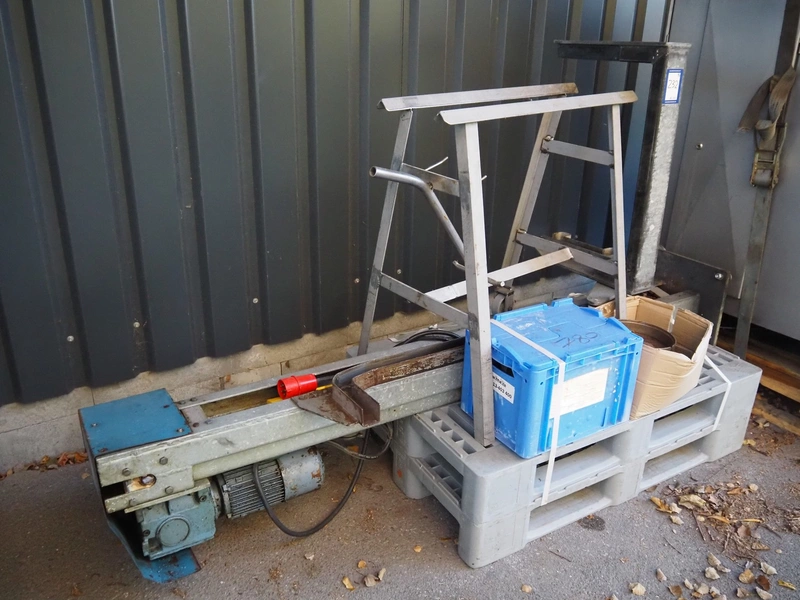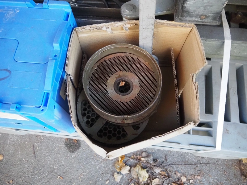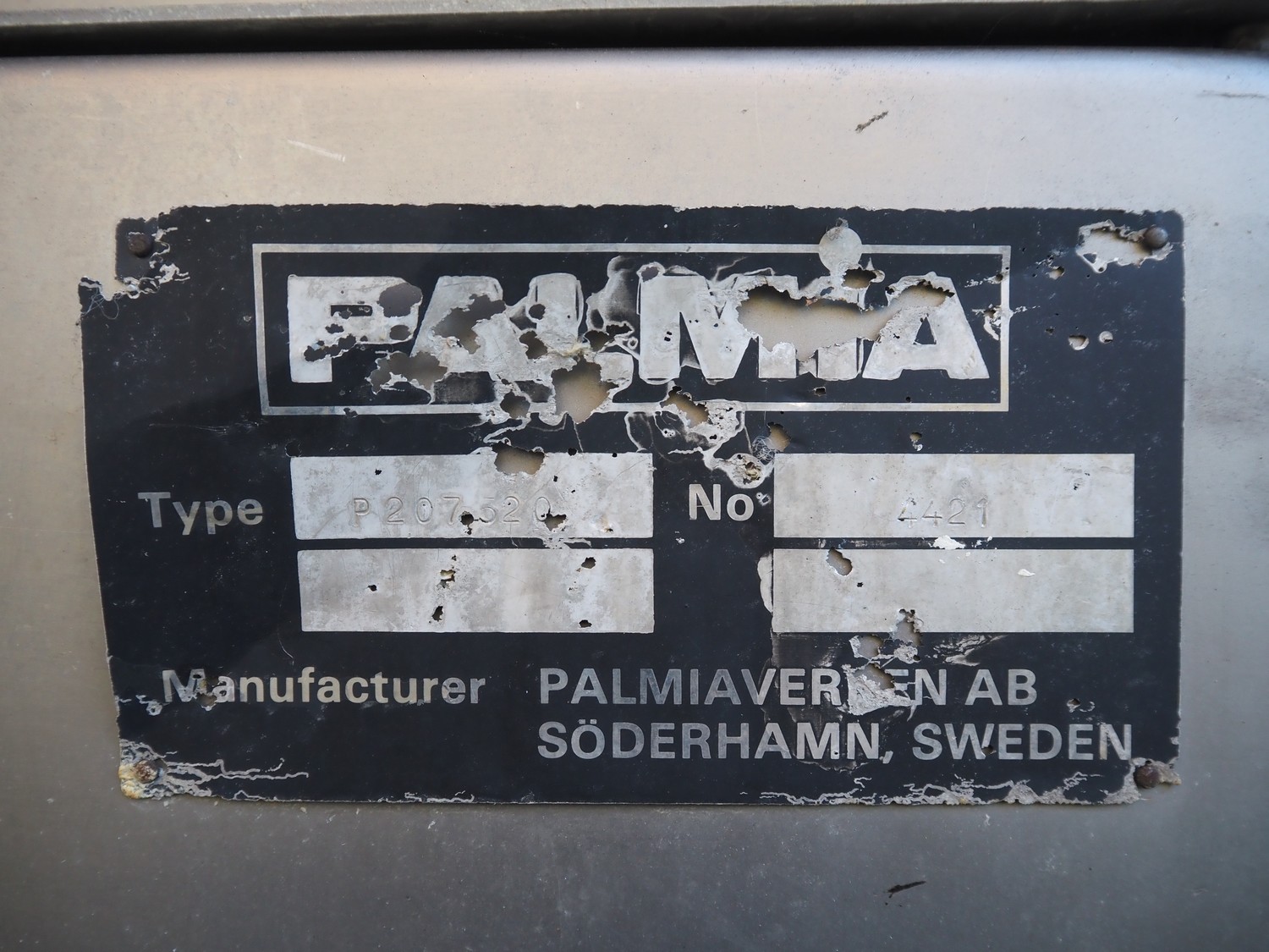 Palmia grinder, type: P207520, number: 4421, diameter plate: 210 mm, total dimensions: 1450 mm x 830 mm x 1680 mm. Including lifter for 200 liter meat bins, elevating height: 1550 mm, total dimensions 2050 mm x 1200 mm x 1400 mm and box with plates. Lot located in Winsen (DE), viewing and pick up in consultation with Industrial Auctions B.V.