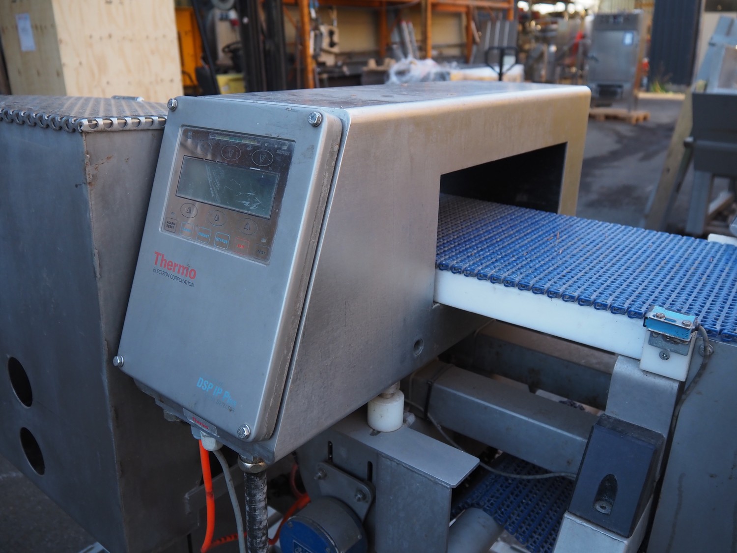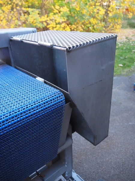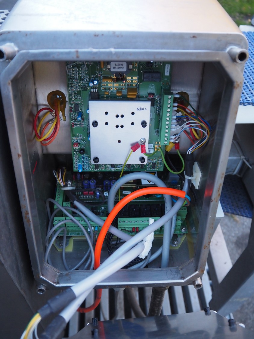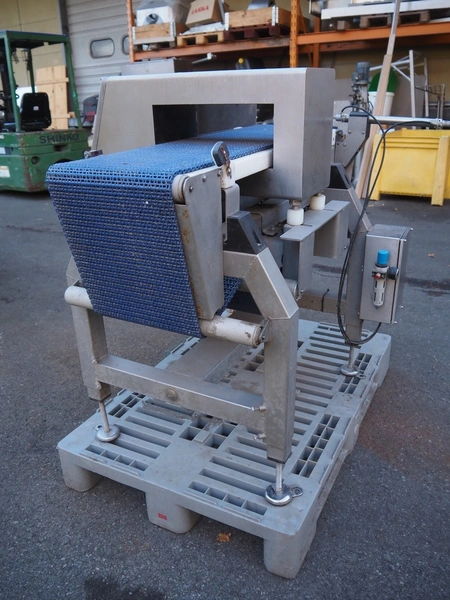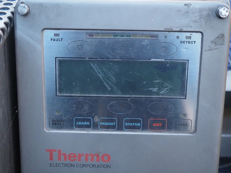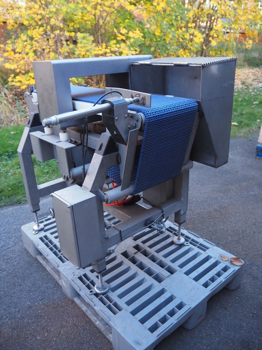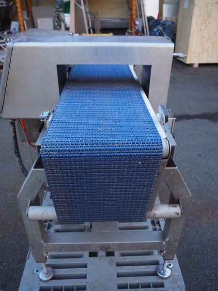 Thermo metal detector with rejector, plastic mesh belt, belt width: 300 mm, clearance: 345 mm x 100 mm, total dimensions: 1100 mm x 900 mm x 1050 mm. Lot located in Winsen (DE), viewing and pick up in consultation with Industrial Auctions B.V.
