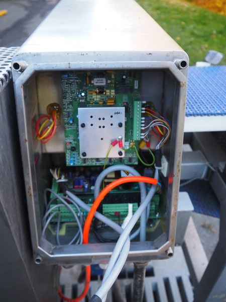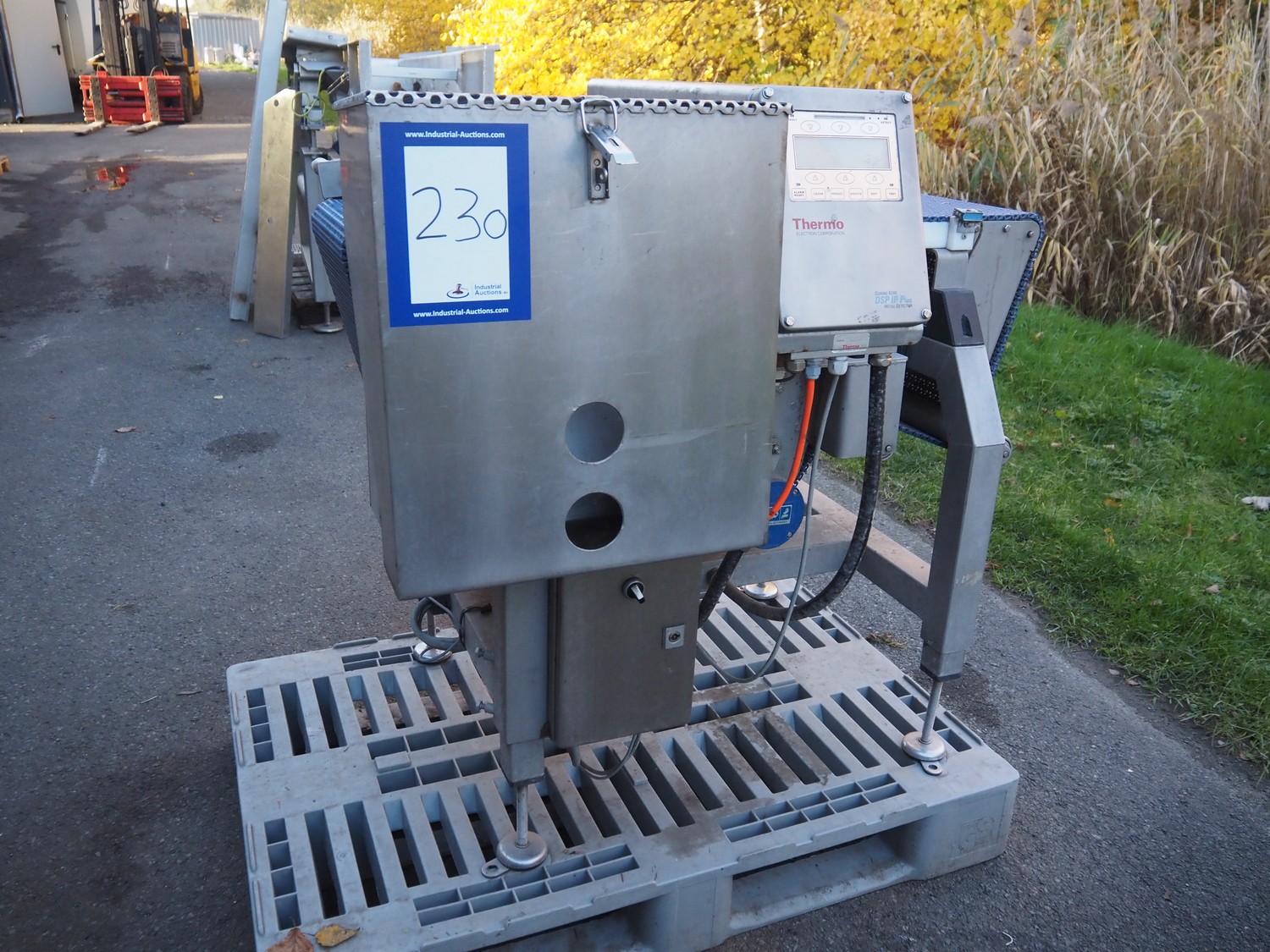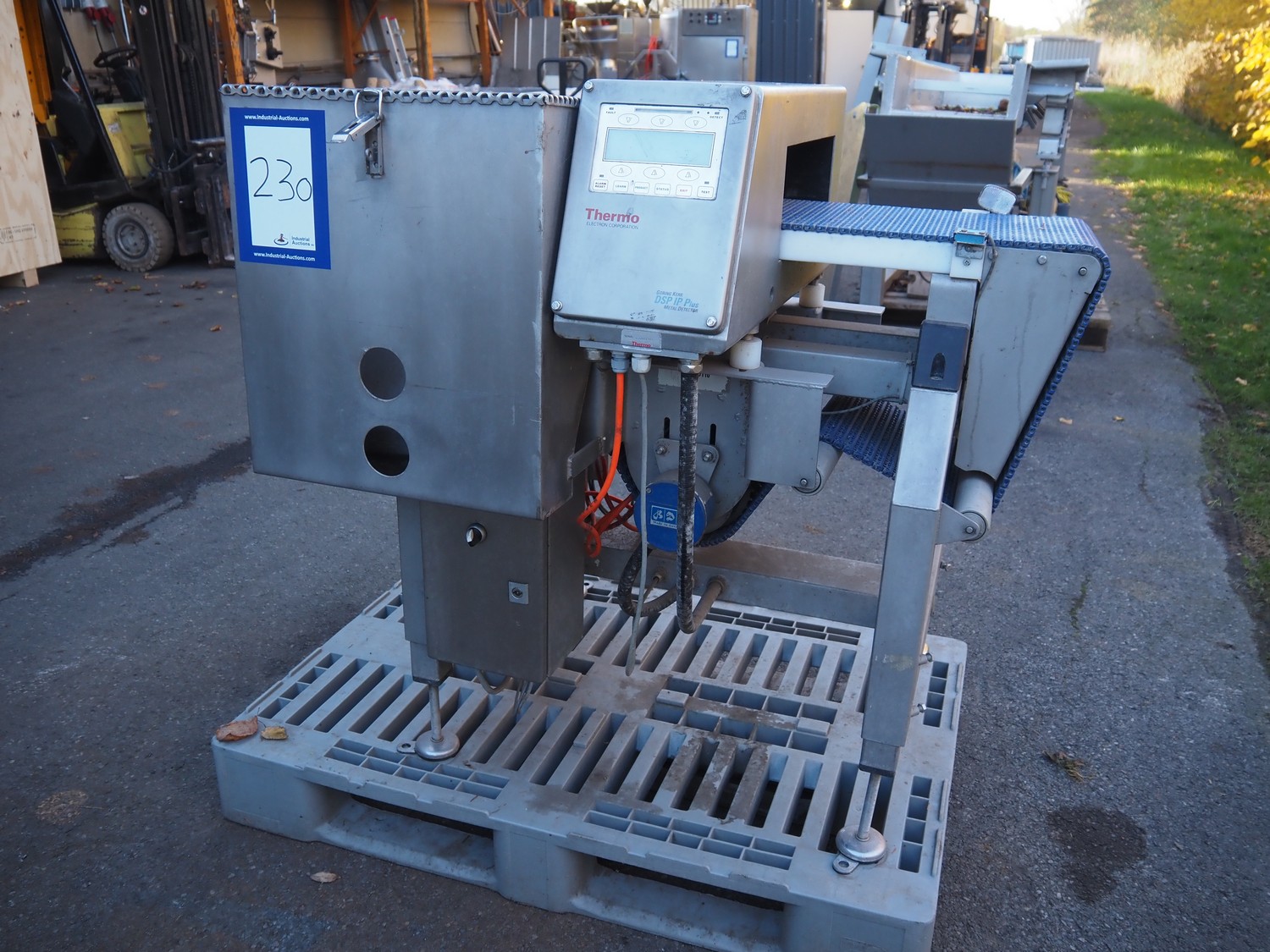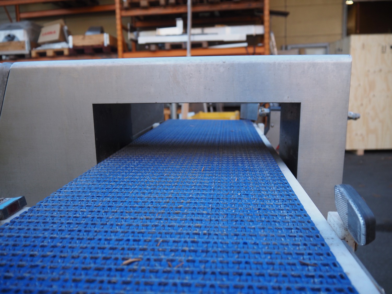 Thermo metal detector with rejector, plastic mesh belt, belt width: 300 mm, clearance: 345 mm x 100 mm, total dimensions: 1100 mm x 900 mm x 1050 mm. Lot located in Winsen (DE), viewing and pick up in consultation with Industrial Auctions B.V.