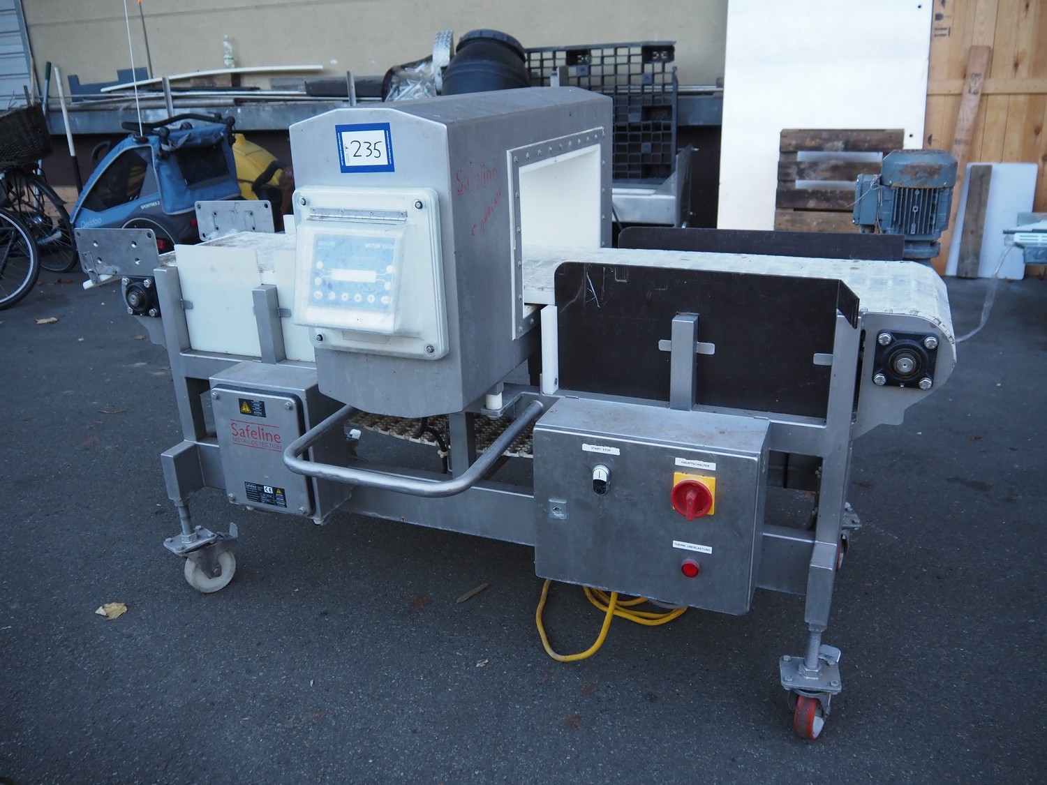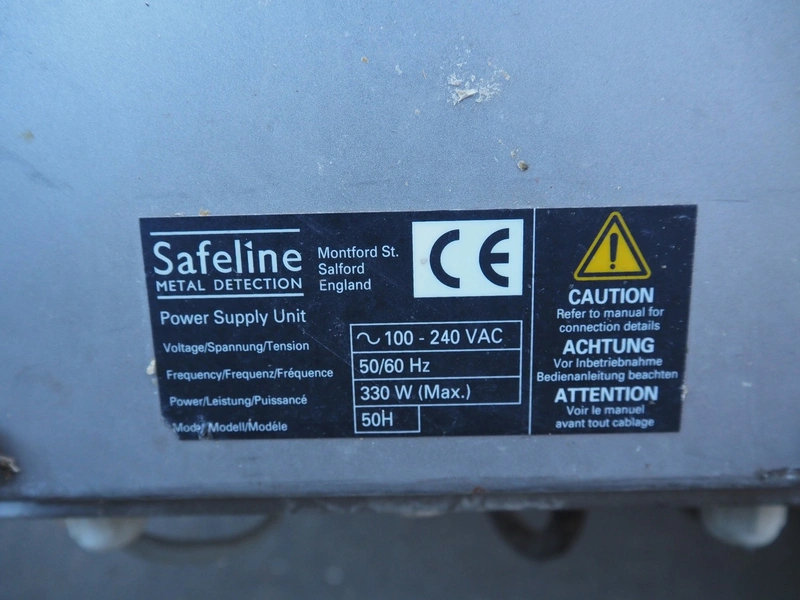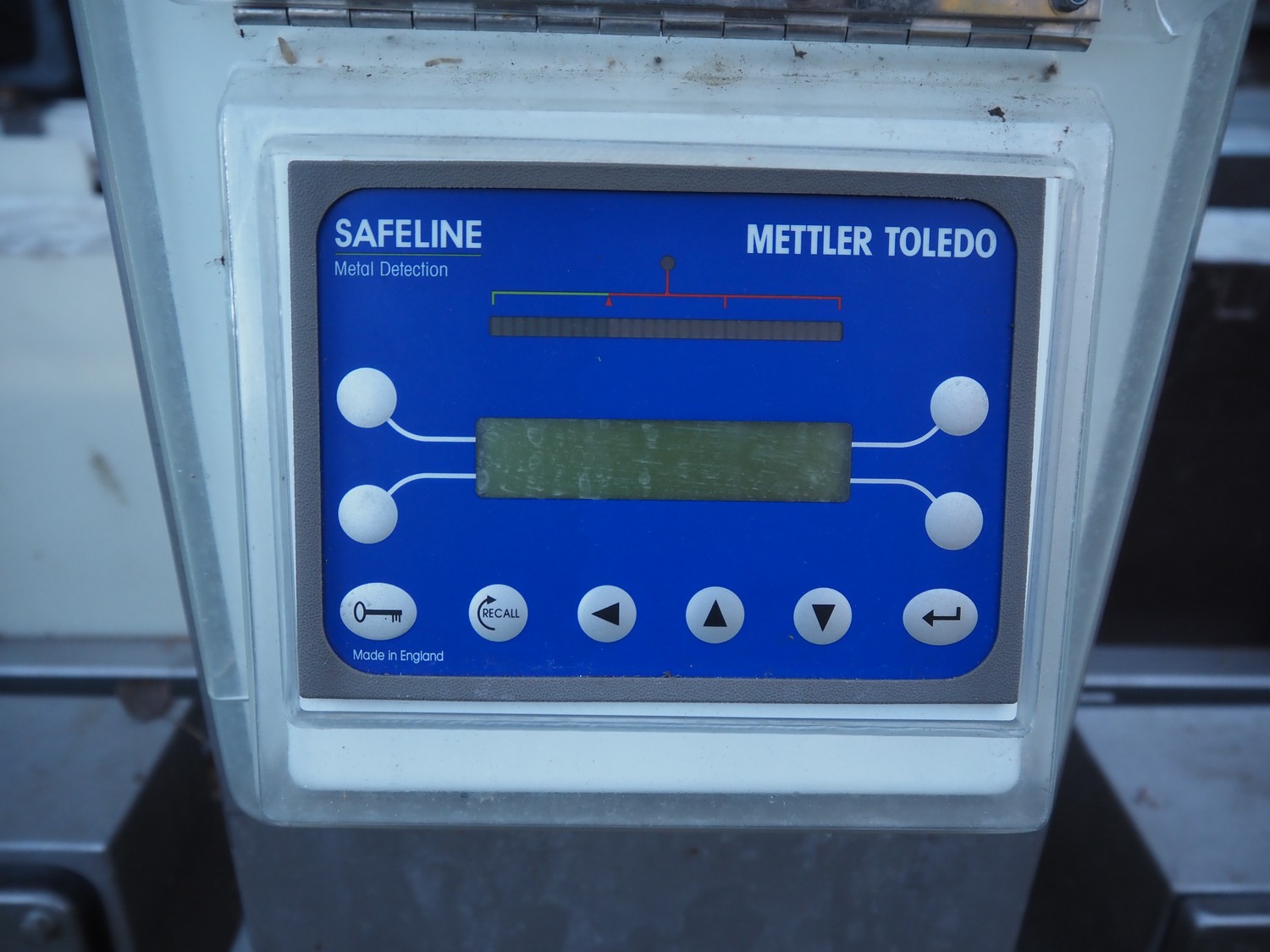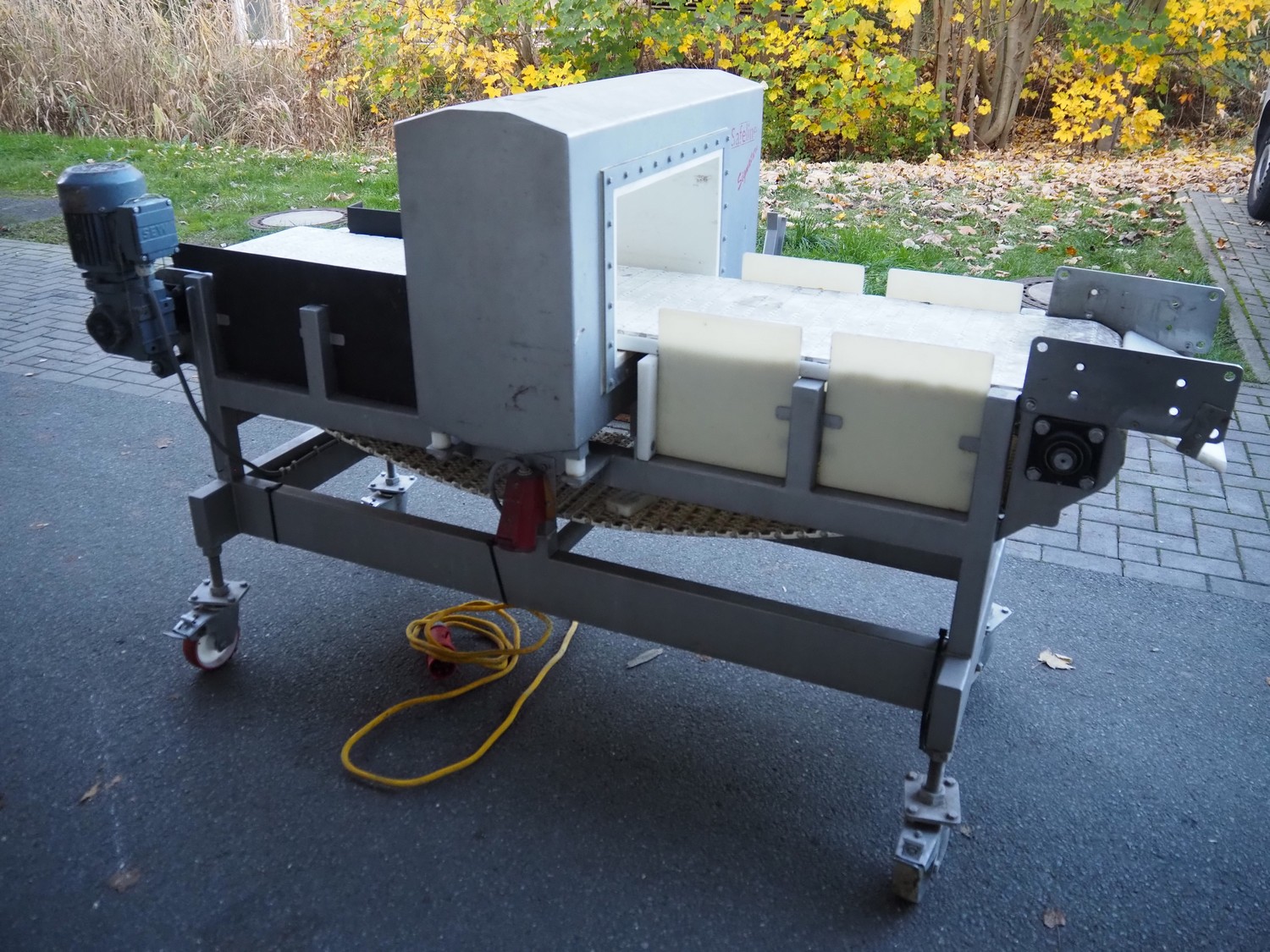 Safeline/Mettler Toledo mobile metal detector, 100/240 Vac, 50/60 Hz, 330 W, plastic belt, belt width: 380 mm, clearance: 450 mm x 215 mm, total dimensions: 2000 mm x 980 mm x 1150 mm. Lot located in Winsen (DE), viewing and pick up in consultation with Industrial Auctions B.V.