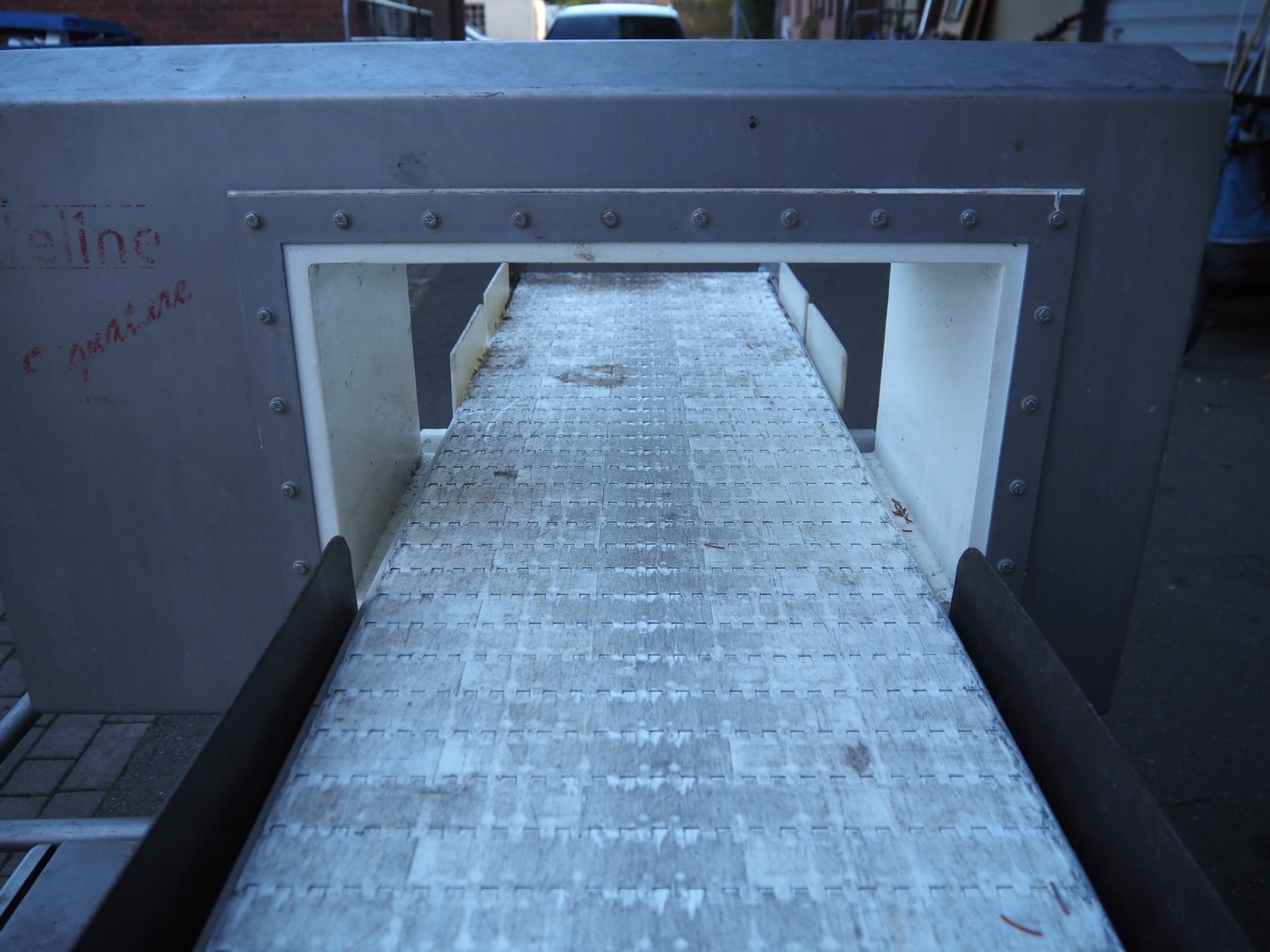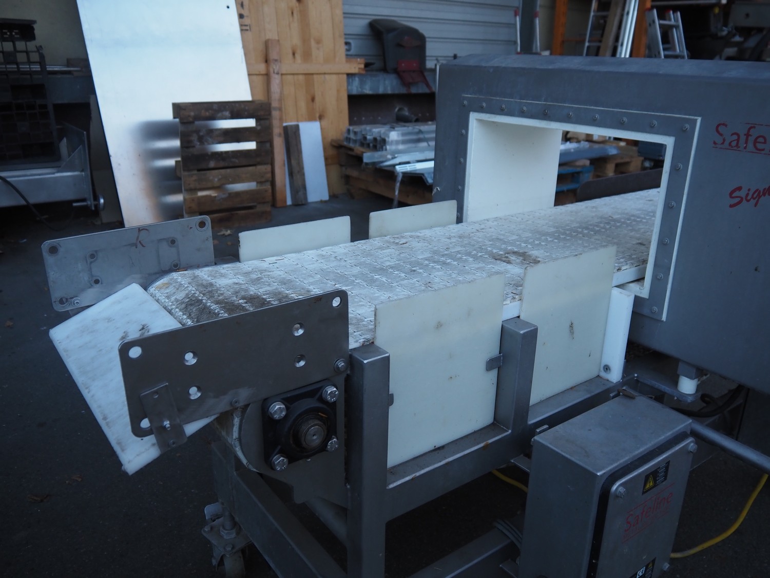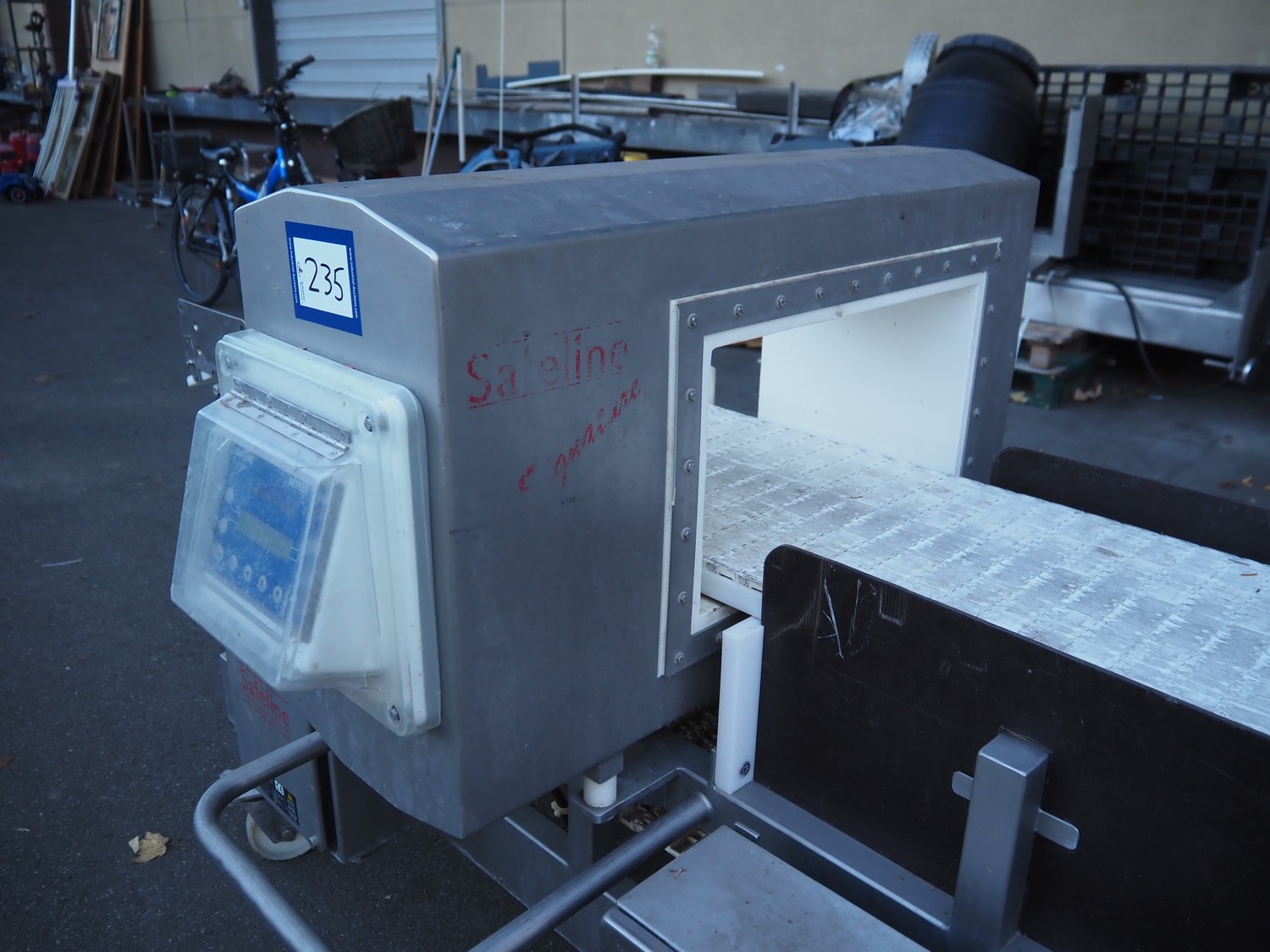 Safeline/Mettler Toledo mobile metal detector, 100/240 Vac, 50/60 Hz, 330 W, plastic belt, belt width: 380 mm, clearance: 450 mm x 215 mm, total dimensions: 2000 mm x 980 mm x 1150 mm. Lot located in Winsen (DE), viewing and pick up in consultation with Industrial Auctions B.V.