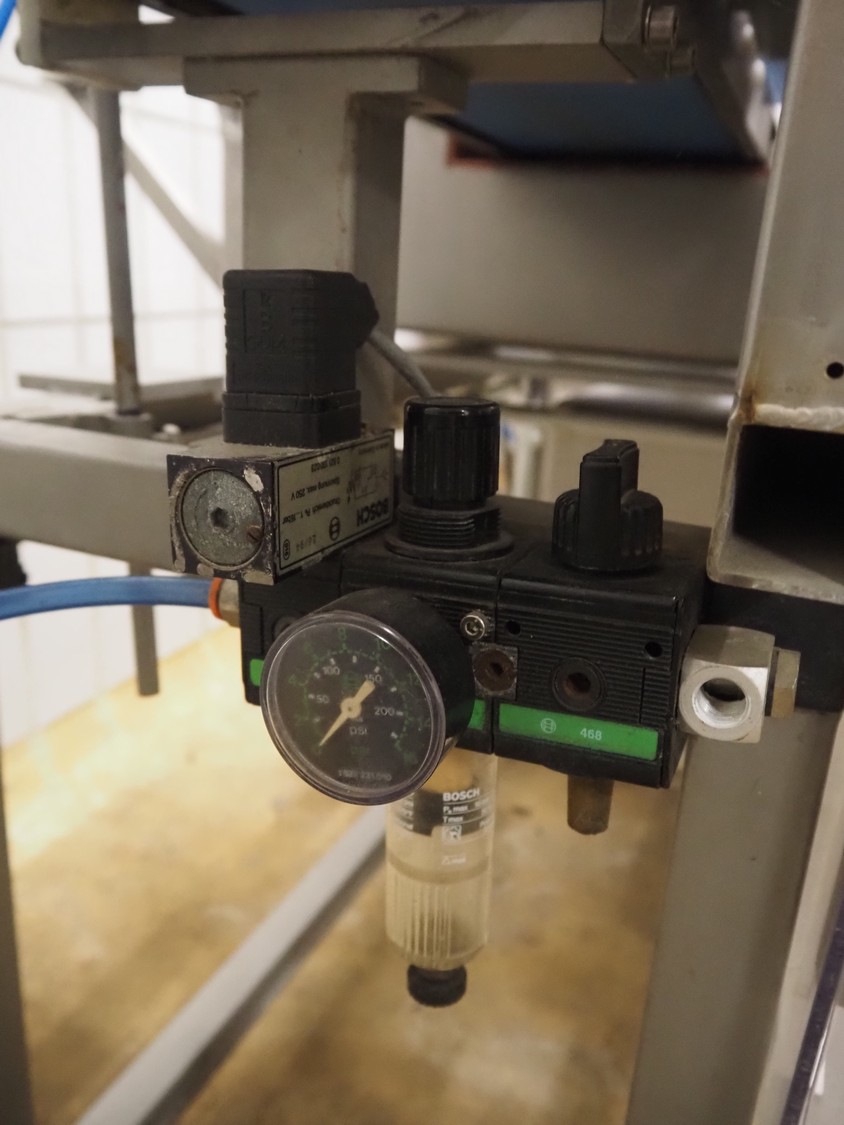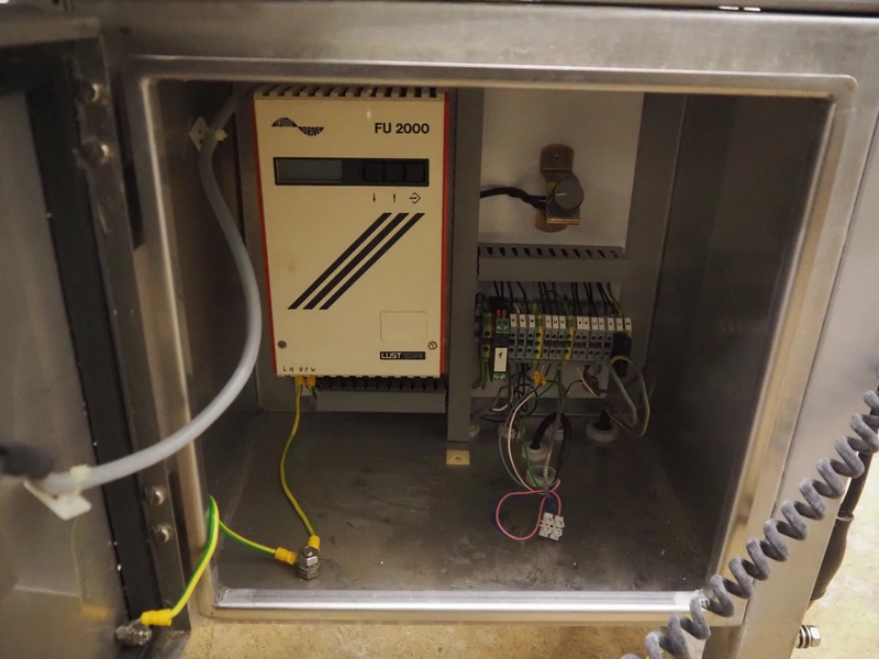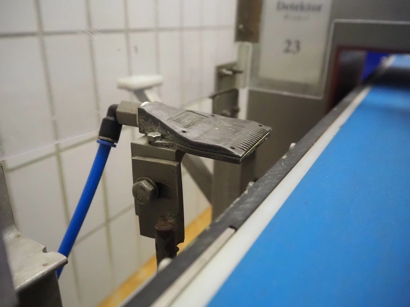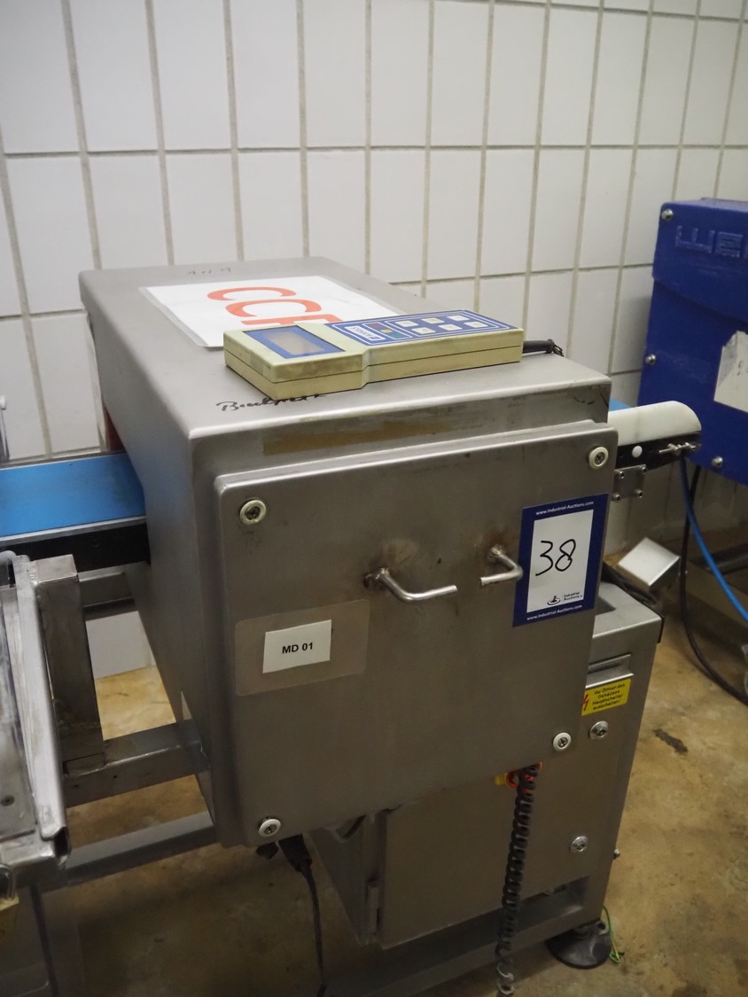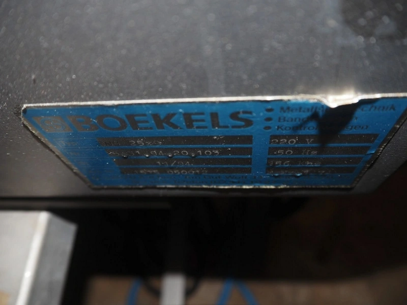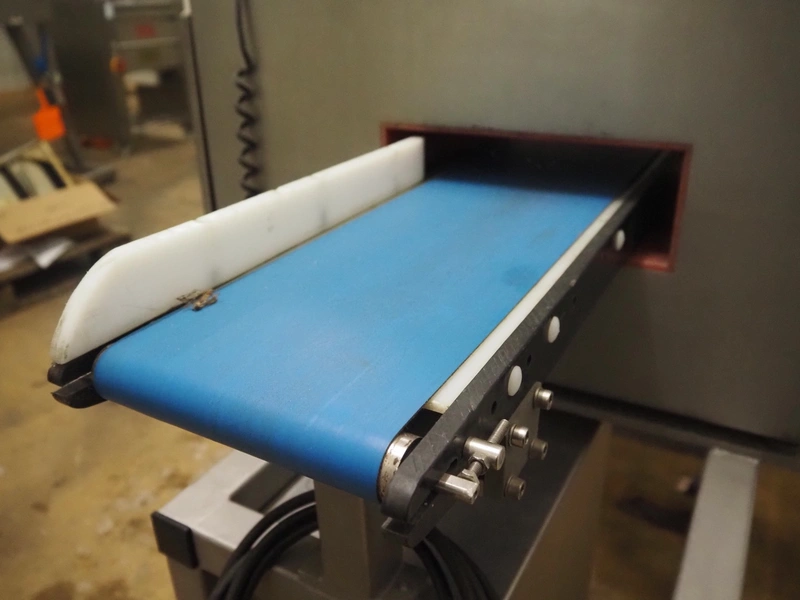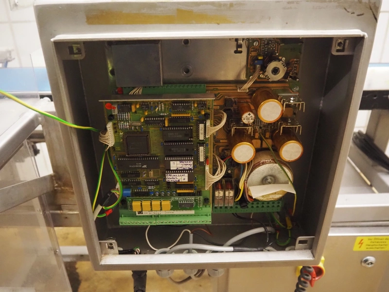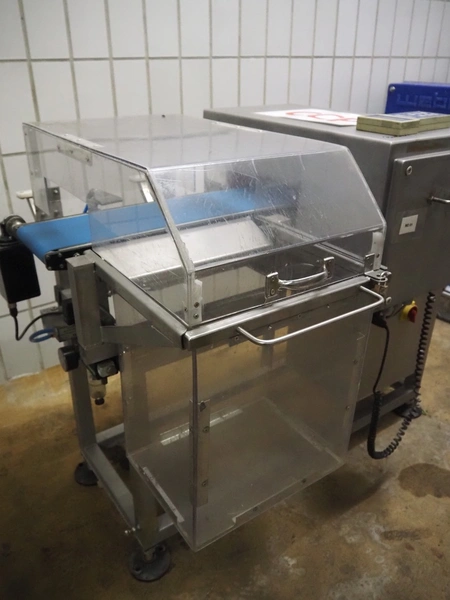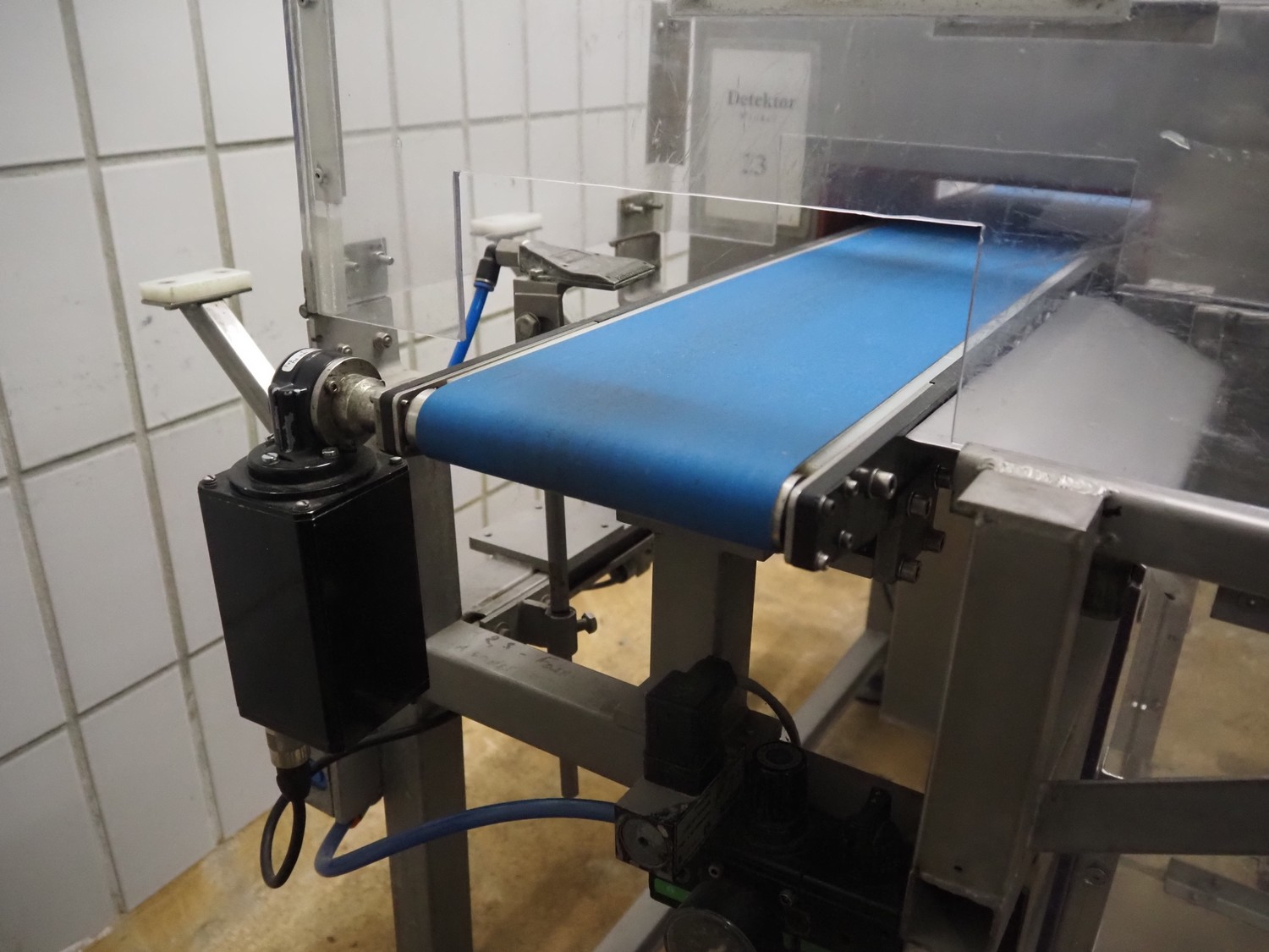 Boekels metal detector with rejector, type: 25x9, number: 94.20.103, year of construction: 11/94, 220 V, 50 Hz, 156 Khz, plastic belt, belt width: 160 mm, clearance: 250 mm x 100 mm, dimensions: 2000 mm x 950 mm x 1300 mm.