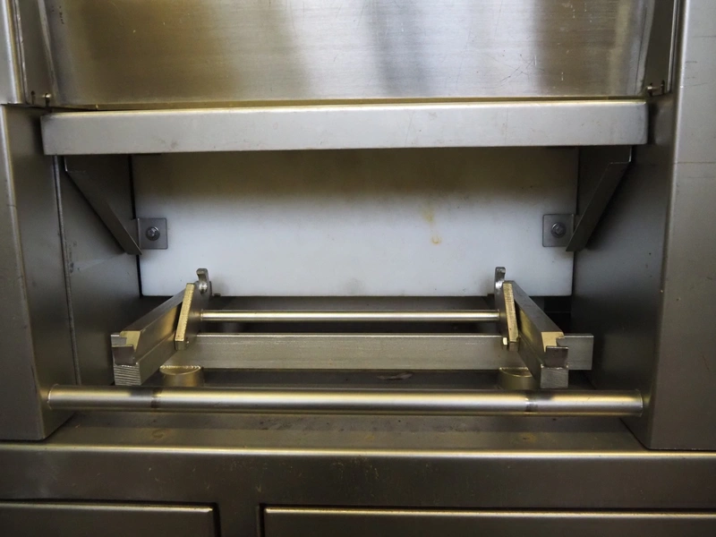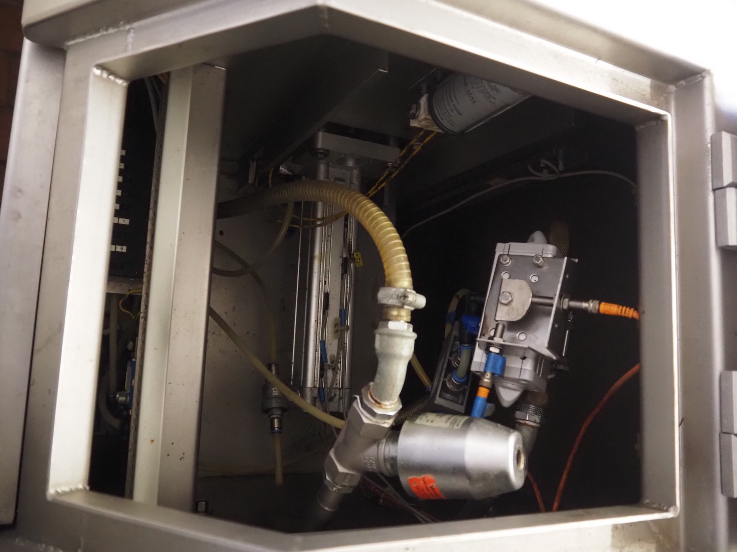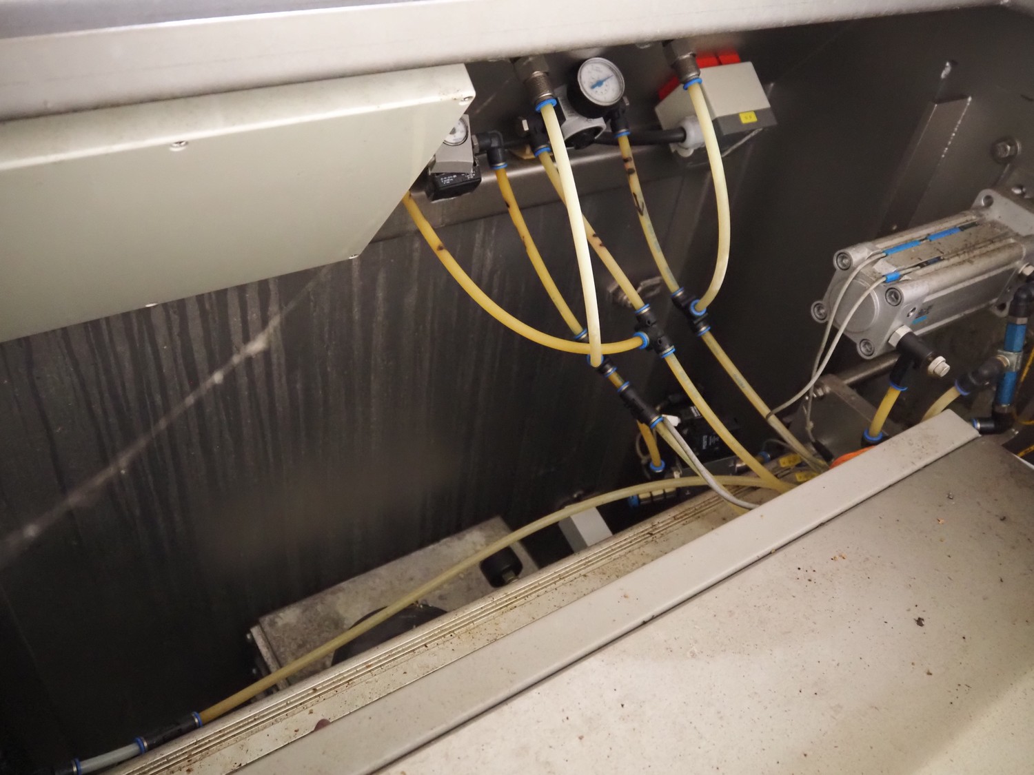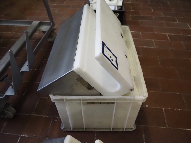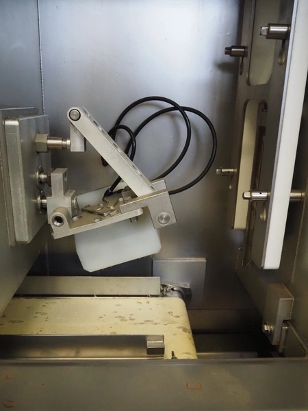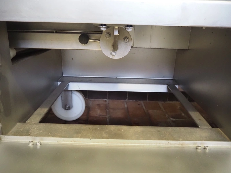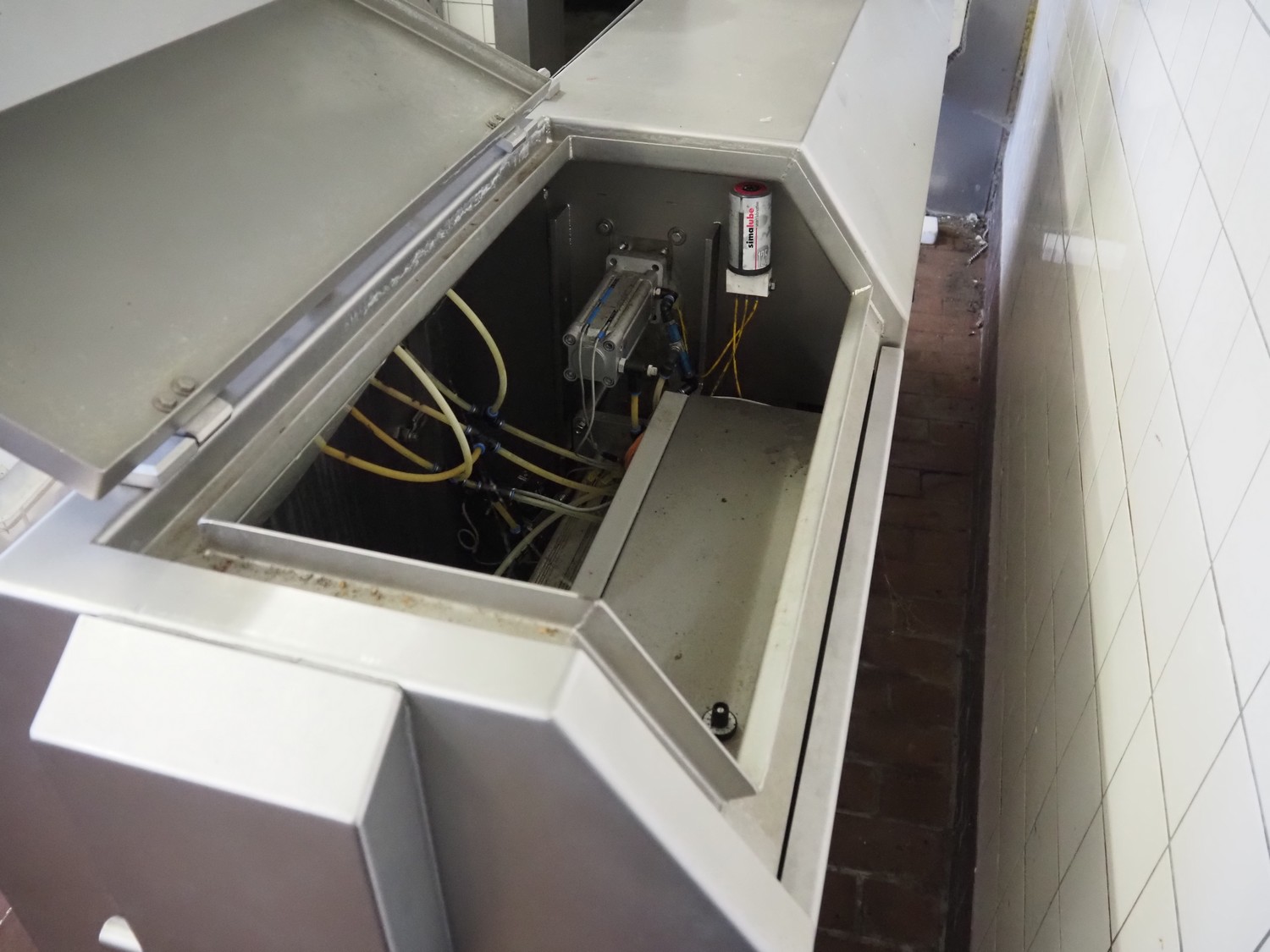 Maja-Maschinenfabrik mobile portion cutter, type: FPS 40, serial number: 41859, year of construction: 2000, 400 V, 3 Ph, 50 Hz, 3.5 A, 1.3 kW, Busch vacuum pump, type: RC 0025 E 501, number: 00031553, capacity: 25 m³ per hour, belt width: 200 mm, total dimensions: 2700 mm x 750 mm x 1700 mm. Including 2 crates with moulds and spare parts.