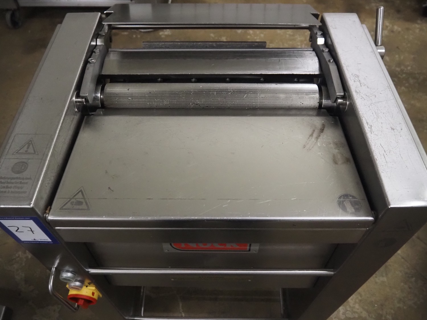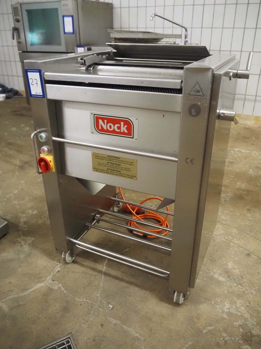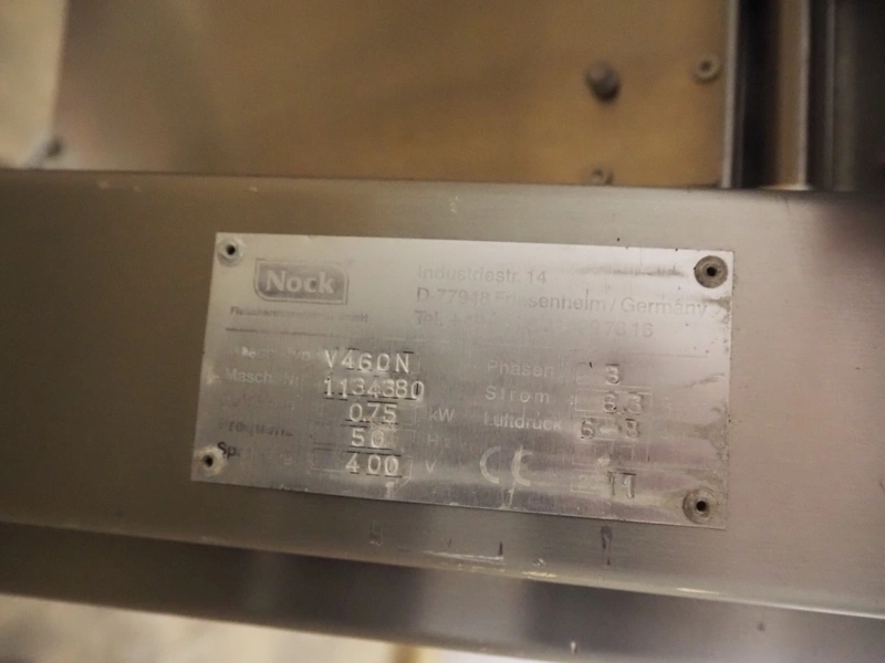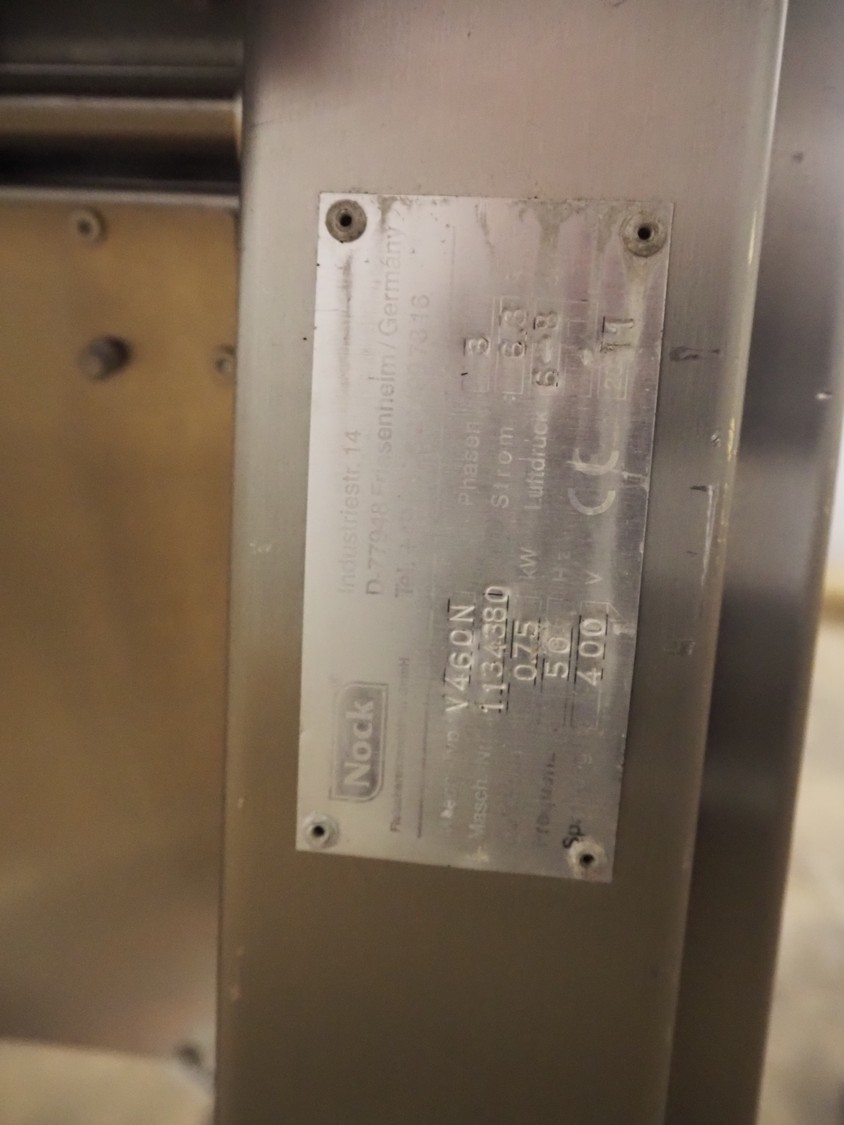 Nock mobile skinning machine, type: V460N, number: 1134380, year of construction: 2011, 400 V, 3 Ph, 50 Hz, 6.3 A, 0.75 kW, working width: 430 mm, total dimensions: 750 mm x 650 mm x 950 mm.