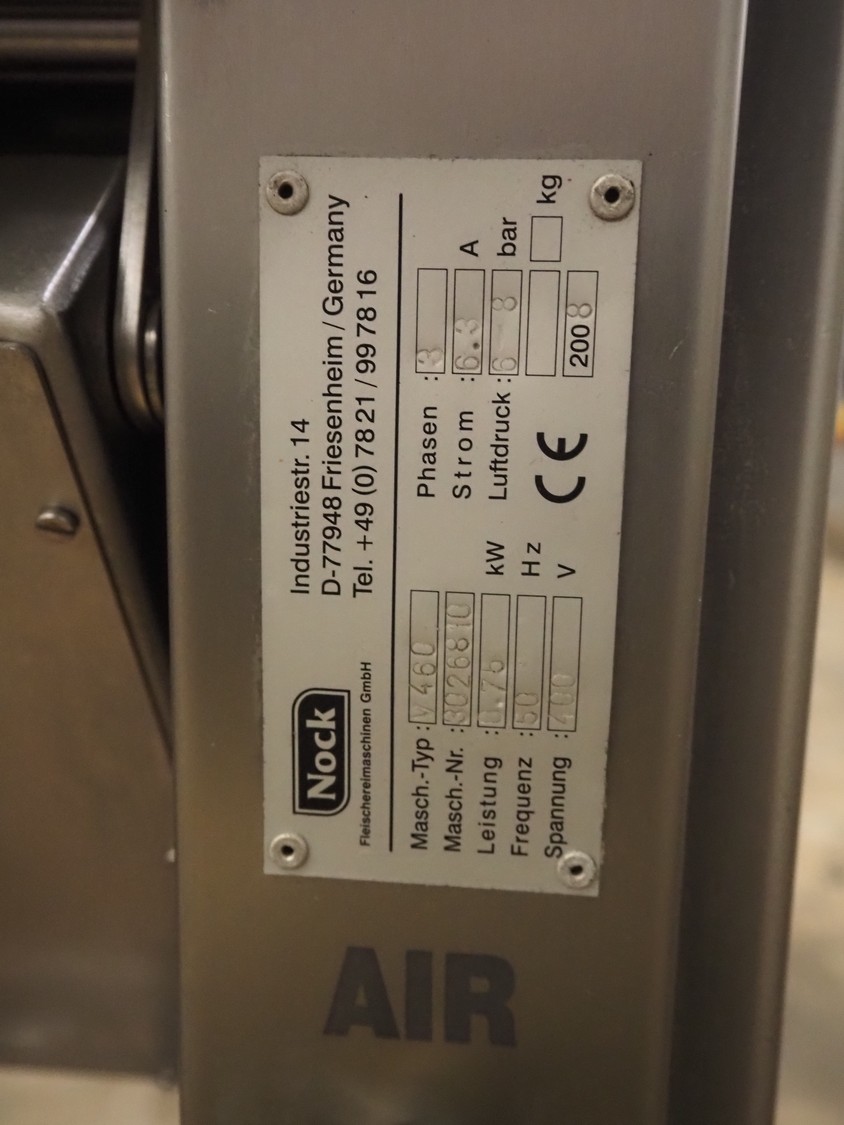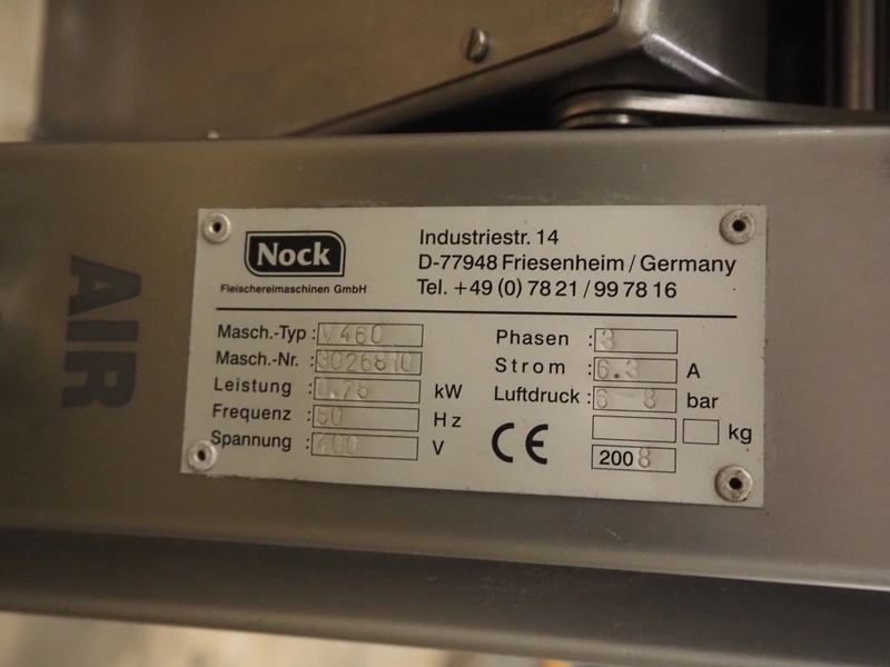 Nock mobile skinning machine, type: V460, number: 3026810, year of construction: 2008, 400 V, 3 Ph, 50 Hz, 6.3 A, 0.75 kW, working width: 430 mm, total dimensions: 750 mm x 650 mm x 950 mm.