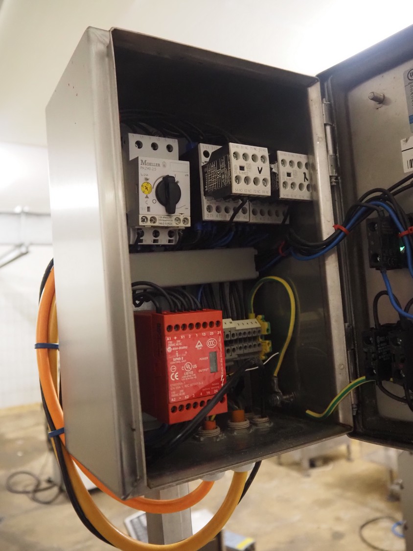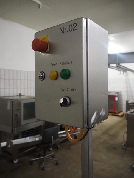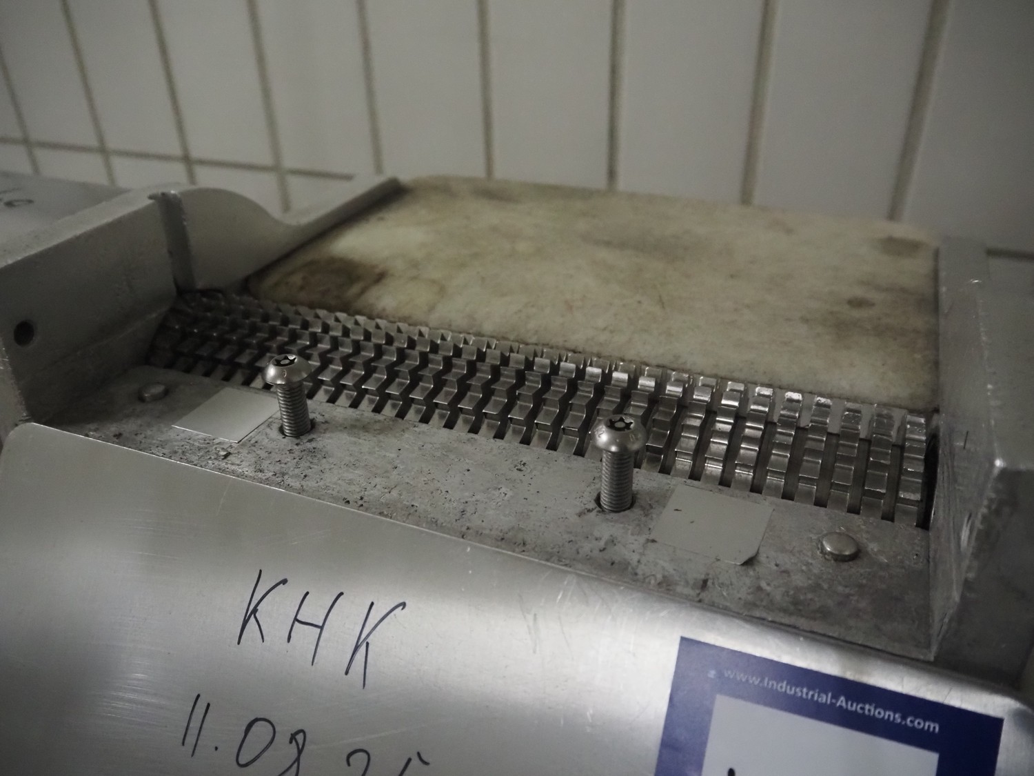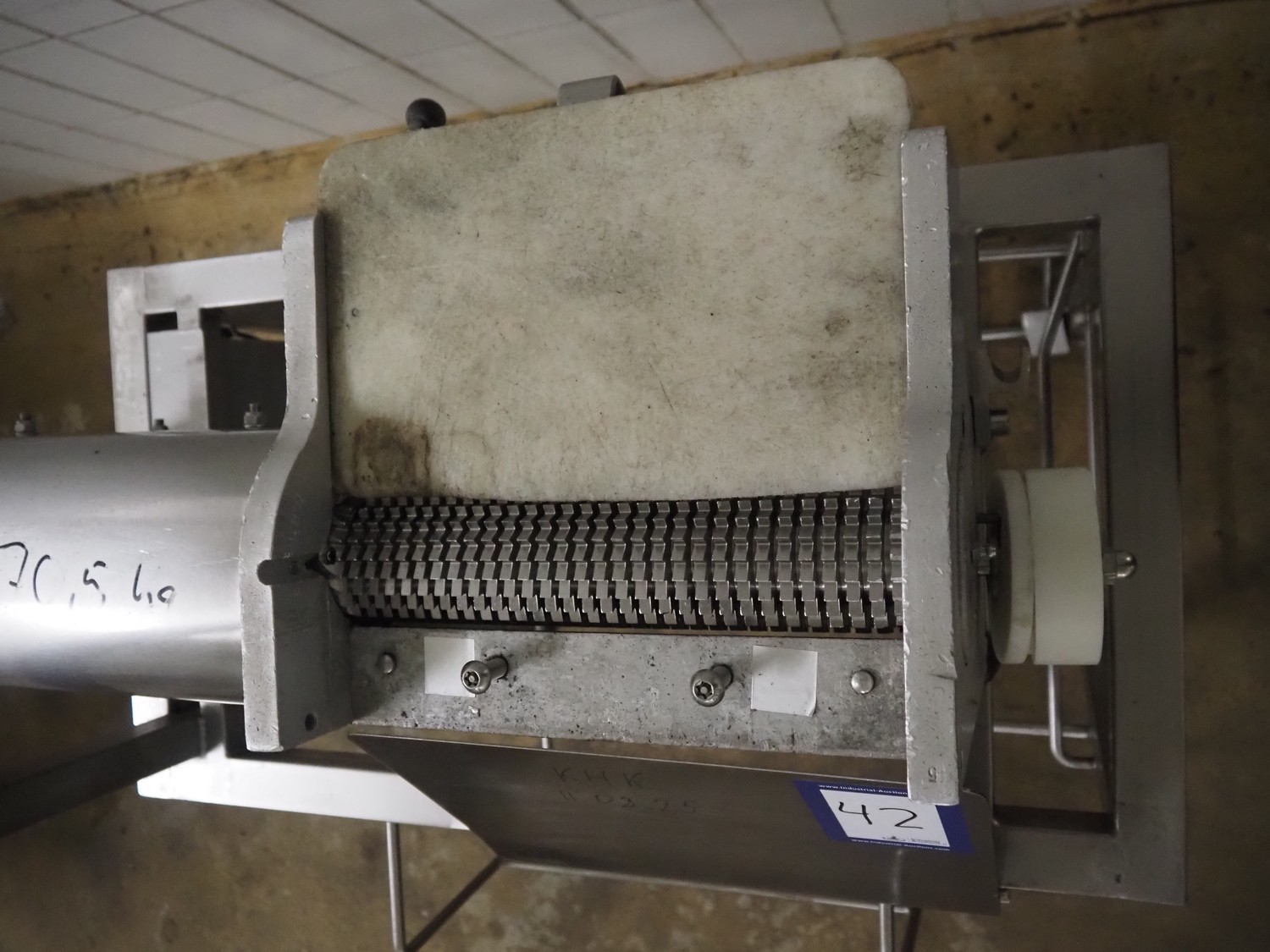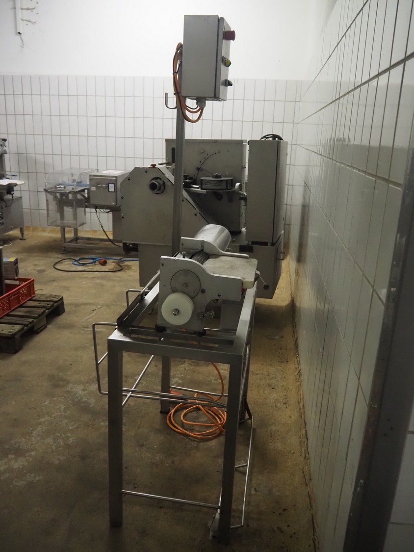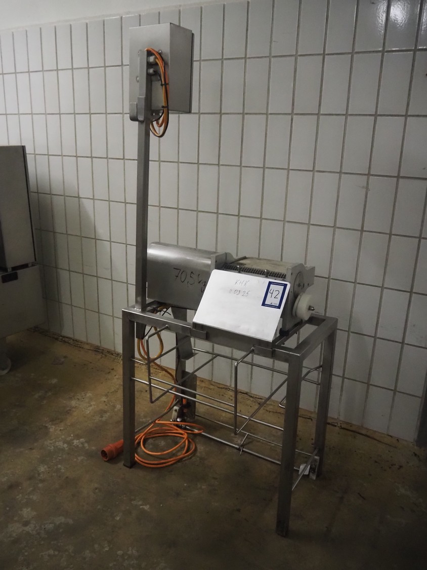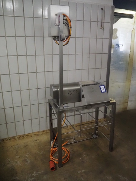 S/s skinning machine, working width: 290 mm, total dimensions: 800 mm x 600 mm x 1870 mm. Missing knife.