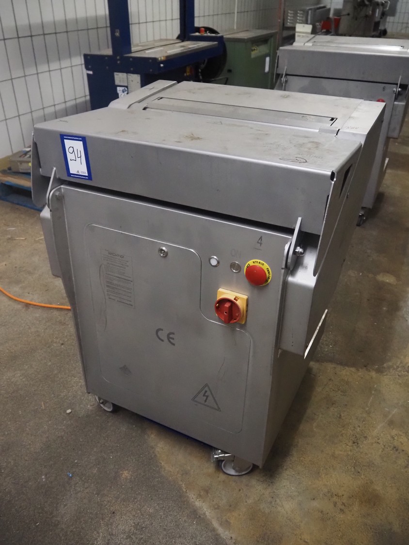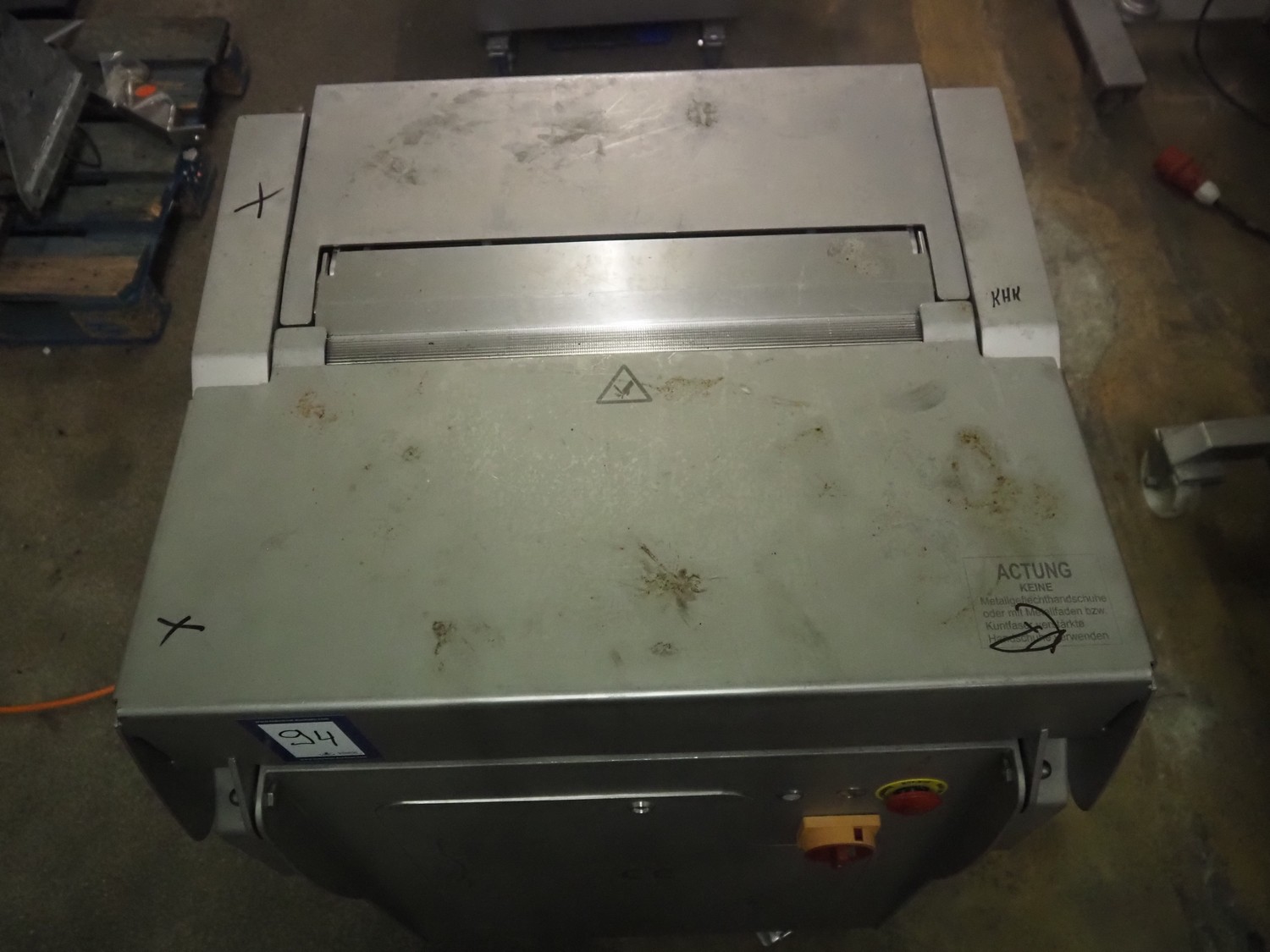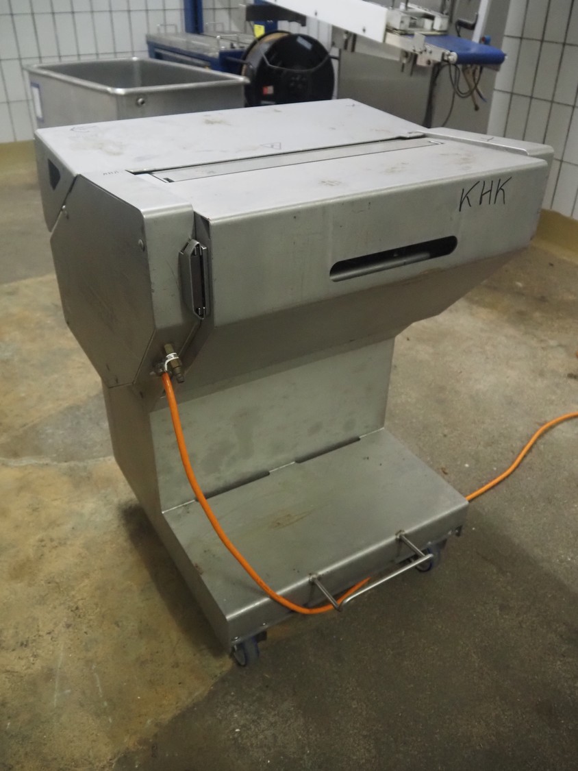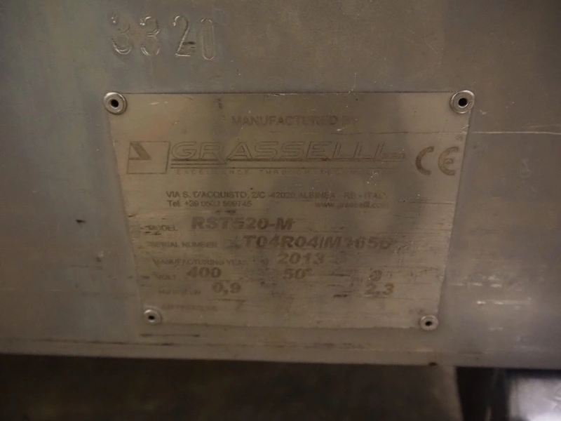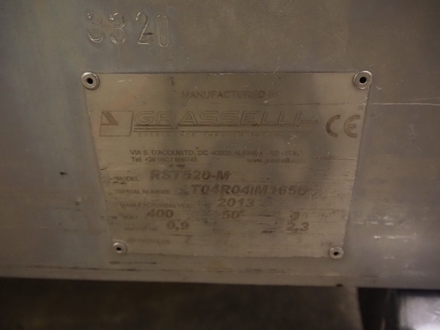 Grasselli mobile skinning machine, model: RST520-M, serial number: T04R04IM1656, year of construction: 2013, 400 V, 3 Ph, 50 Hz, 2.3 A, 0.9 kW, working width: 480 mm, total dimensions: 700 mm x 700 mm x 930 mm.