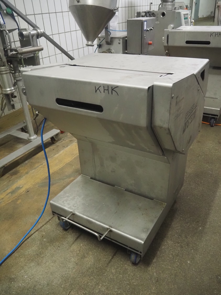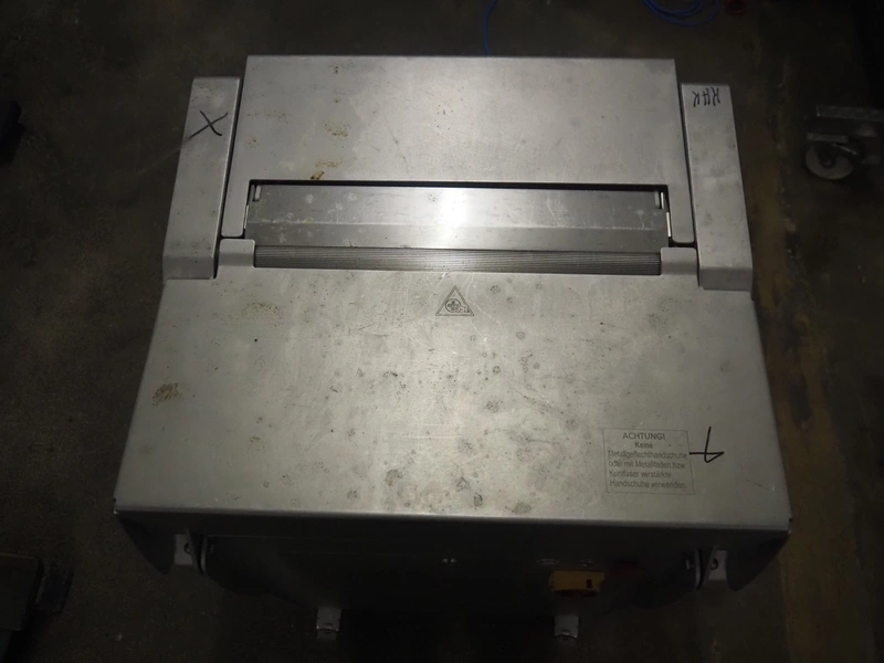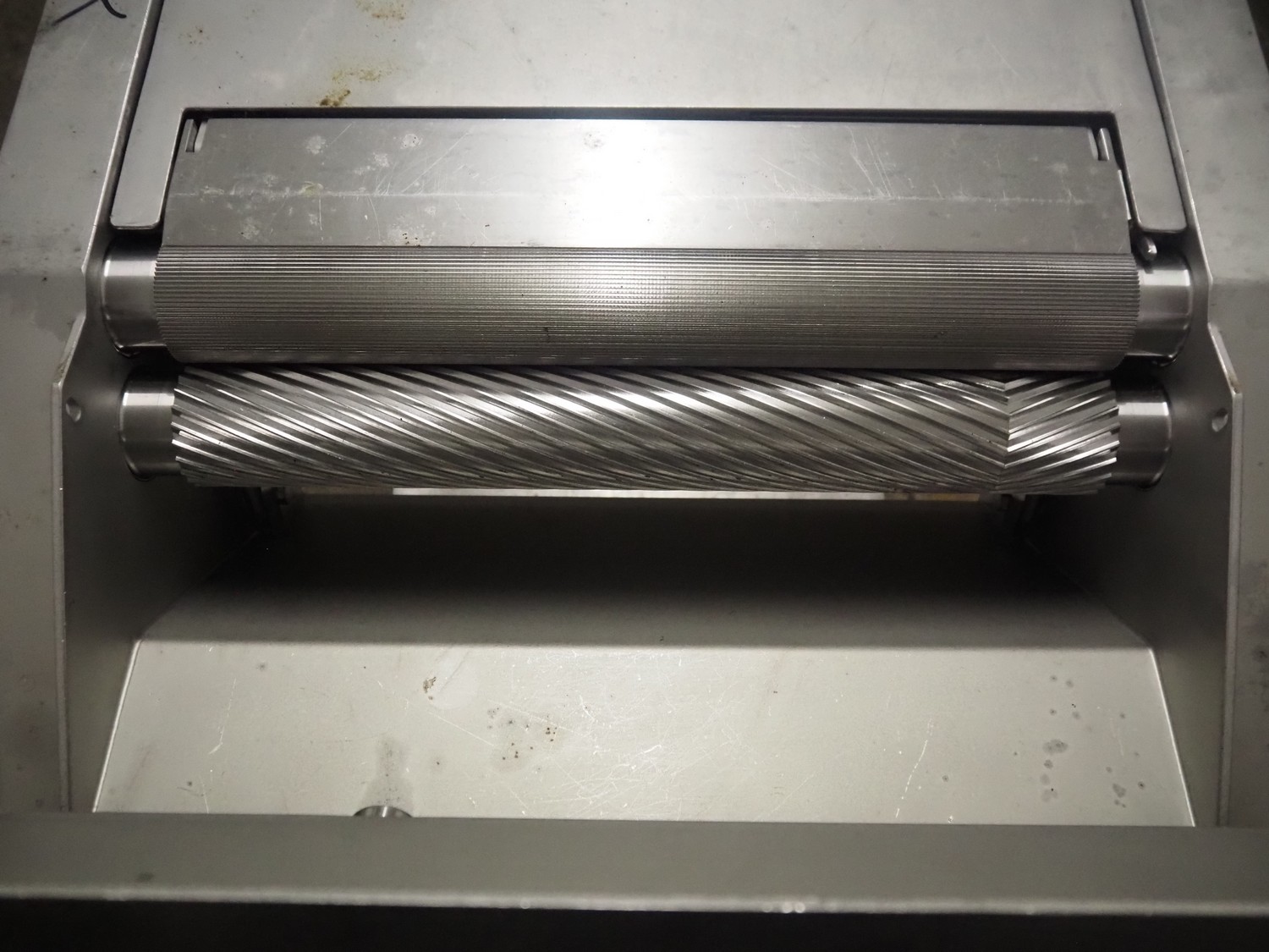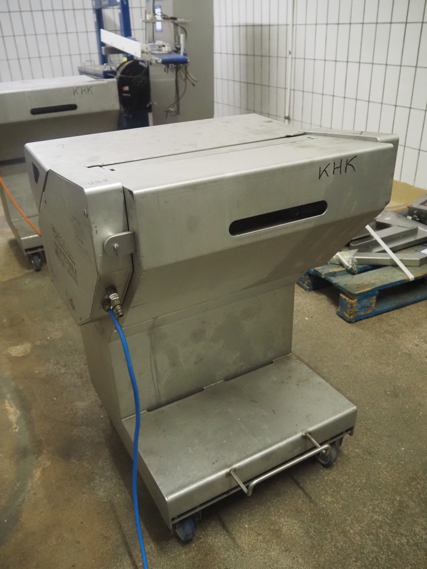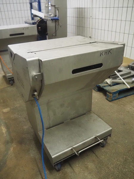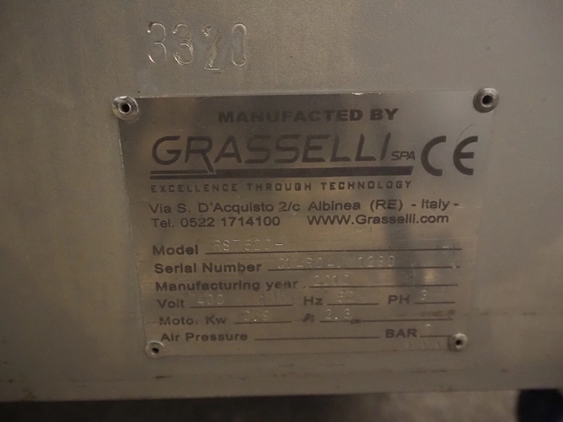 Grasselli mobile skinning machine, model: RST520-M, serial number: 01 4R04/M1280, year of construction: 2010, 400 V, 3 Ph, 50 Hz, 2.3 A, 0.9 kW, working width: 480 mm, total dimensions: 700 mm x 700 mm x 930 mm.