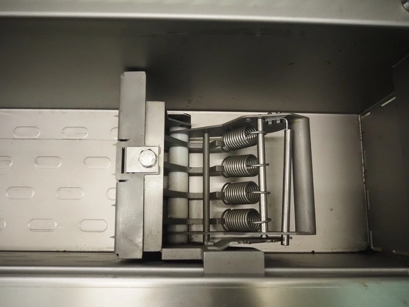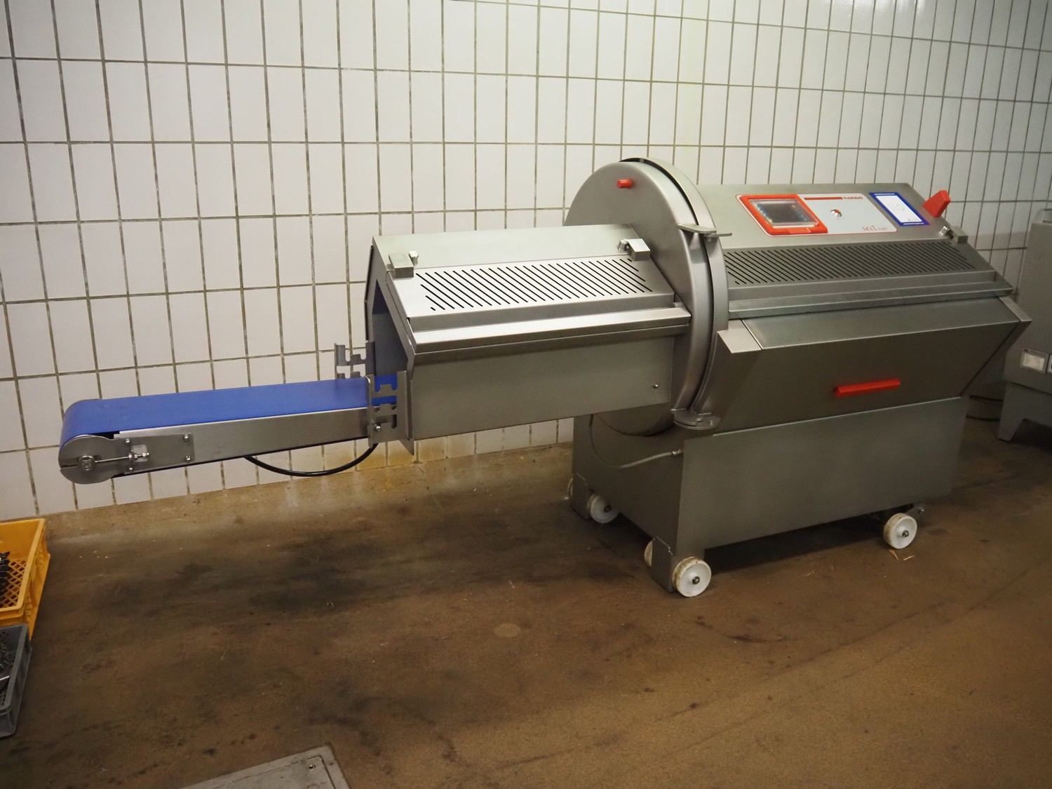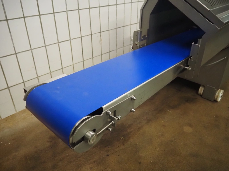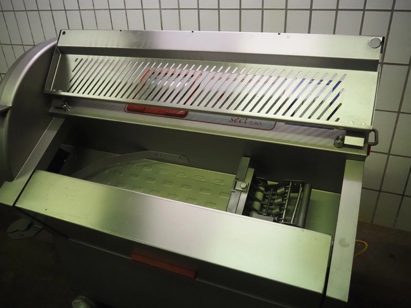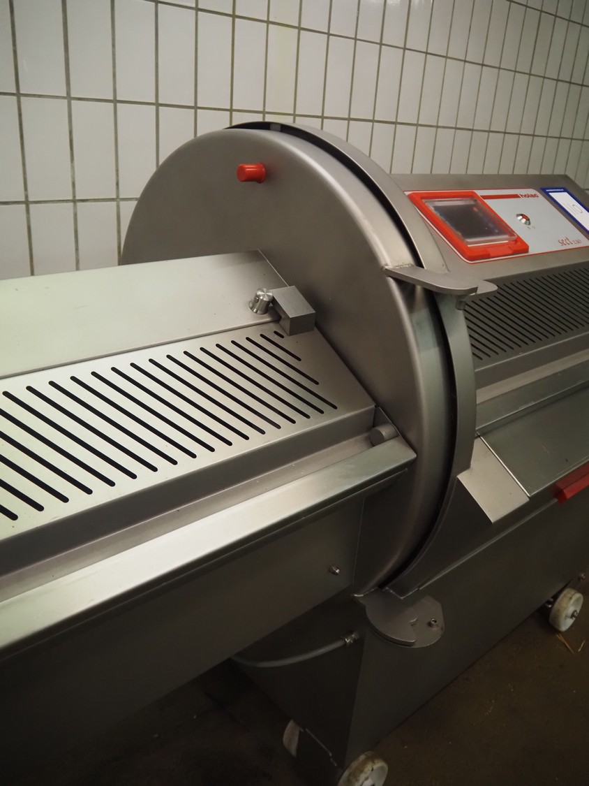 Holac Maschinenbau GmbH mobile slicer, type: SECT 230, serial number: 270-00-08, year of construction: 2011, 400 V, 50 Hz, 10 A, 4 kW, plastic belt, belt width: 250 mm, dimensions chamber: 230 mm x 180 mm, total dimensions: 2850 mm x 920 mm x 1320 mm.