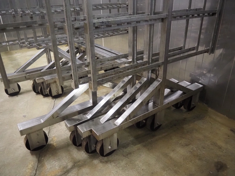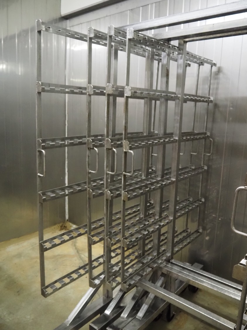 4 s/s smoke trolleys, 6 floors, total dimensions: (4x) 1030 mm x 1030 mm x 1980 mm.