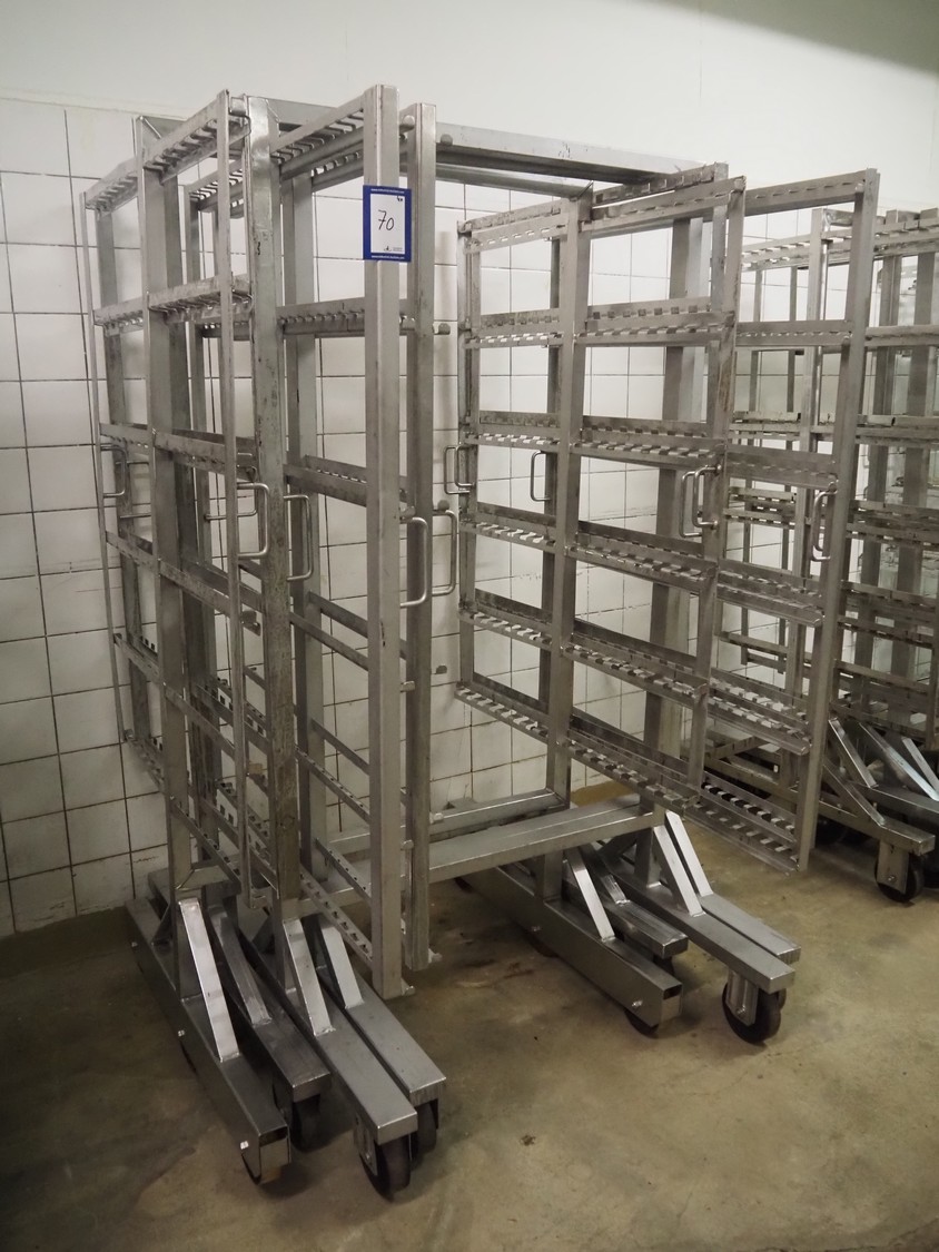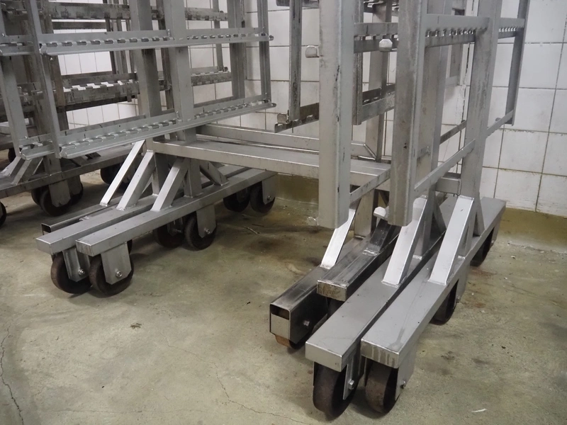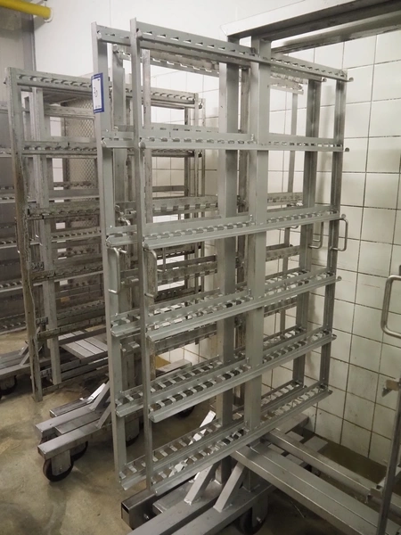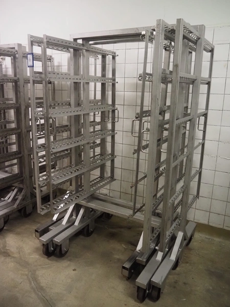 4 s/s smoke trolleys, 6 floors, total dimensions: (4x) 1030 mm x 1030 mm x 1980 mm.