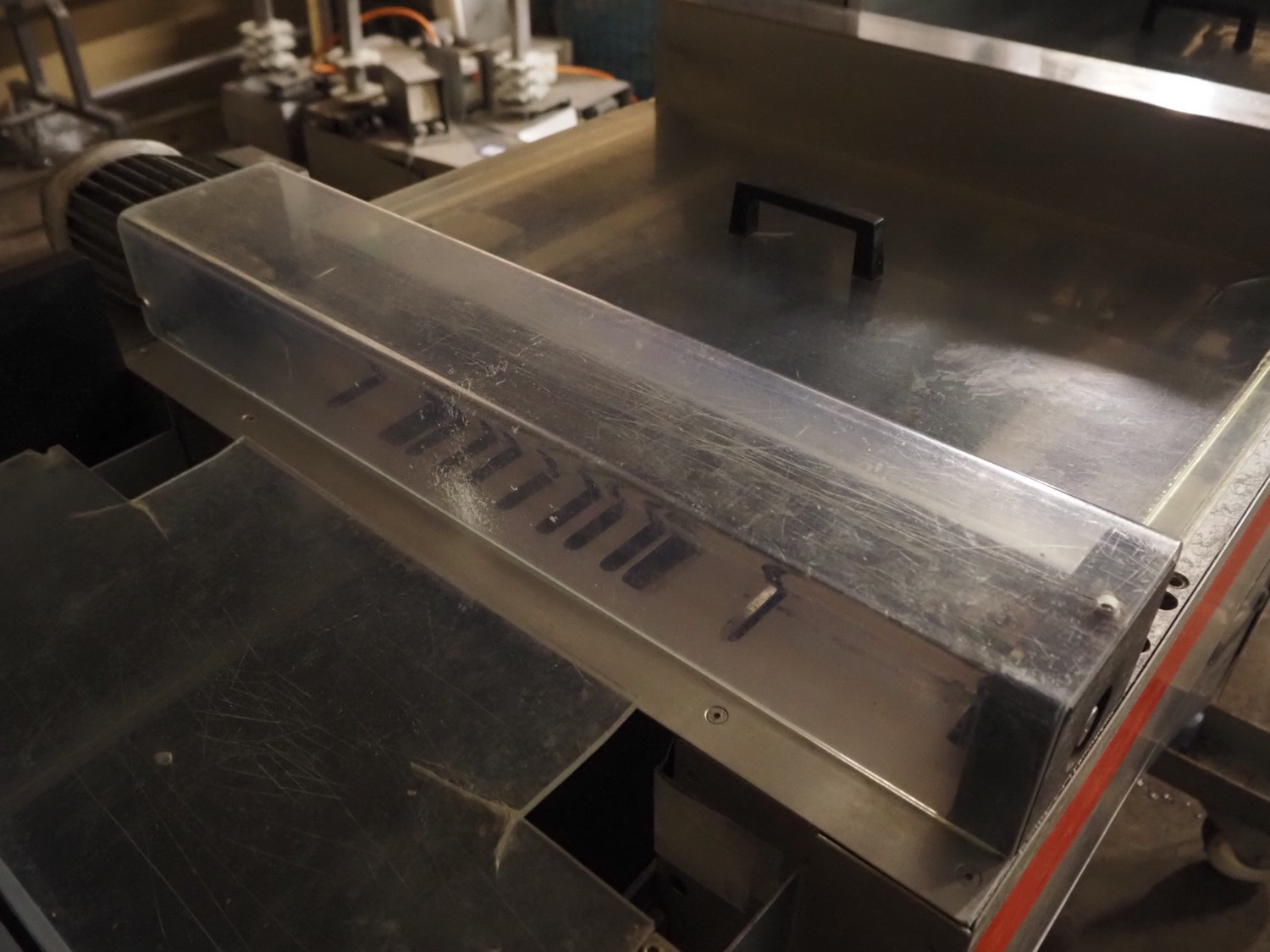 Krämer + Grebe thermoformer, type: 2500, machine number: 656/104, year of construction: 1992, 380 V, 3 Ph, 50 Hz, 20 A, dimensions dye: 195 mm x 150 mm, total dimensions: 6400 mm x 980 mm x 1980 mm. Without rollies.