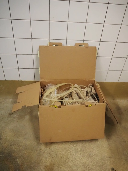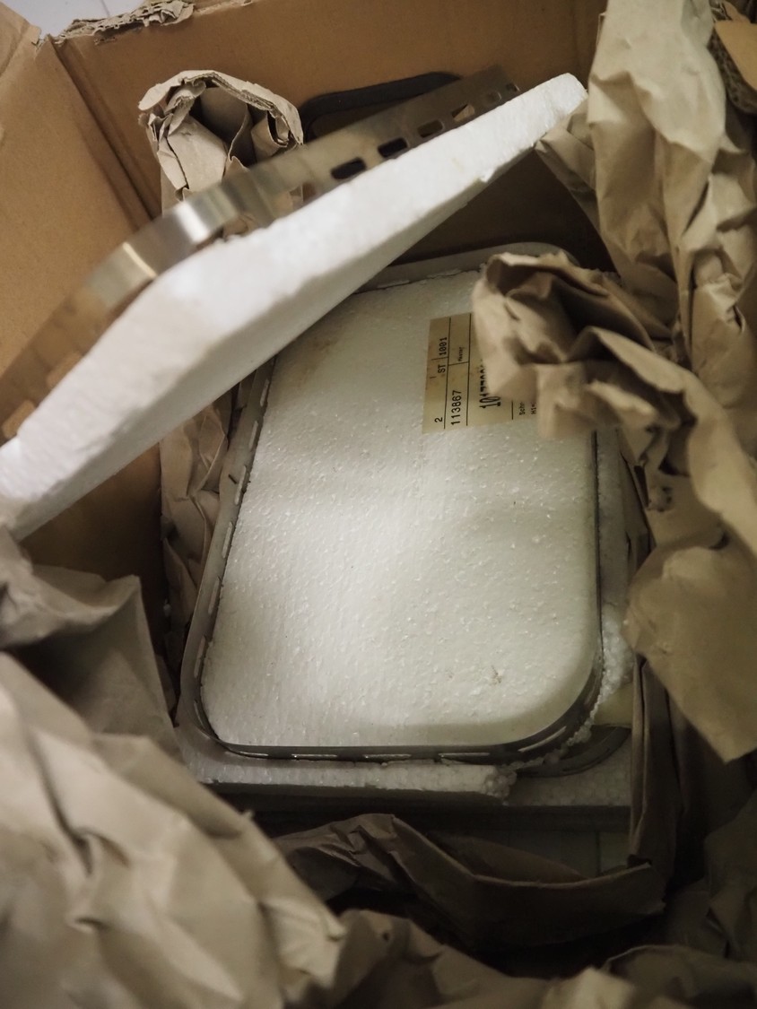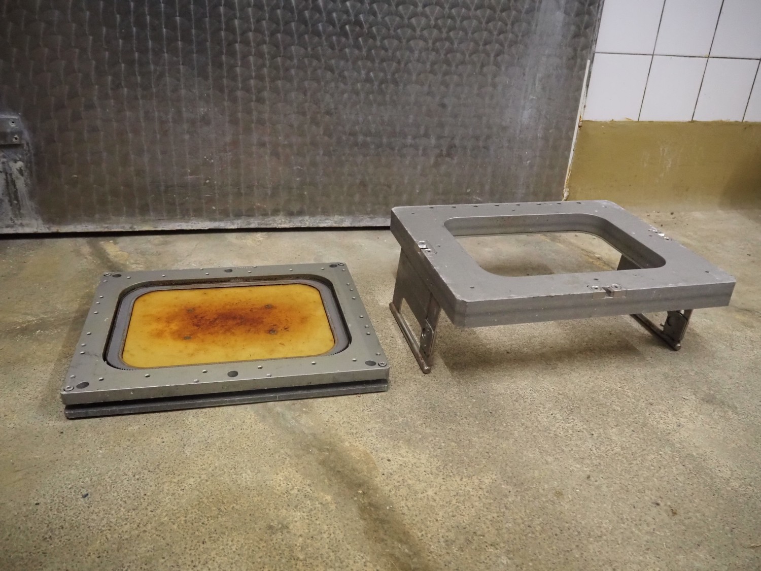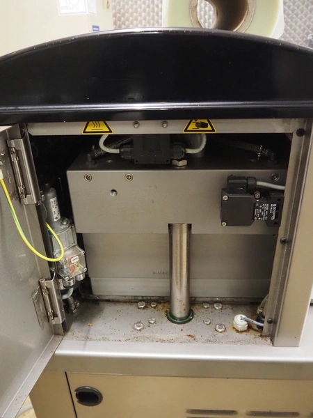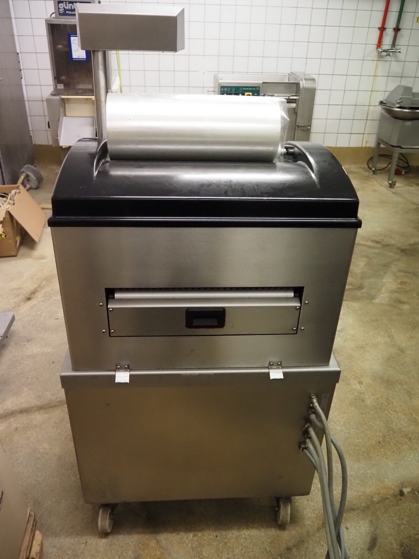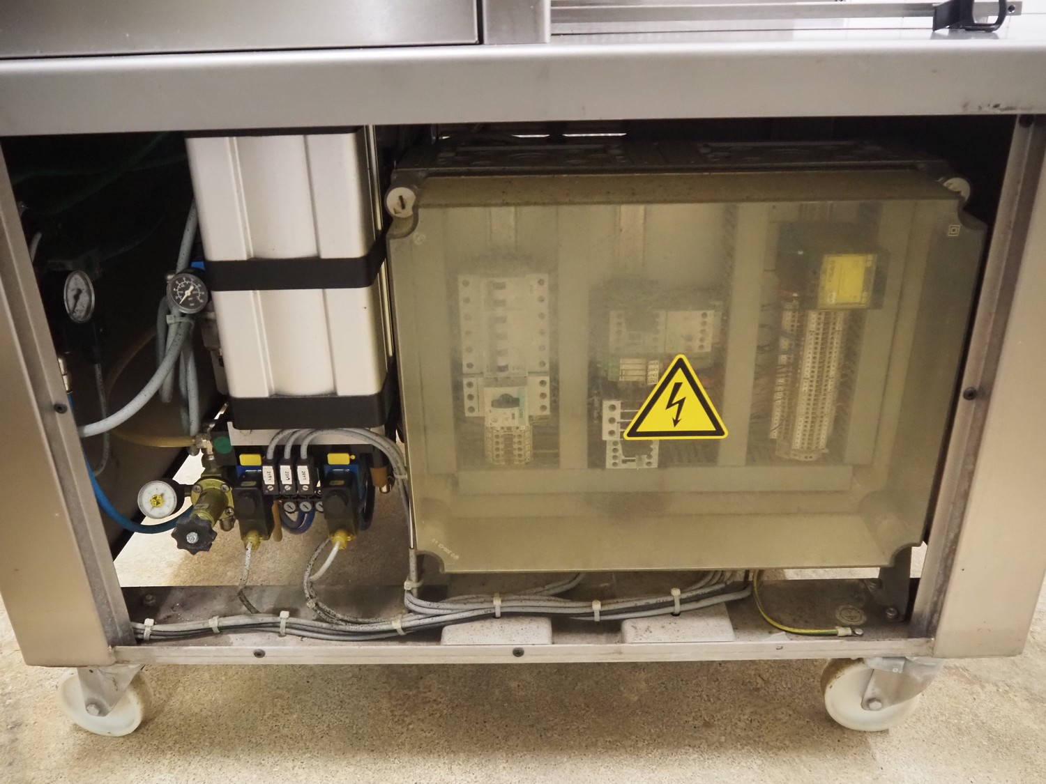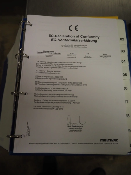 Multivac traysealer, type: T 200, machine number: 130, year of construction: 2003, 400 V, 3 Ph, 50 Hz, 11 A, 4.5 kW, dye: 290 mm x 225 mm, film width: 450 mm, with Busch vacuum pump, type: RA 0063 E 5Z1, number: 03043785, capacity: 63 m³ per hour. total dimensions: 1000 mm x 760 mm x 1570 mm. Including pallet with plastic trays, total dimensions: 1200 mm x 800 mm x 1600 mm and box with dyes.