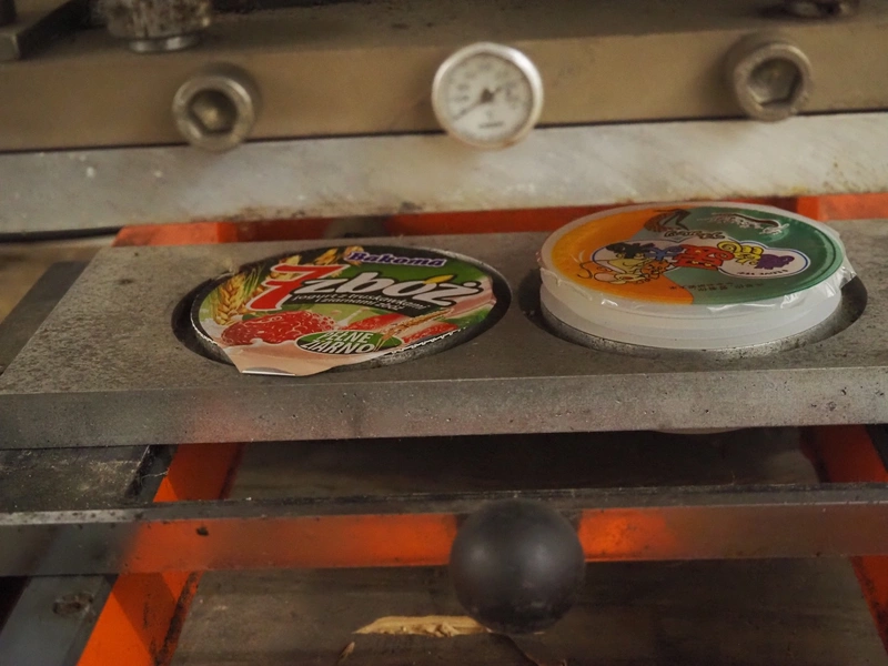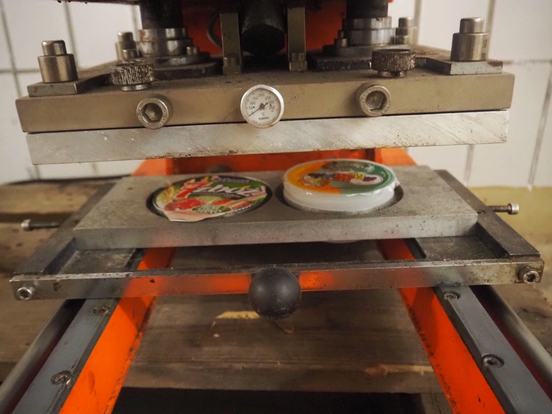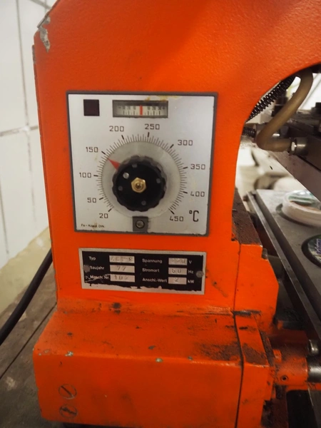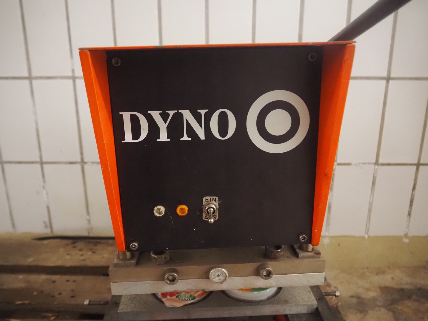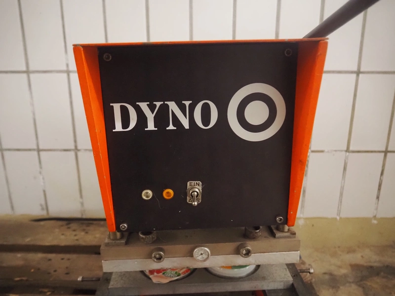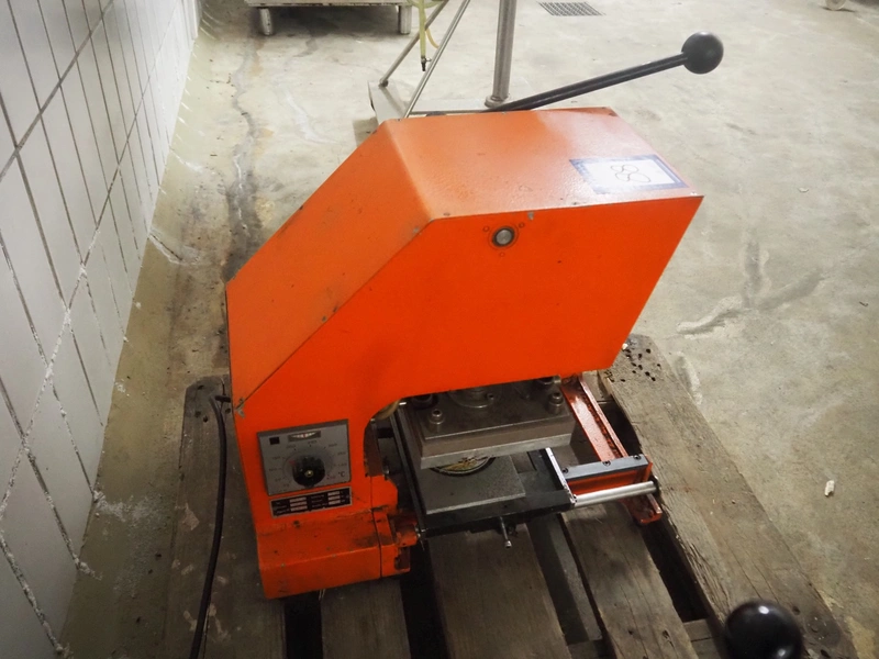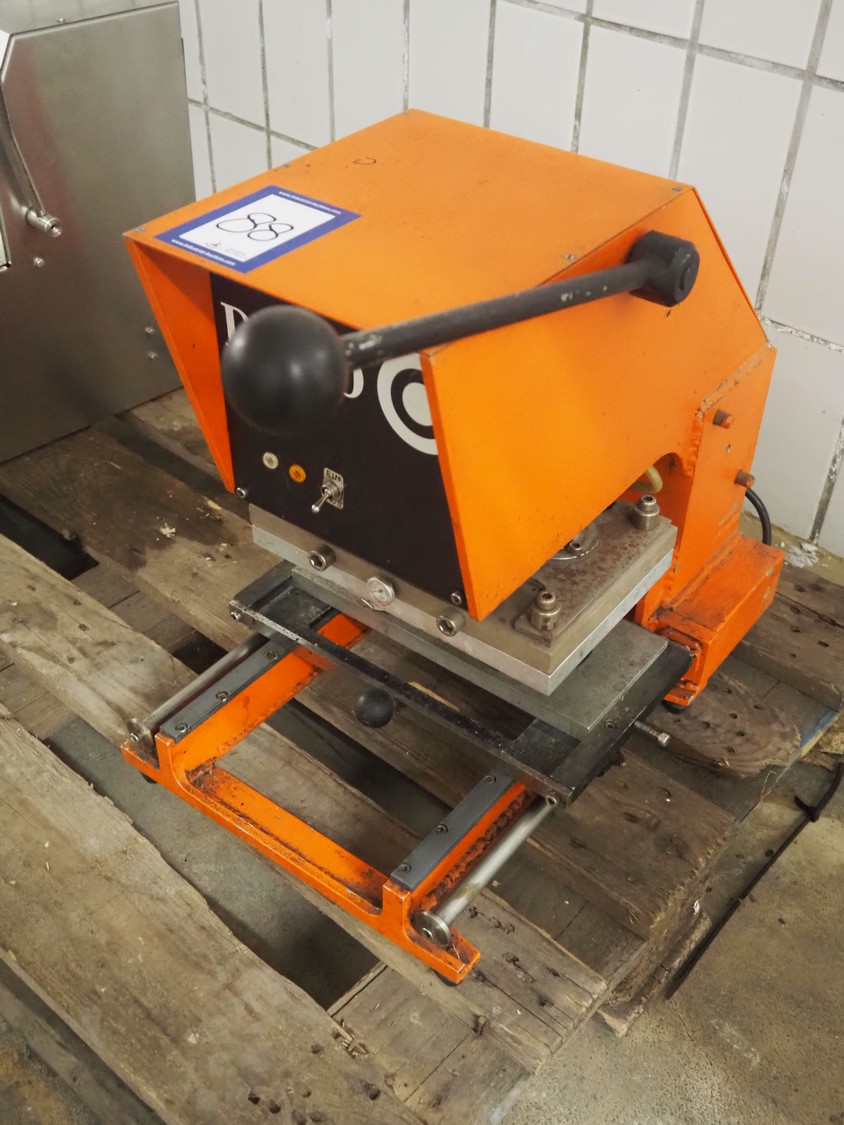 DYNO traysealer, type: 461-3, machine number: 102, year of construction: 1977, 220 V, 50 Hz, 2 kW, diameter dye: 95 mm, total dimensions: 400 mm x 520 mm x 550 mm.