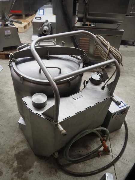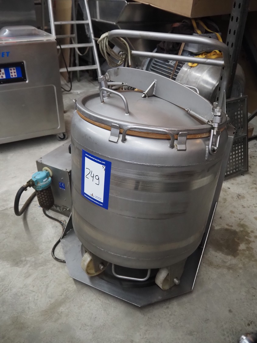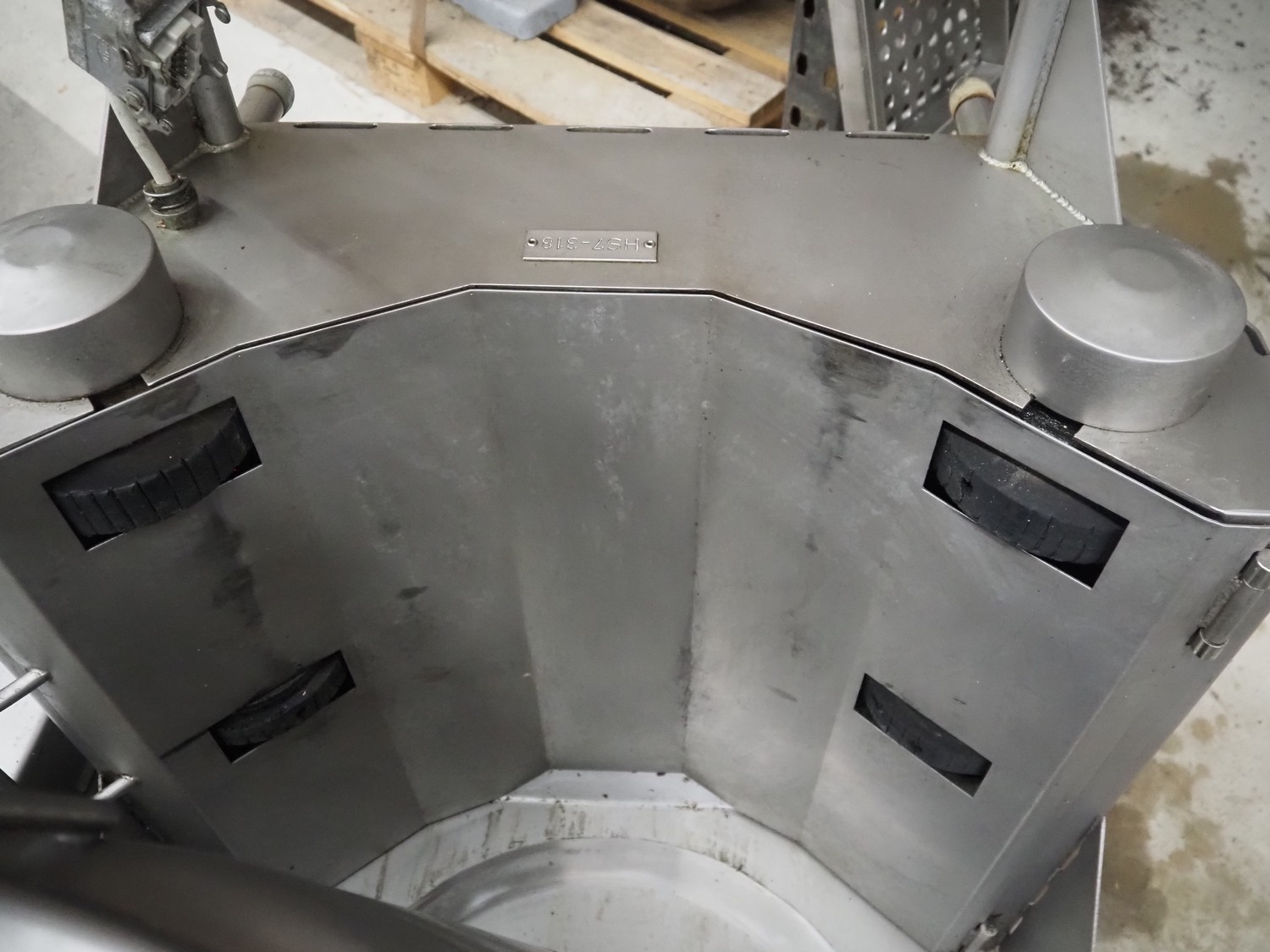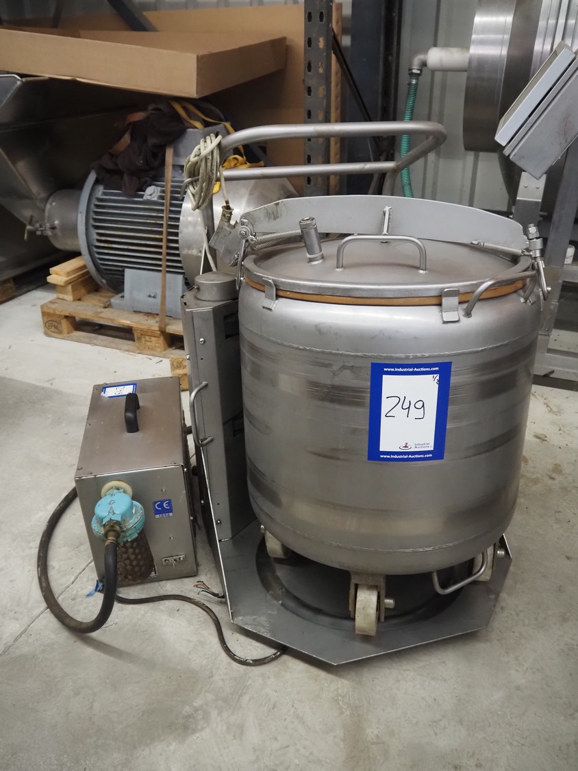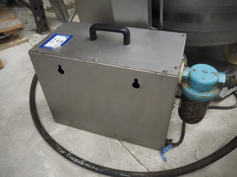Hollstein & Fuhrmann GmbH. KG tumbler for mobile tubs, inside dimensions: Ø 600 mm x 560 mm, total dimensions: 1160 mm x 760 mm x 1000 mm. With Hollstein & Fuhrmann GmbH. KG vacuum pump, type: TVAP, year of construction: 1996, 380 V, 3 Ph, 50 Hz, 0.37 kW. Lot located in Winsen (DE), viewing and pick up in consultation with Industrial Auctions B.V.
