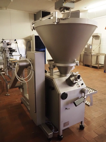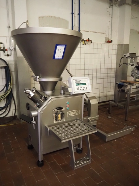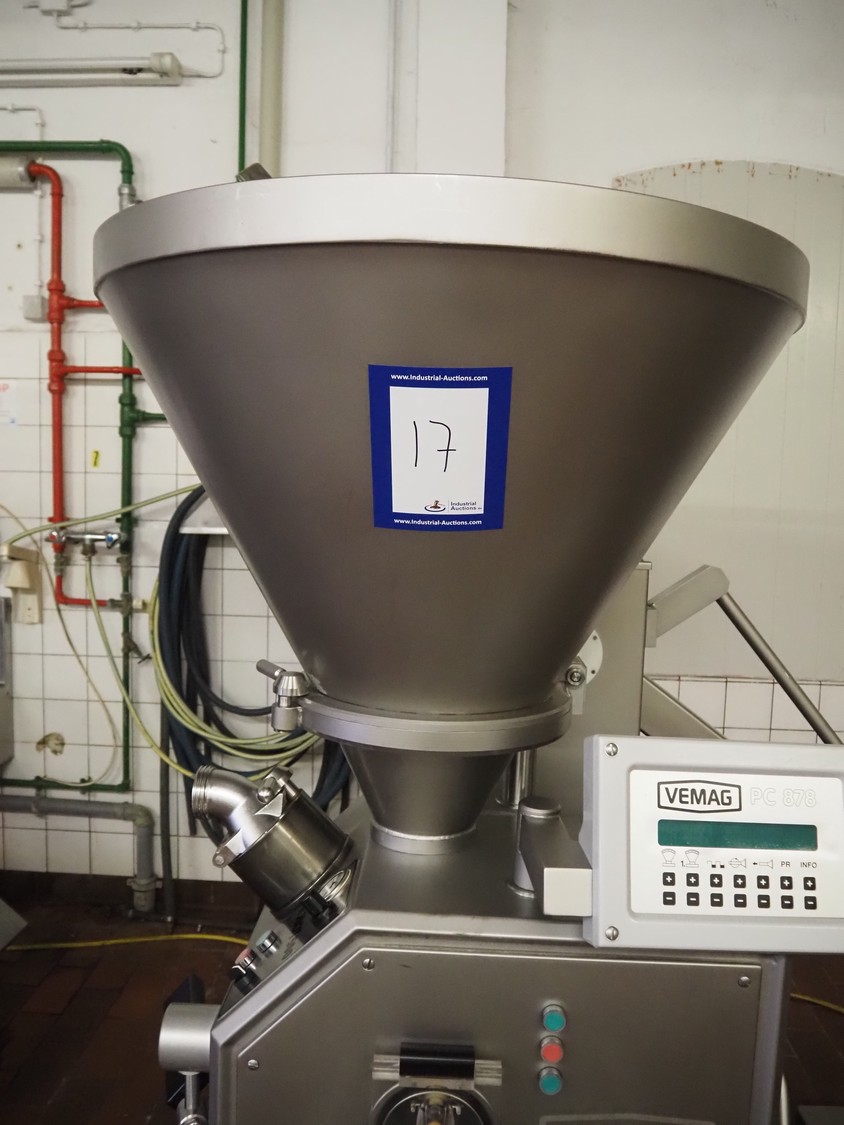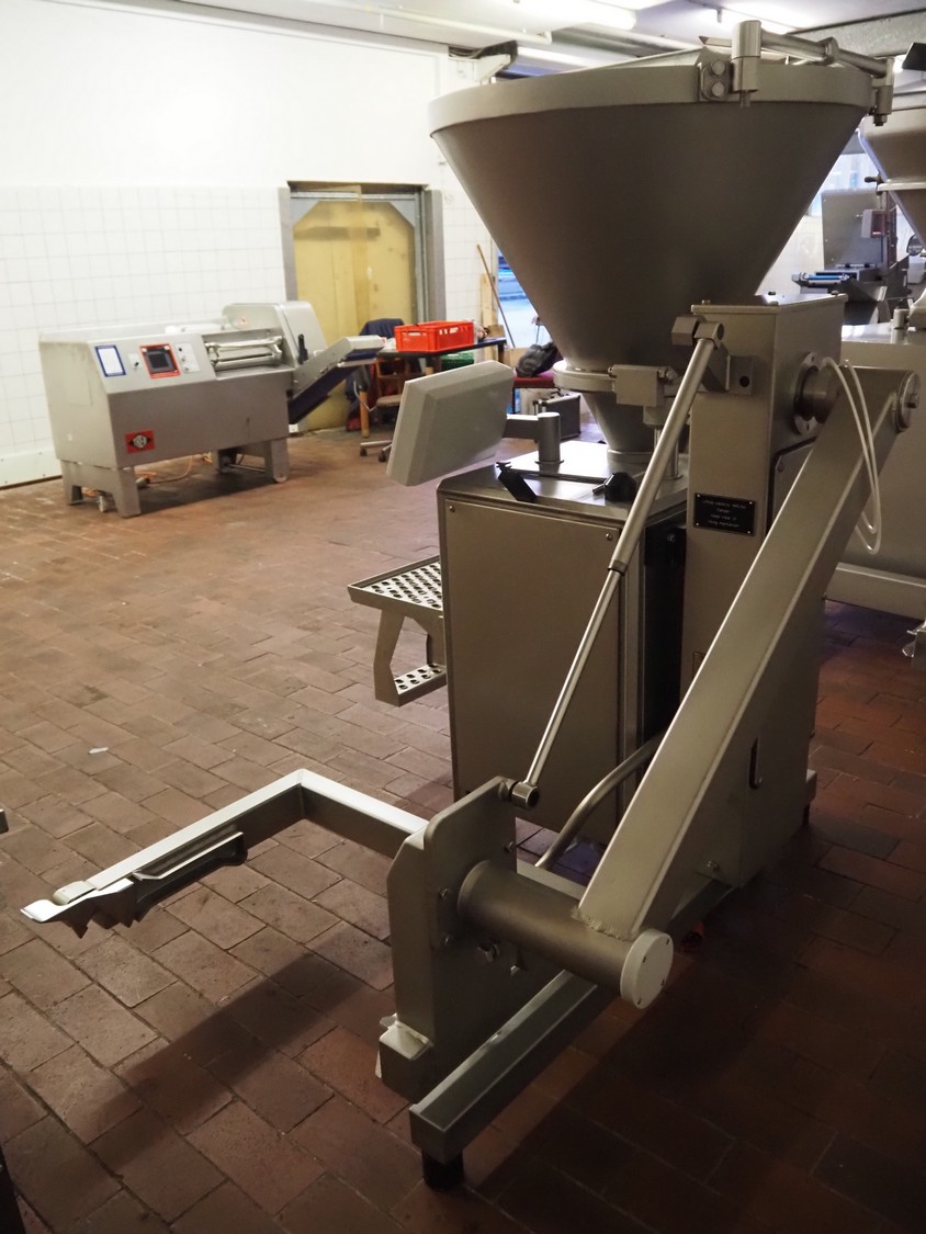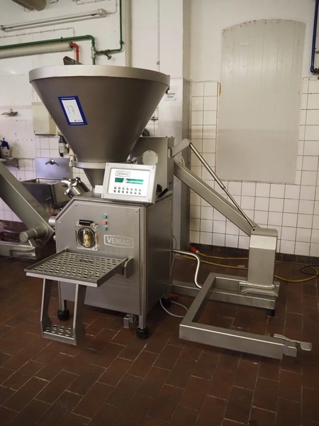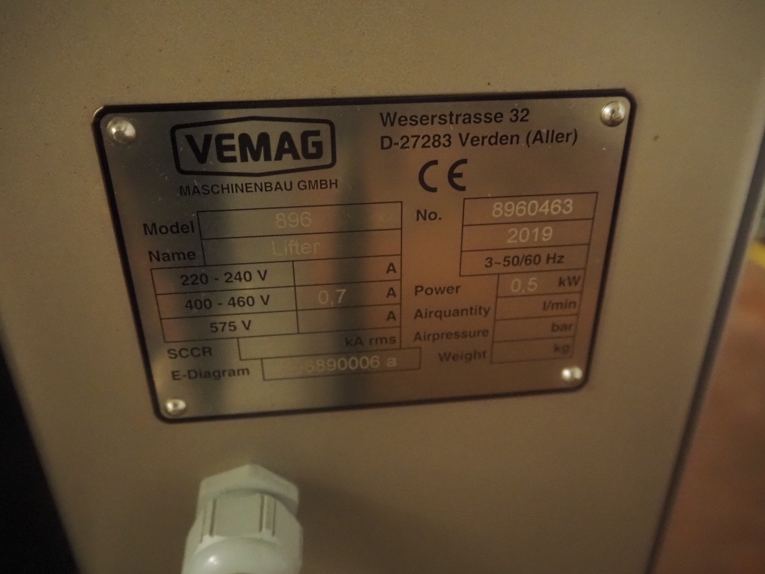 Vemag vacuum filling machine with lifter for 200 liter meat bins, model: 896, number: 8960463, year of construction: 2019, 400/460 V, 3 Ph, 50/60 Hz, 0.7 A, 0.5 kW, dimensions: 1900 mm x 1200 mm x 1850 mm.