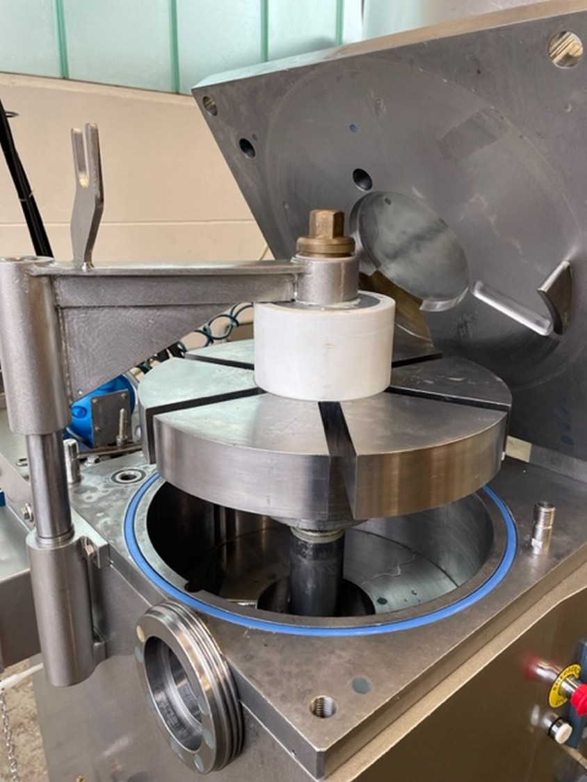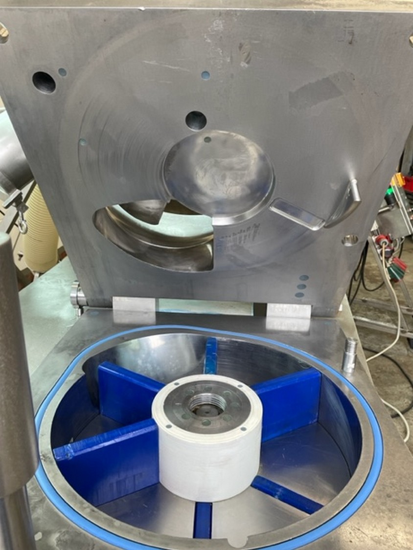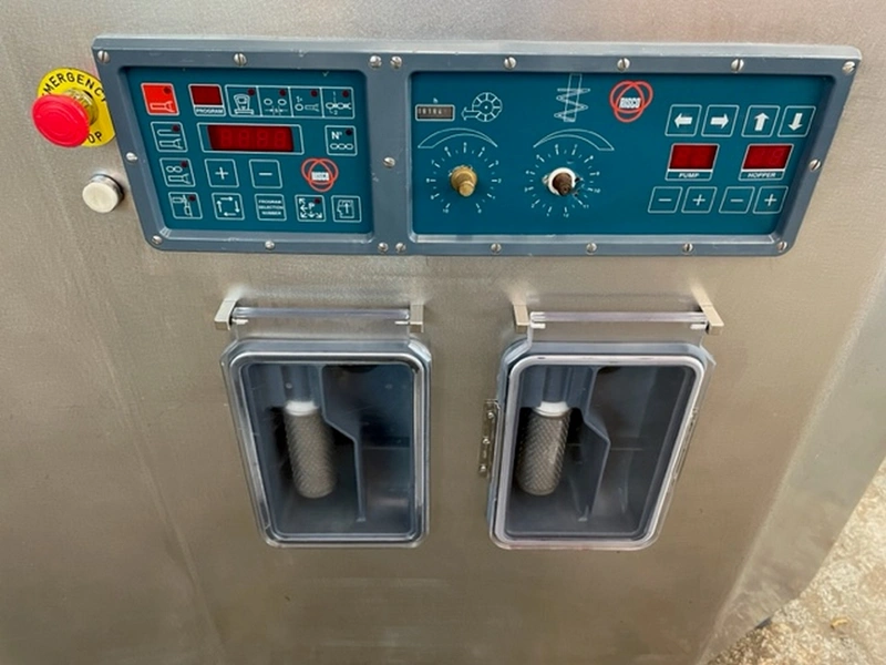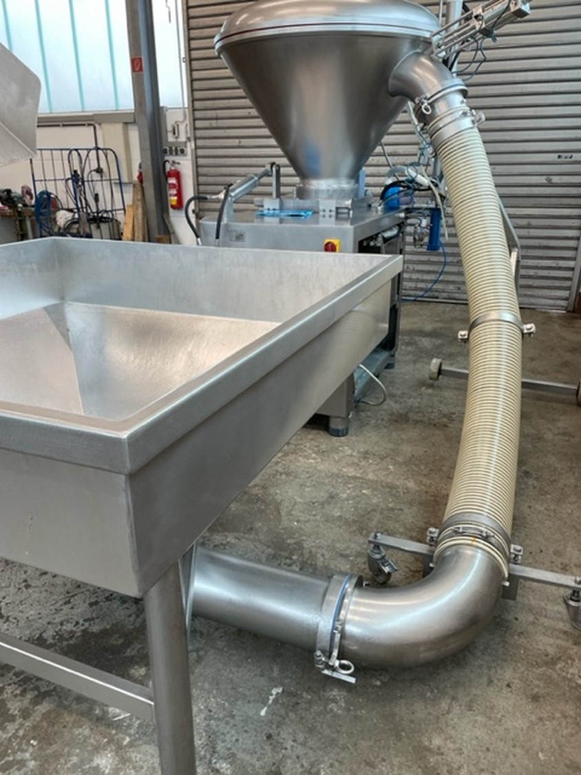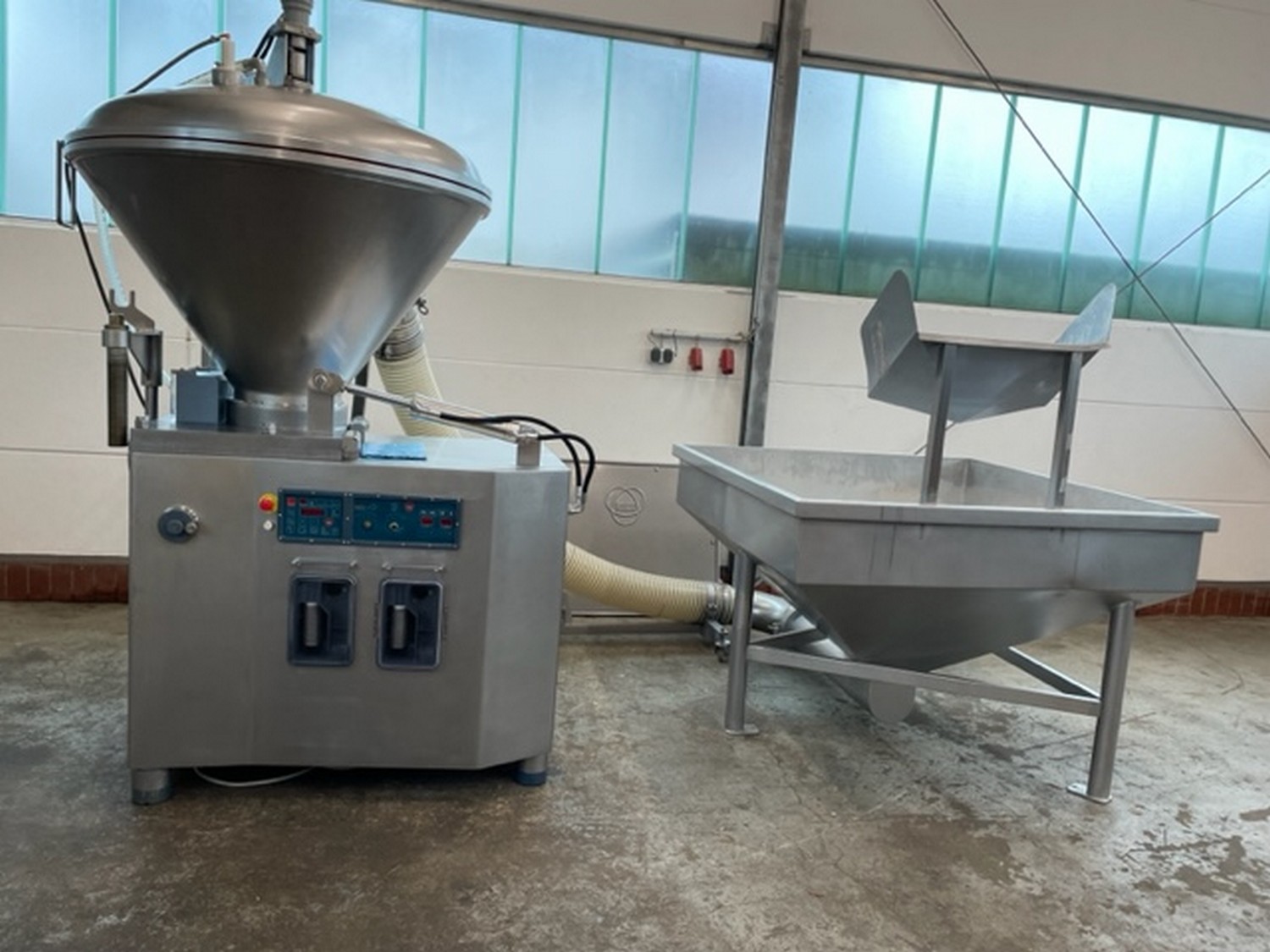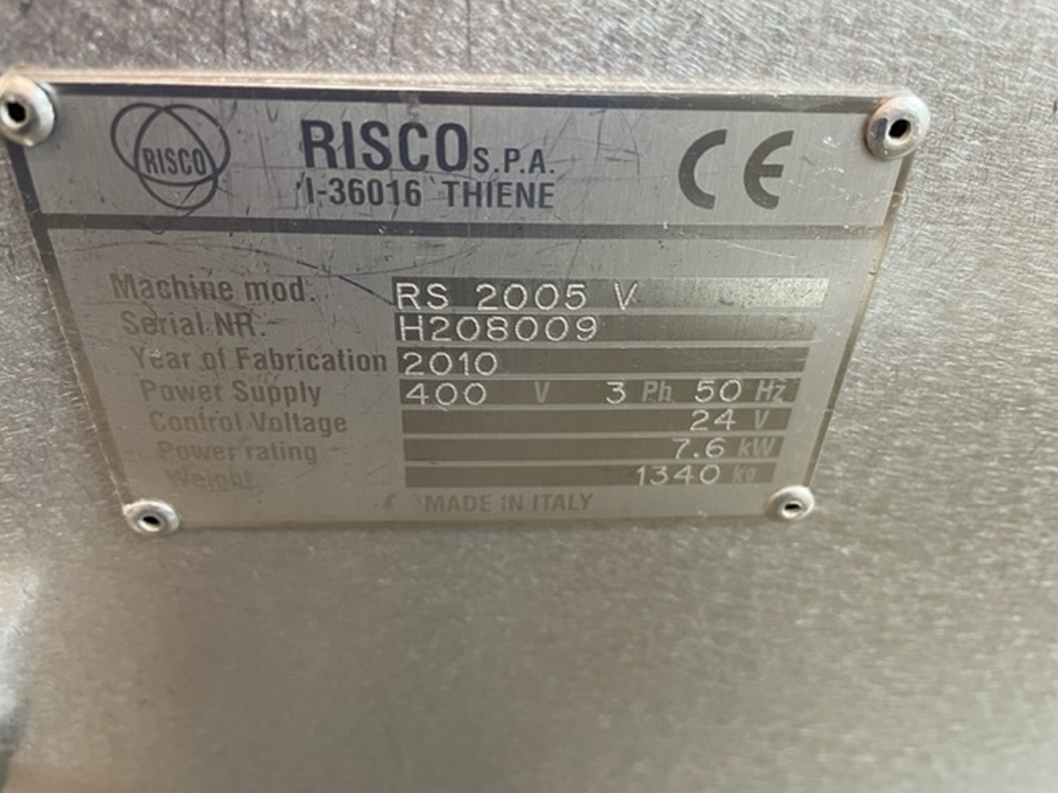Risco vacuum filling machine with infeed tub, model: RS 2005 V, serial number: H208009, year of construction: 2010, 400 V, 3 Ph, 50 Hz, 7.6 kW, weight: 1340 kg. Lot located in Bad Oldesloe (DE), viewing and pick up in consultation with Industrial Auctions BV.