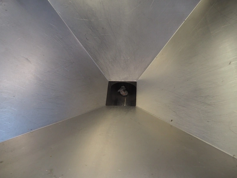 Risco S.P.A. vacuum filling machine with s/s infeed bunker, model: RS 2005 V, serial number: H199001, year of construction: 2006, 400 V, 3 Ph, 50 Hz, 11.5 kW, weight: 1340 kg, dimensions vacuum filling machine: 1350 mm x 1100 mm x 2800 mm, dimensions infeed bunker: 2700 mm x 1560 mm x 1100 mm. Lot located in Winsen (DE), viewing and pick up in consultation with Industrial Auctions B.V.