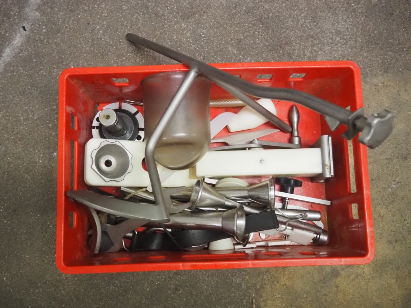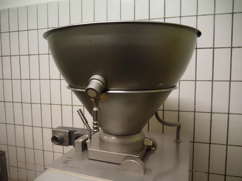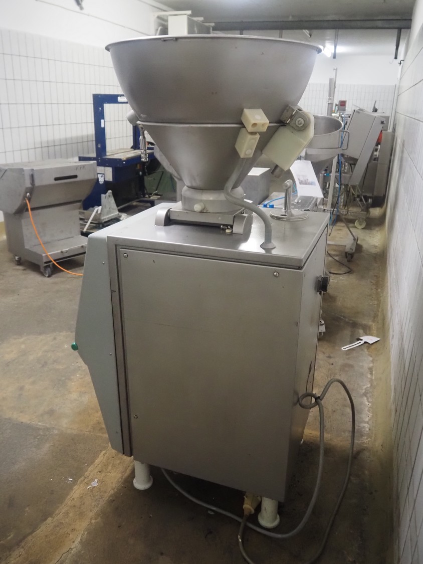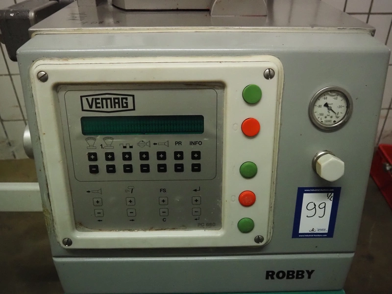 Vemag vacuum filling machine, model: Robby, type: 194, number: 1340739, year of construction: 1997, 220-460 V, 3 Ph, 50/60 Hz, 9.7-25 A, with Rietschle vacuum pump, type: VGA-20 and linking attachment, number: 8283899, total dimensions: 900 mm x 850 mm x 1650 mm. Including crate with parts, number linking attachment: 9370451.