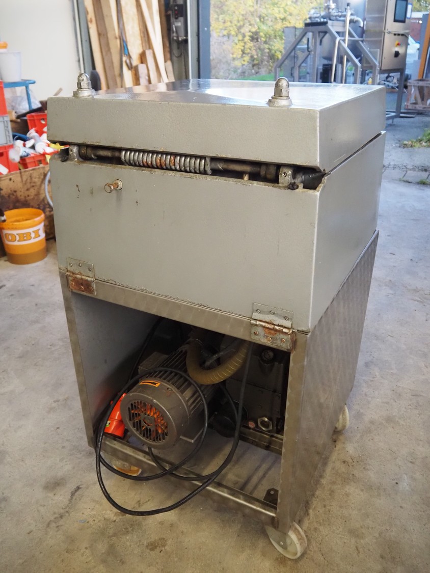 Mobile vacuum machine, seal length: (2x) 500 mm, dimensions chamber: 500 mm x 500 mm, Busch vacuum pump, type: 063-112, number: 38740, capacity: 63 m³ per hour, total dimensions: 650 mm x 580 mm x 1100 mm. Lot located in Winsen (DE), viewing and pick up in consultation with Industrial Auctions B.V.
