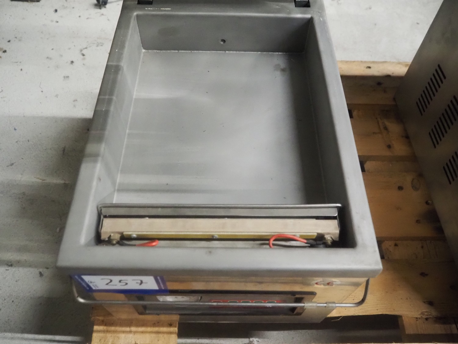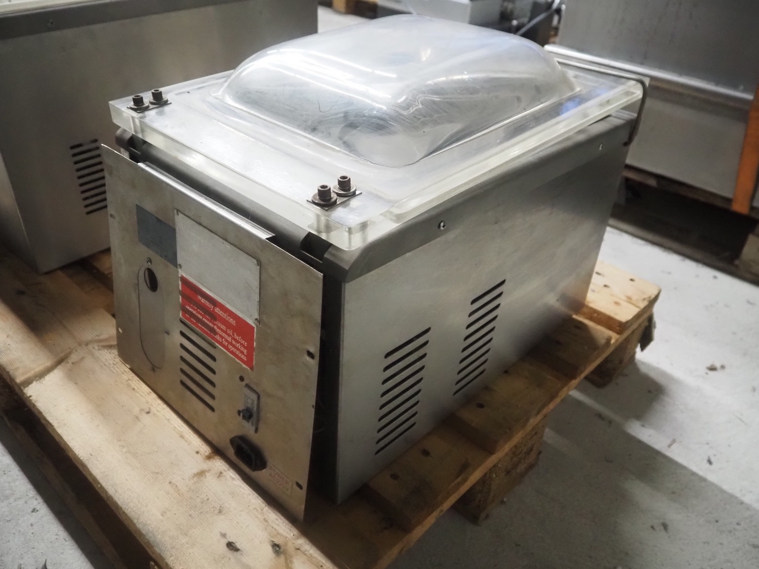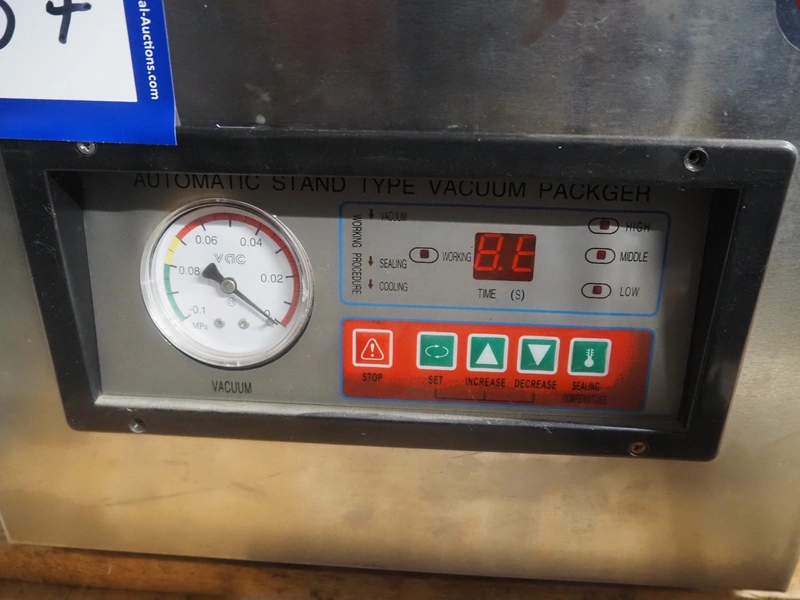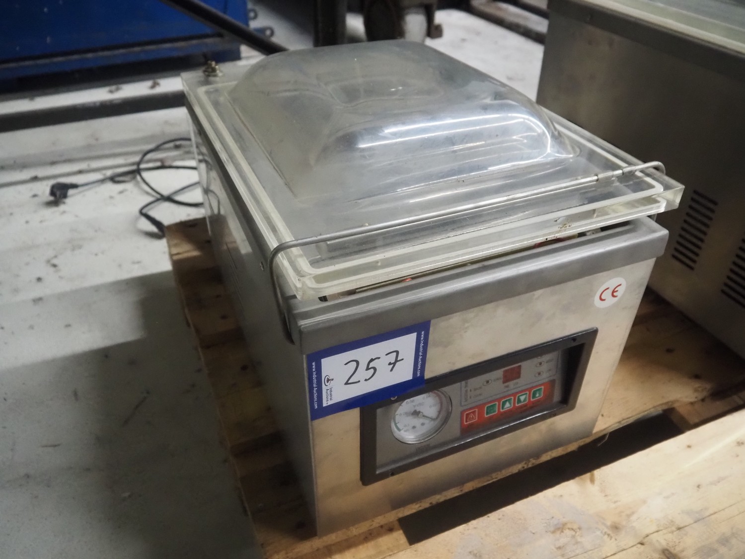Vacuum machine, model: DZ 300A, 220 V, 370 W, seal length: 260 mm, dimensions chamber: 385 mm x 280 mm, total dimensions: 480 mm x 350 mm x 350 mm. Lot located in Winsen (DE), viewing and pick up in consultation with Industrial Auctions B.V.