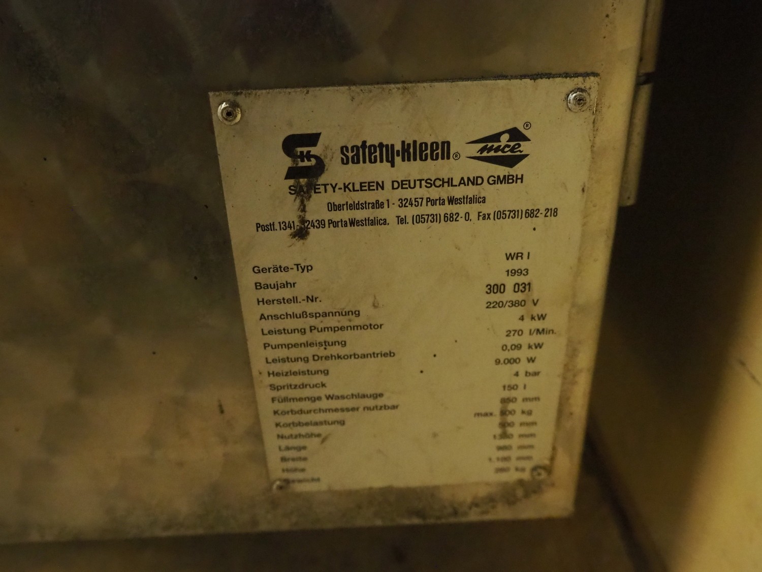 Safety-Kleen Deutschland GmbH industrial cleaner, type: WR-I, serial number: 300 031, year of construction: 1993, 220/380 V, 4 kW, diameter washing basket: 850 mm, total dimensions: 1400 mm x 980 mm x 1090 mm.