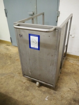 Mobile s/s tub with drain, inside dimensions: 1100 mm x 670 mm, total dimensions: 1150 mm x 730 mm x 750 mm.€ 150,000 bids02/12/2025 16:00 -