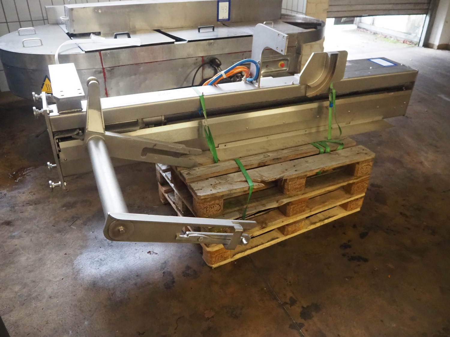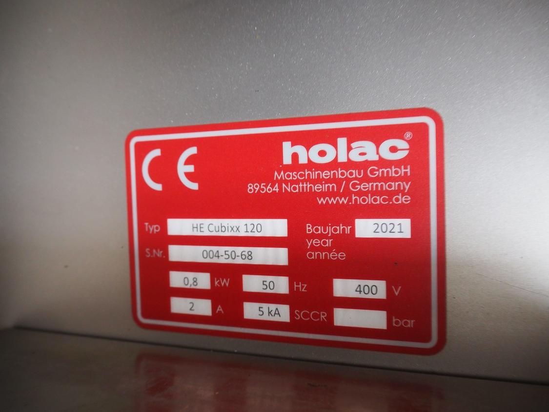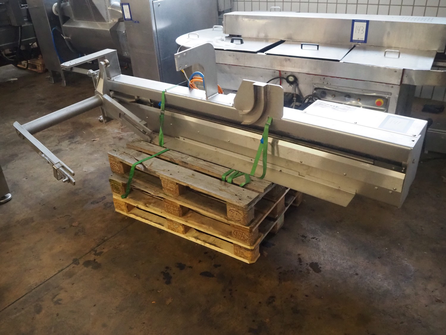 Holac Maschinenbau GmbH s/s lifter for 200 liter meat bins, type: HE Cubixx 120, serial number: 004-50-68, year of construction: 2021, 400 V, 50 Hz, 2 A, 0.8 kW, elevating height: 1650 mm, total dimensions: 1100 mm x 700 mm x 2530 mm.