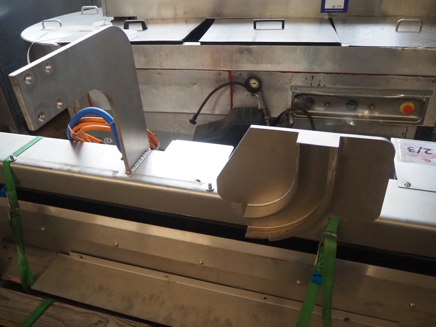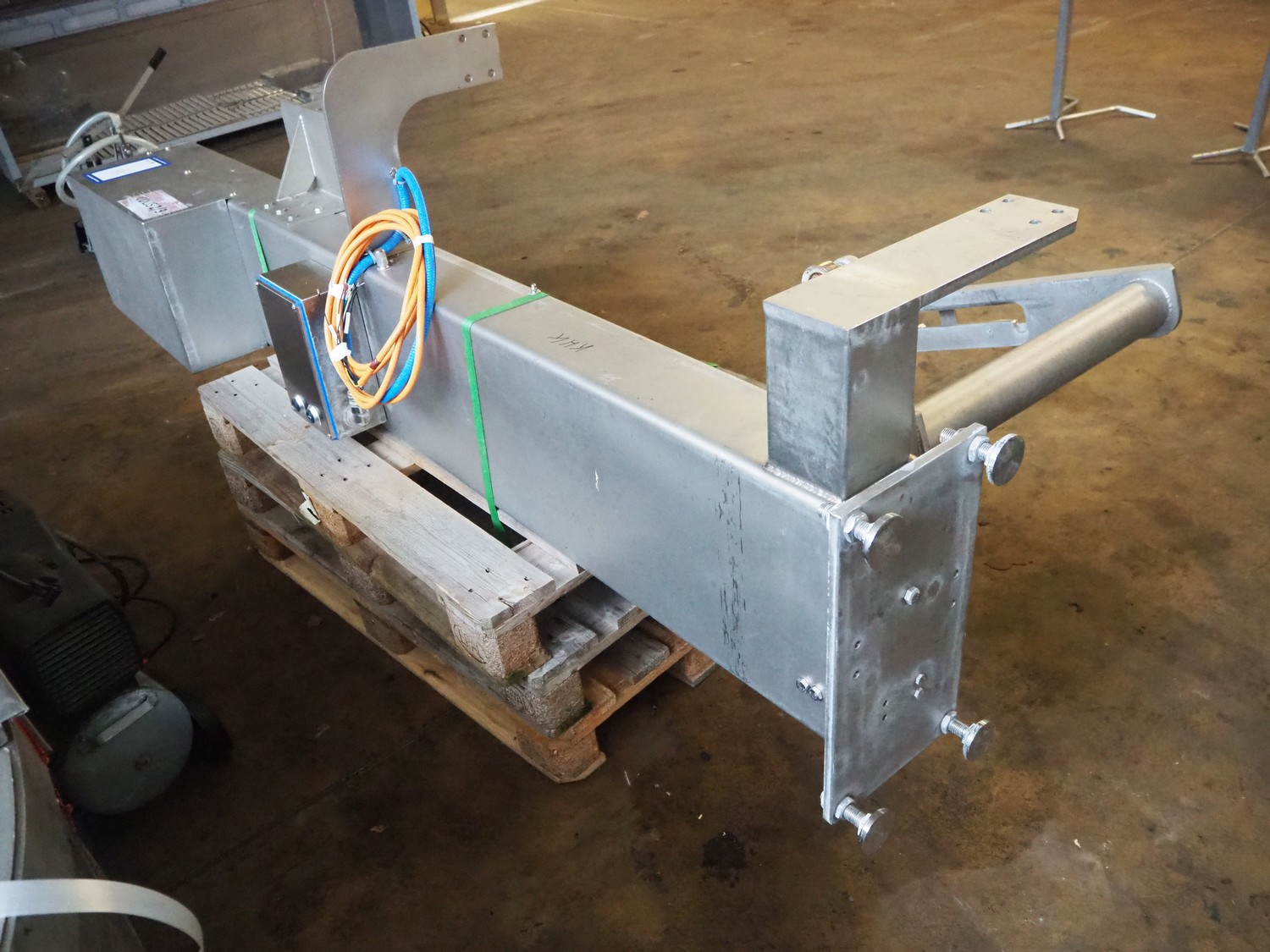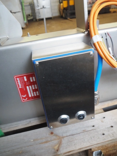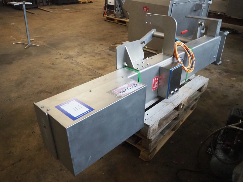 Holac Maschinenbau GmbH s/s lifter for 200 liter meat bins, type: HE Cubixx 120, serial number: 004-50-68, year of construction: 2021, 400 V, 50 Hz, 2 A, 0.8 kW, elevating height: 1650 mm, total dimensions: 1100 mm x 700 mm x 2530 mm.