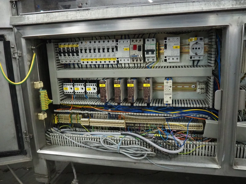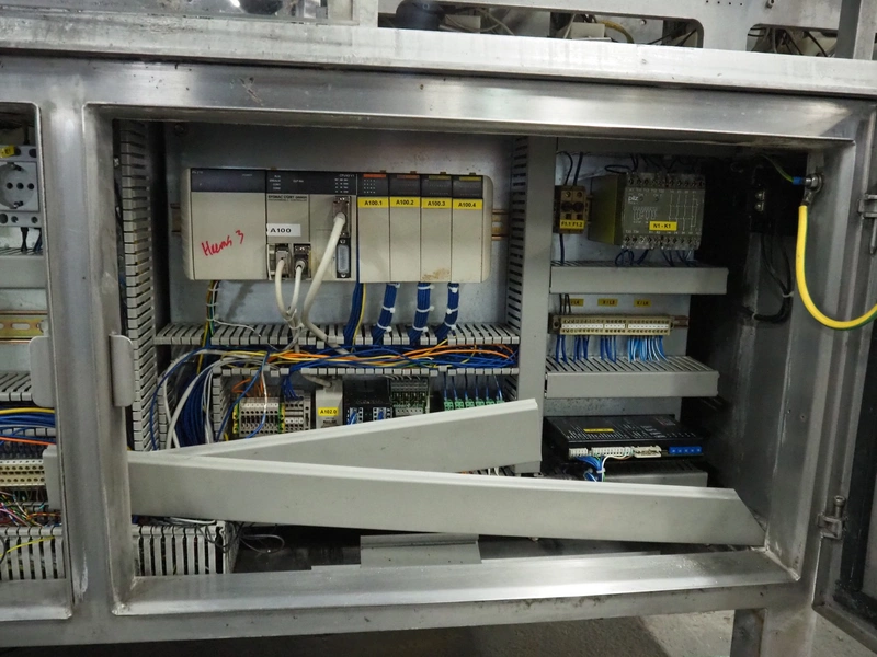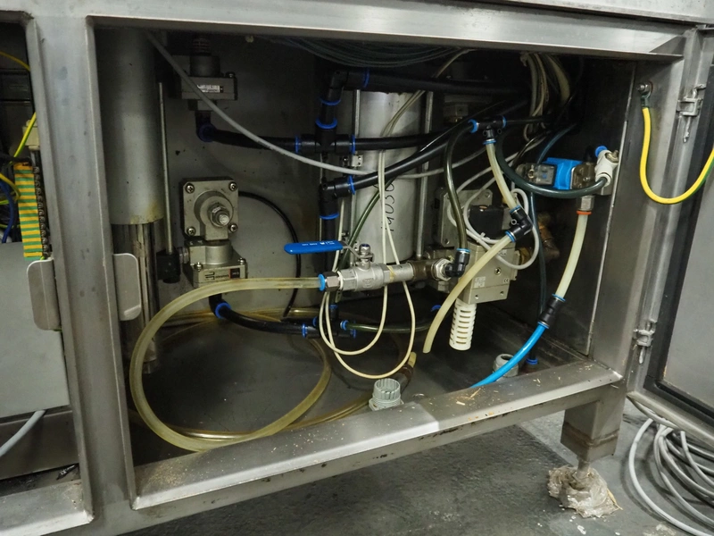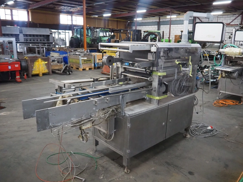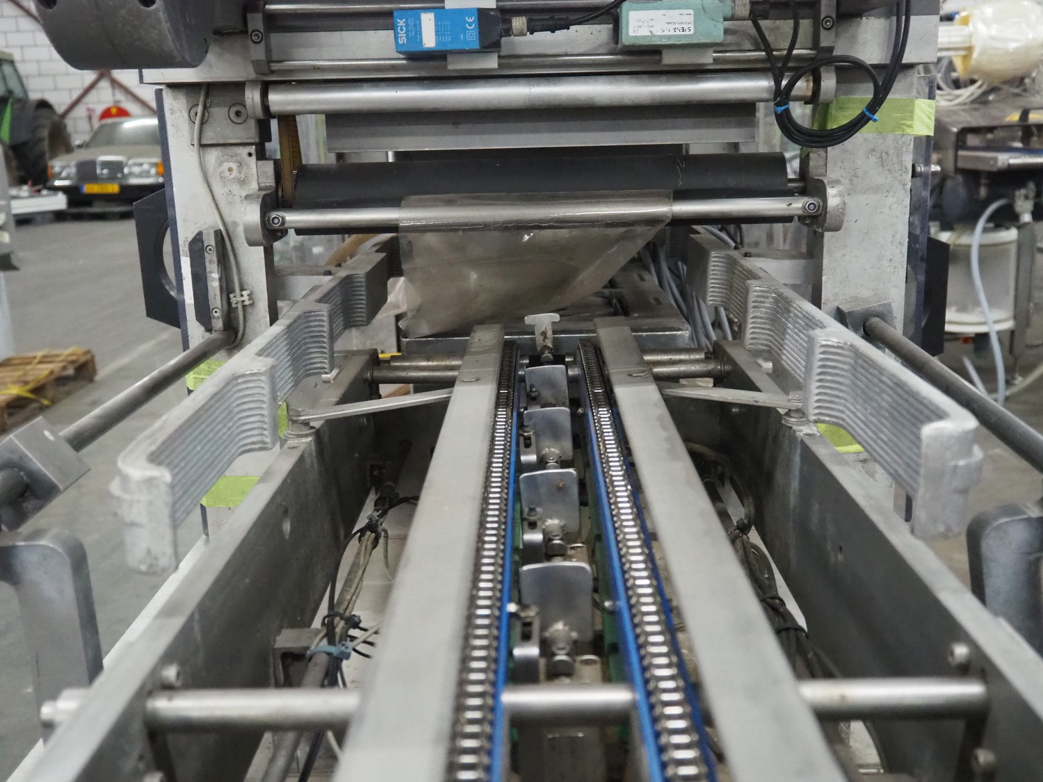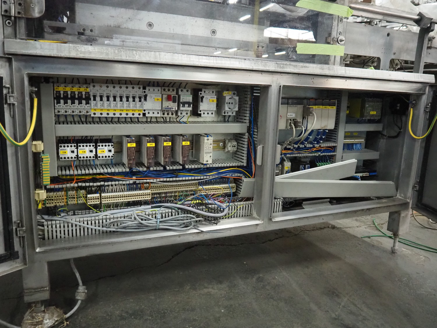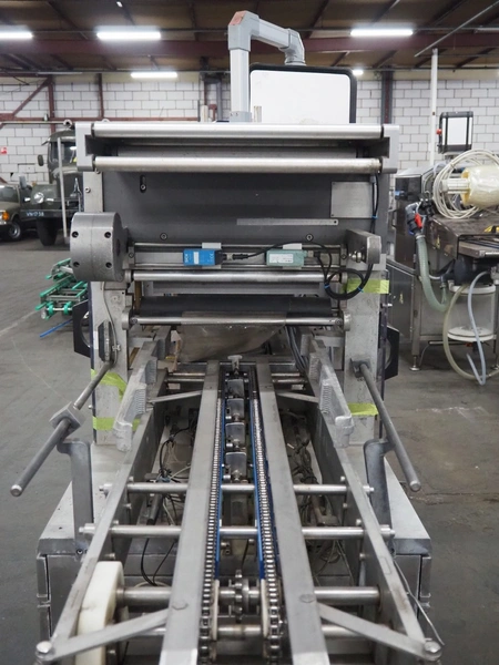 Sealpac traysealer, type: SEALPAC 750, serial number: TVG 0321001, year of construction: 1999, 400 V, 3 Ph, 4.5 kW, maximum belt width: 250 mm, dimensions dye: (3x) ø 160 mm, (3x) 180 mm x 180 mm, total dimensions: 3200 mm x 1000 mm x 1950 mm.