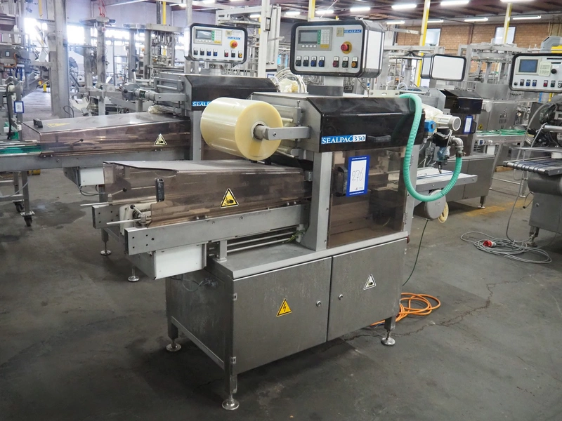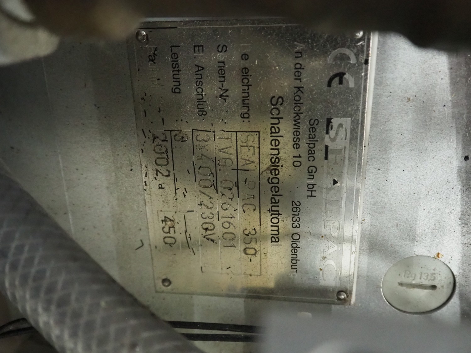Sealpac traysealer, type: SEALPAC 350, serial number: TVG 0261601, year of construction: 2002, 400 V, 3 Ph, 3 kW, maximum belt width: 305 mm, dimensions dye: 320 mm x 260 mm, total dimensions: 2500 mm x 1000 mm x 1750 mm.