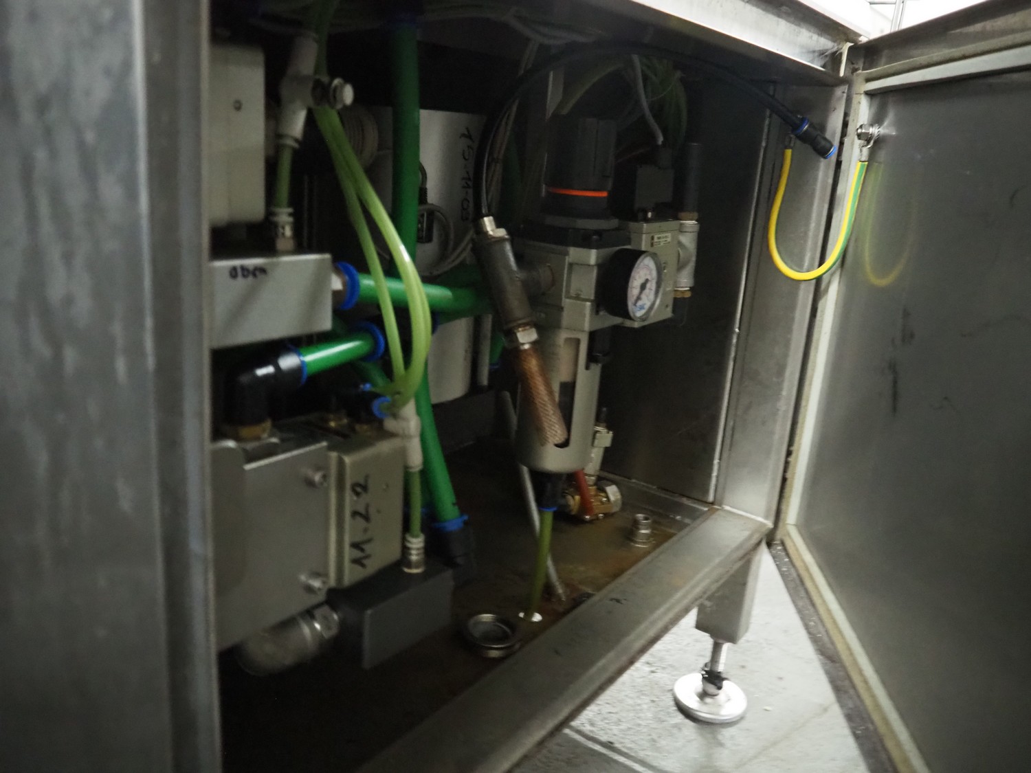 Sealpac traysealer, type: SEALPAC 750, serial number: TVG 04-751-01, year of construction: 2003, 400 V, 3 Ph, 6.5 kW, weight: 800 kg, maximum belt width: 277 mm, dimensions dye: (3x) 190 mm x 135 mm, total dimensions: 3000 mm x 1000 mm x 2050 mm.