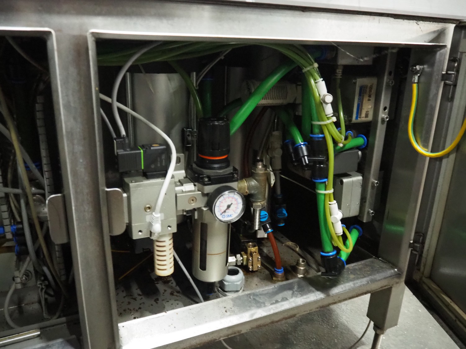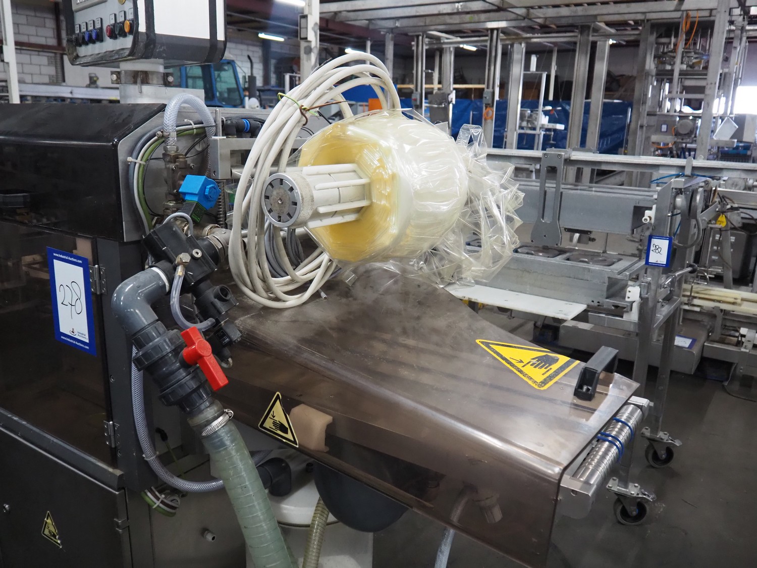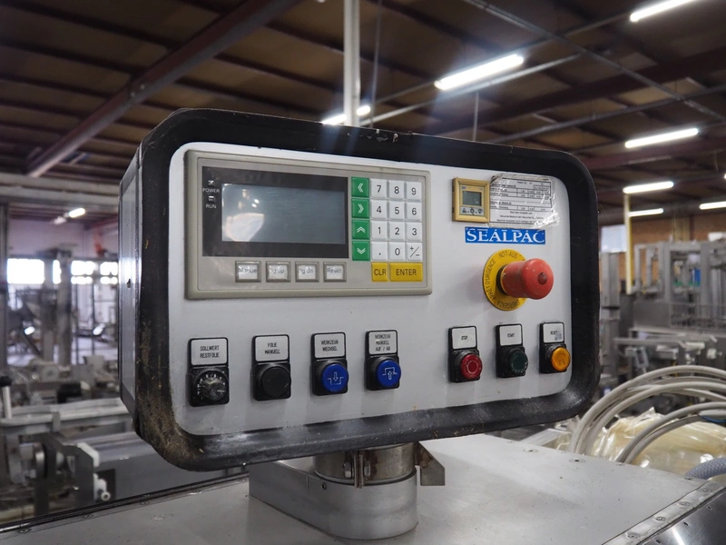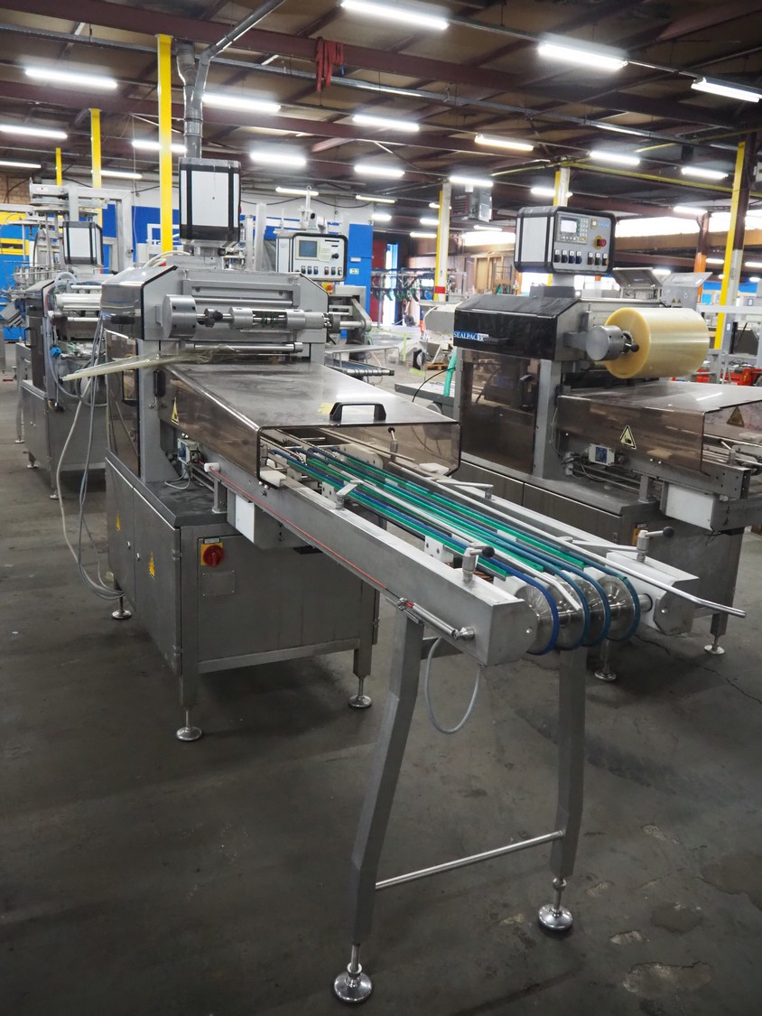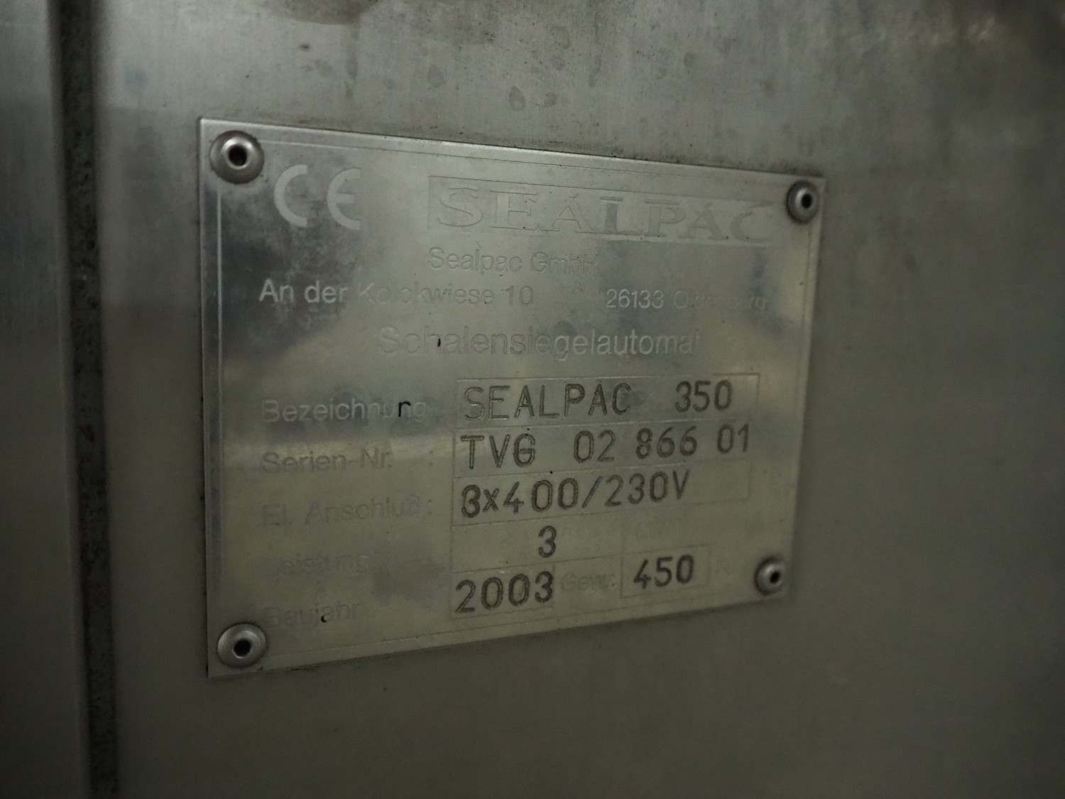 Sealpac traysealer, type: SEALPAC 350, serial number: TVG 0286601, year of construction: 2003, 400 V, 3 Ph, 3 kW, weight: 450 kg, maximum belt width: 330 mm, dimensions dye: (2x) 180 mm x 130 mm, total dimensions: 3600 mm x 850 mm x 1800 mm.