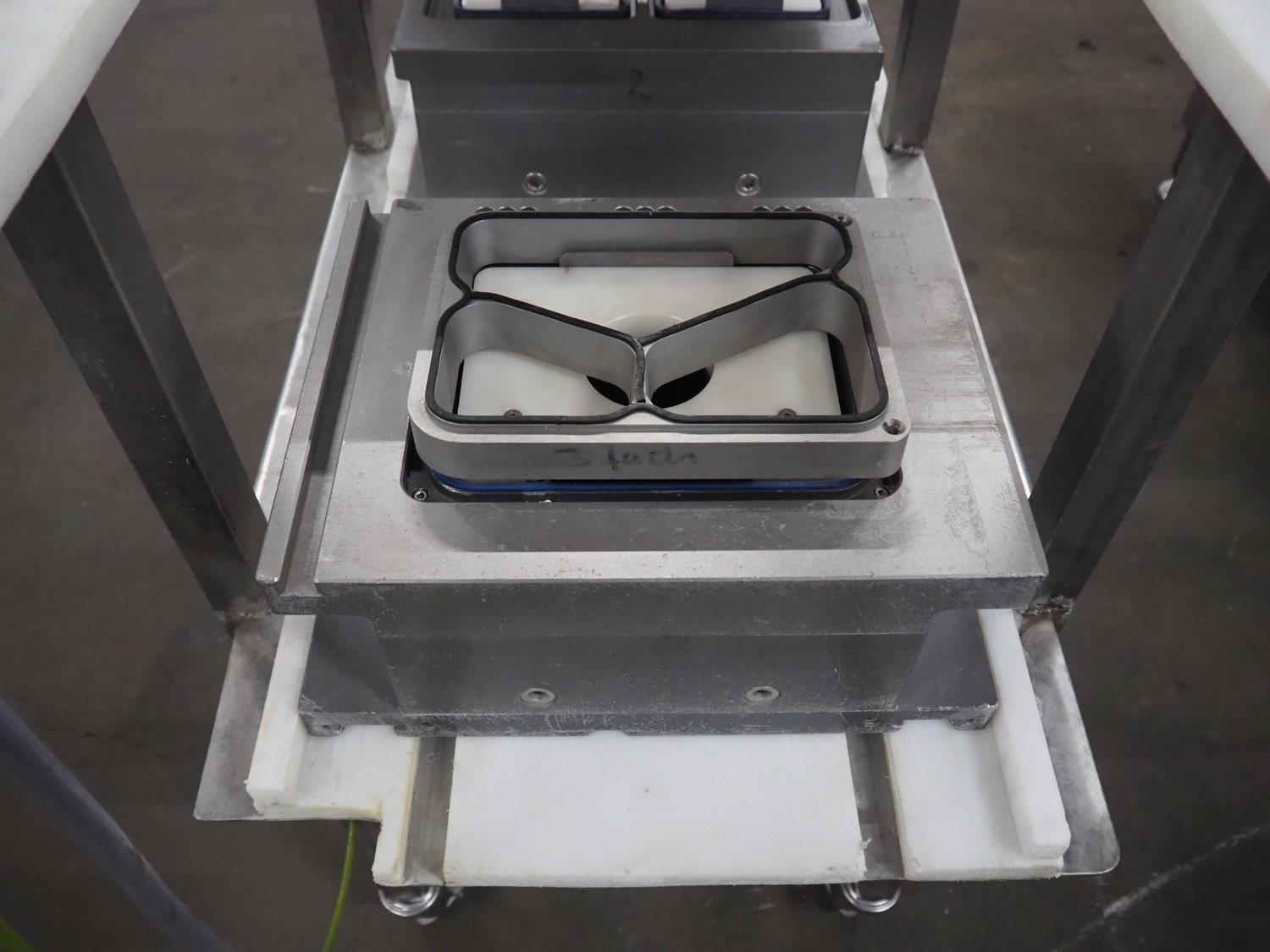 S/s trolley for Sealpac dyes, dimensions dyes: 170 mm x 220 mm, (2x) 185 mm x 140 mm, total dimensions: 1000 mm x 750 mm x 1150 mm.