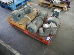 Pallet with 2 gear motors and 1 drum motor, dimensions gear motors: (2x) 750 mm x 300 mm x 400 mm, (1x) Ø 135 mm x 650 mm.0 bidsLot is closed -