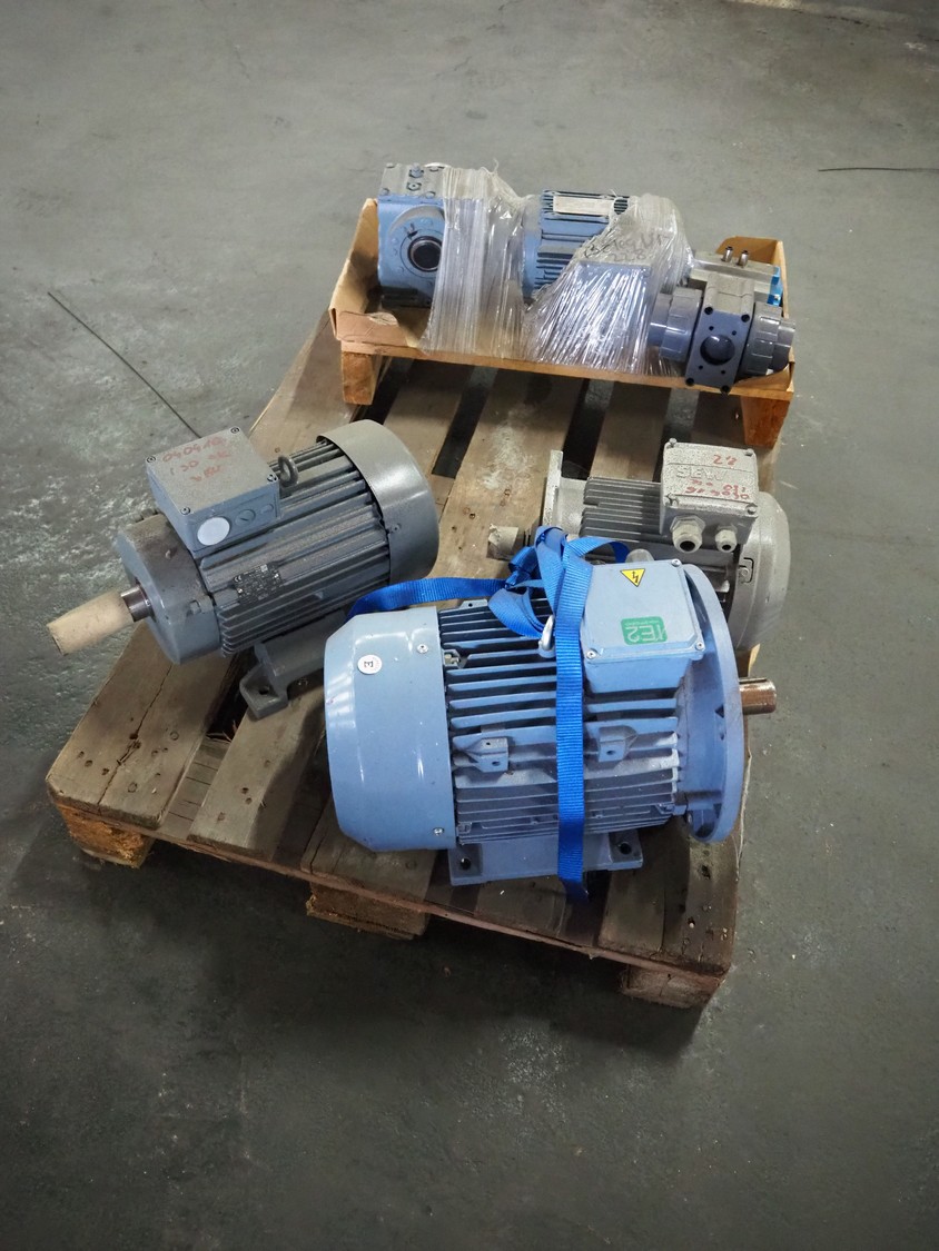 Pallet with various motors, dimensions: 1200 mm x 800 mm x 400 mm.
