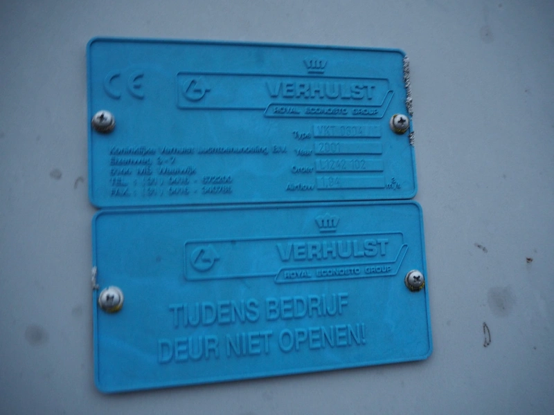 Verhulst air treatment cabinet, type: VKT 0604, year of construction: 2001, airflow: 1.94 m³/s, dimensions: 9100 mm x 3000 mm x 2100 mm. Situated on the roof. Can be picked-up at a later date as soon as the building will be demolished next year, a date for this is yet unknown.