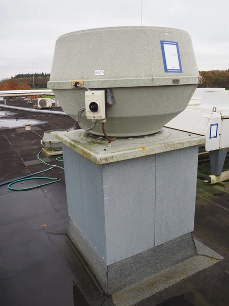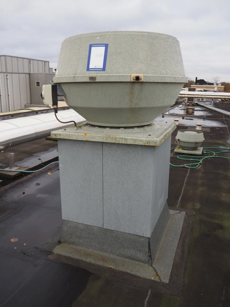 J.E. StorkAir rooftop fan, dimensions: 1100 mm x 1100 mm x 1600 mm.