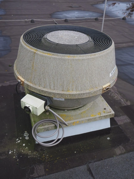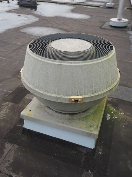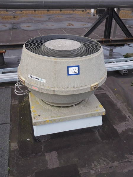 J.E. StorkAir rooftop fan, dimensions: 900 mm x 900 mm x 800 mm.