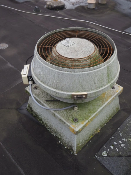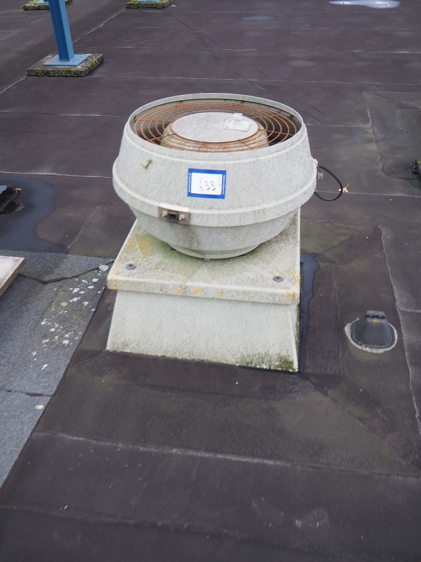 J.E. StorkAir rooftop fan, dimensions: 600 mm x 600 mm x 600 mm.