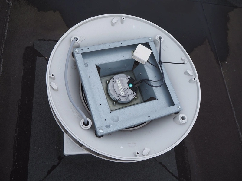 (3x) J.E. StorkAir rooftop fan, dimensions: (2x) 700 mm x 700 mm x 600 mm and (1x) 700 mm x 700 mm x 600 mm. One fan is incomplete.