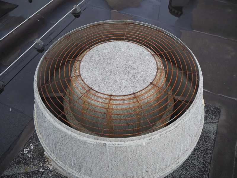 (3x) J.E. StorkAir rooftop fan, dimensions: (2x) 900 mm x 900 mm x 700 mm and (1x) 700 mm x 700 mm x 600 mm.