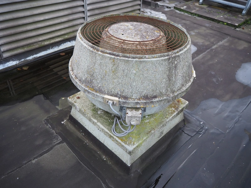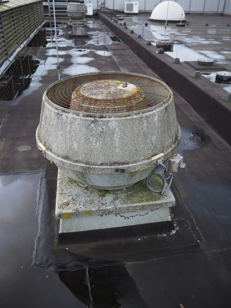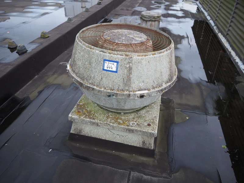 (6x) J.E. StorkAir rooftop fan, dimensions: (6x) 900 mm x 900 mm x 700 mm.