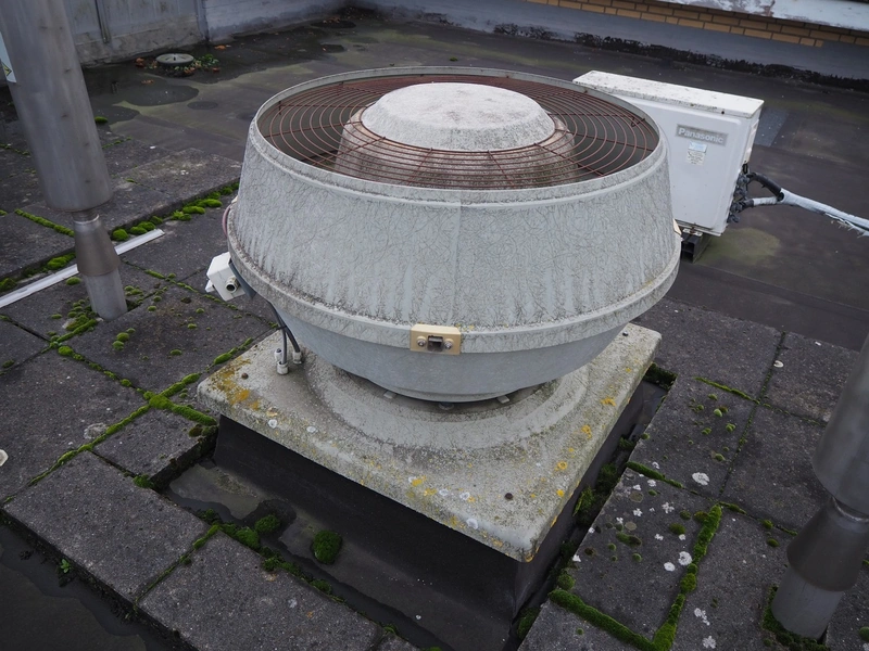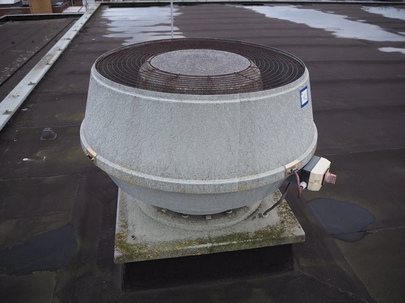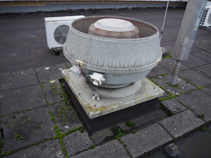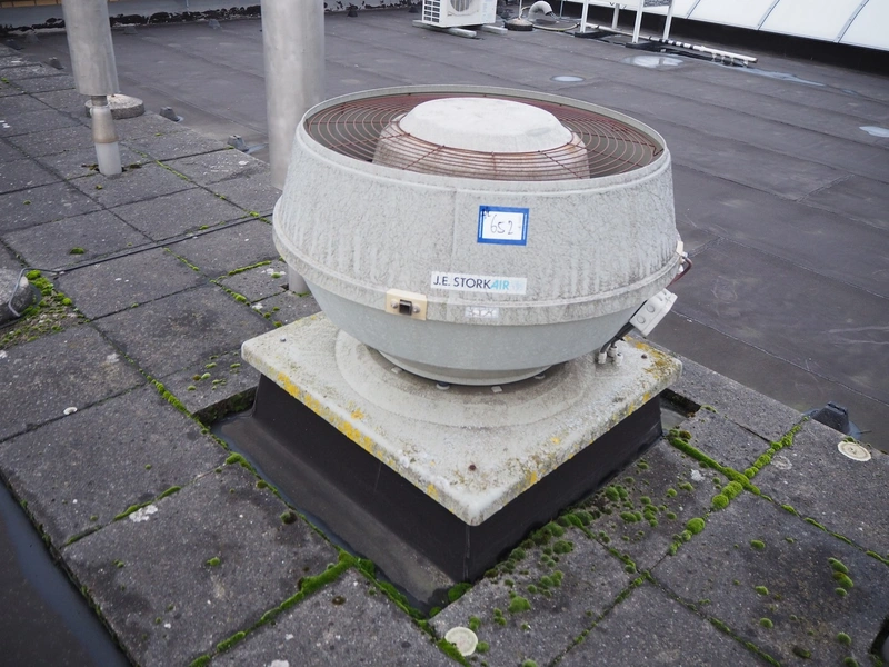 (2x) J.E. StorkAir rooftop fan, dimensions: (2x) 1000 mm x 1000 mm x 800 mm.